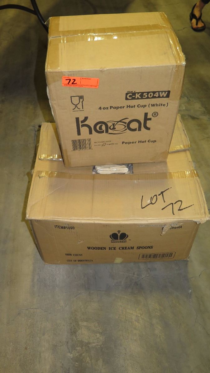1 Case Karat 4-oz Hot Beverage Paper Cups & 1 Case Poly King Wooden Ice Cream Spoons