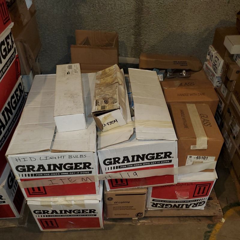 (40) boxes of Various Halogen Lights and Bulbs ranging from 38W - 500W additional (2) Corded HandLamp,64 Sfc Mt LED,10 Ft Cord (packaging has warehouse damage products are fine) . ** The seller has provided the SKU's as a courtesy for reference on Grainger.com SKU's: N/A