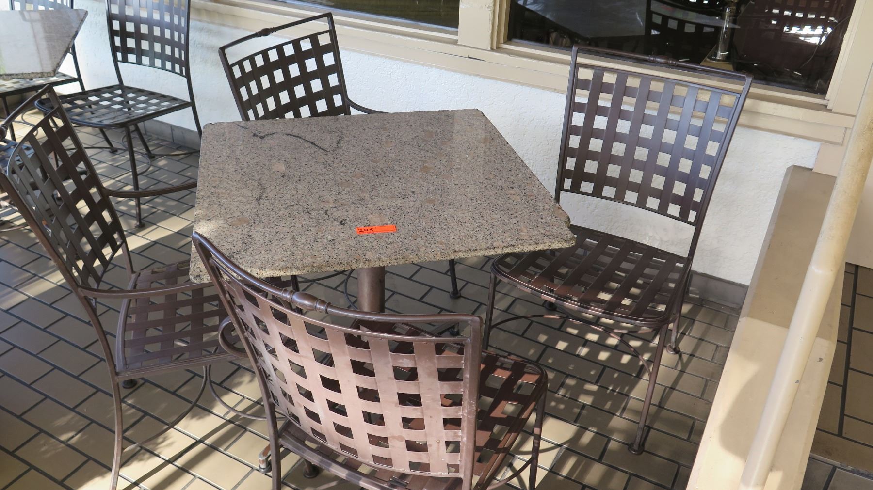 1 Patio Table, 4 Metal Patio Chairs (stone tables are in varying conditions)