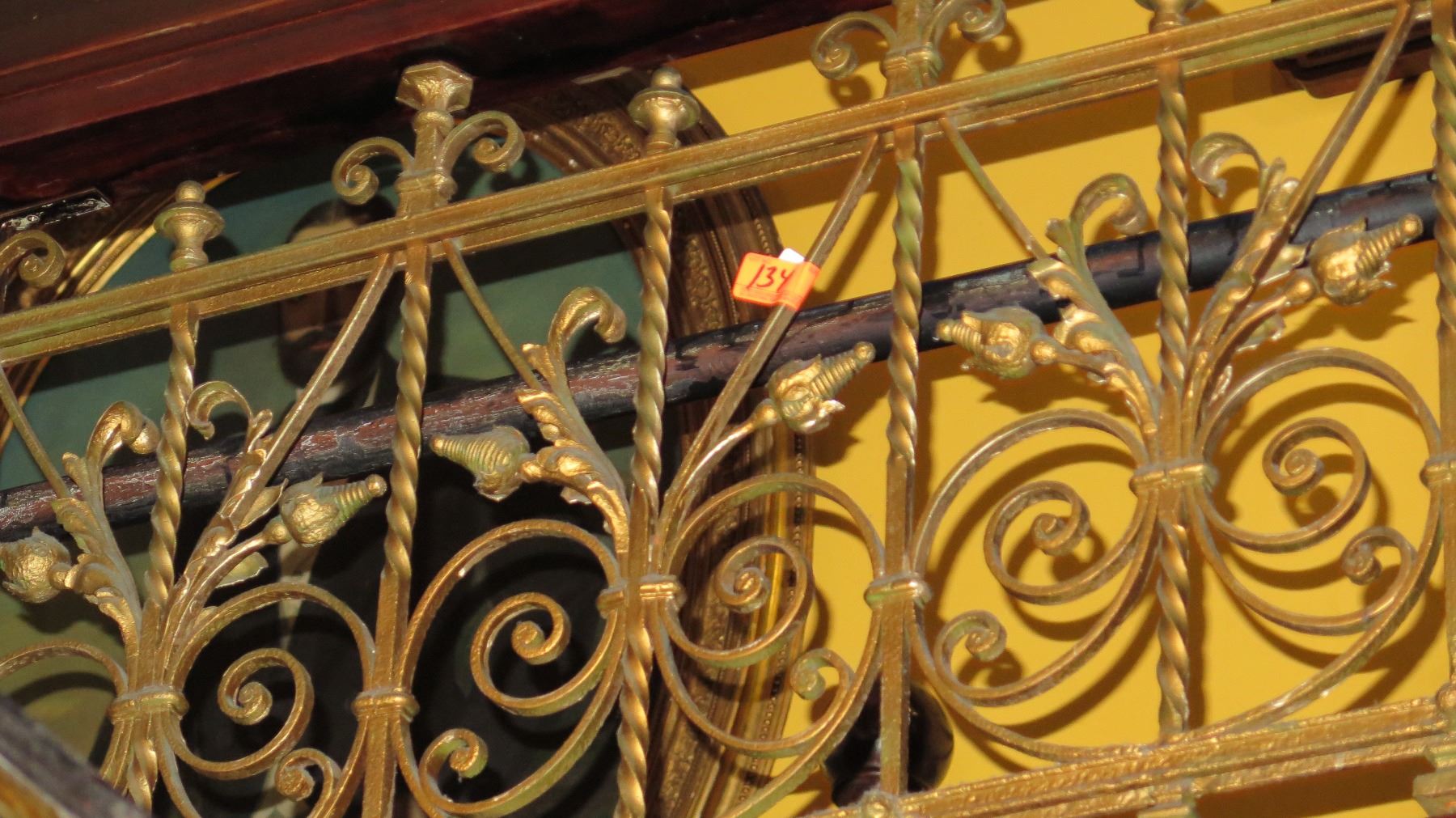 Does not include wood frame surround. OSF says iron part can be removed fairly easily. This and all other iron railings will be available for removal July 26.