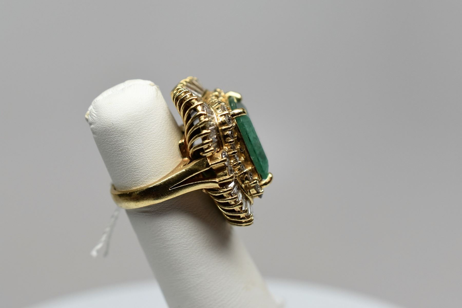 10 ct Square Emerald & Diamond Ring - 32 Round Diamonds, 42 Baguette Diamonds, 14K Gold, 15.2 g