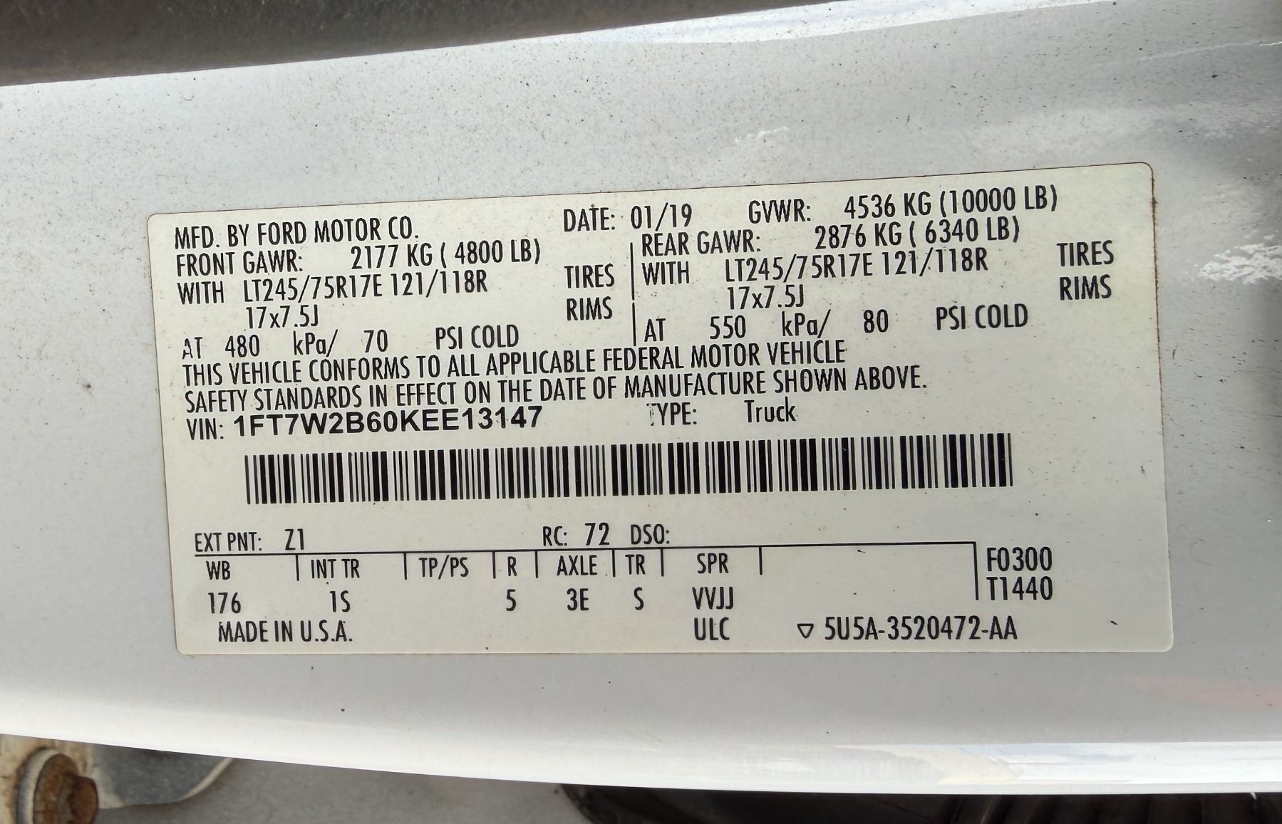 THERE'S A SMALL CRACK ON THE WINDSHIELD. 2019 Ford F250 Pickup Truck 4WD 47,579 Miles. Lic.639TWY