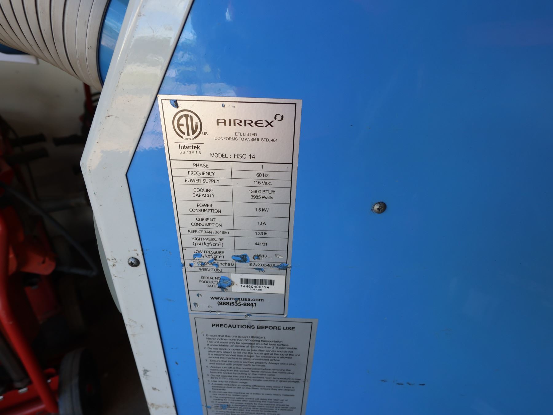 (1040946) 2017 Airrex Model HSC-14 Portable AC Unit, 13,600 Cooling BTU