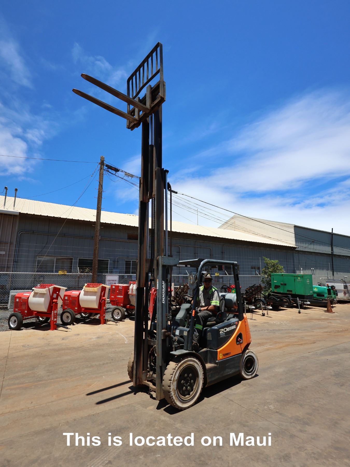 Needs repair. Throttle cuts in and out. Accelerator intermittently stops working. Shutting the unit off and starting it again seems to remedy the problem. See video for illustration of this problem. 2017 Doosan G20P-5DF Forklift (Needs Repair)