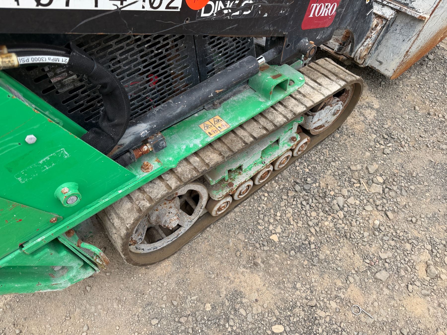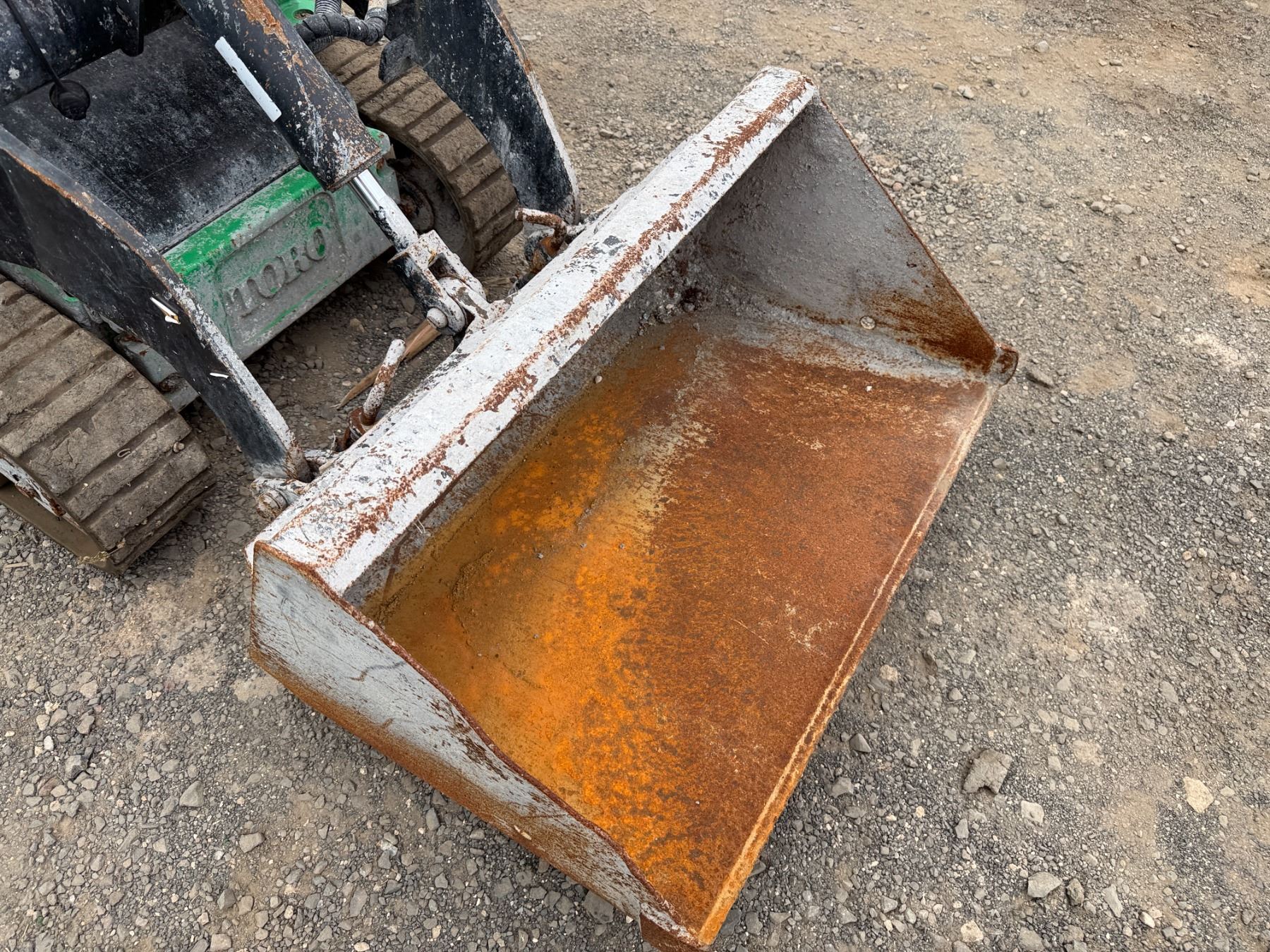 THE RETAINING PINS SECURING THE BUCKET ARE SEIZED and require lubrication to free them. This condition must be addressed to ensure the bucket remains properly attached and does not detach during operation.