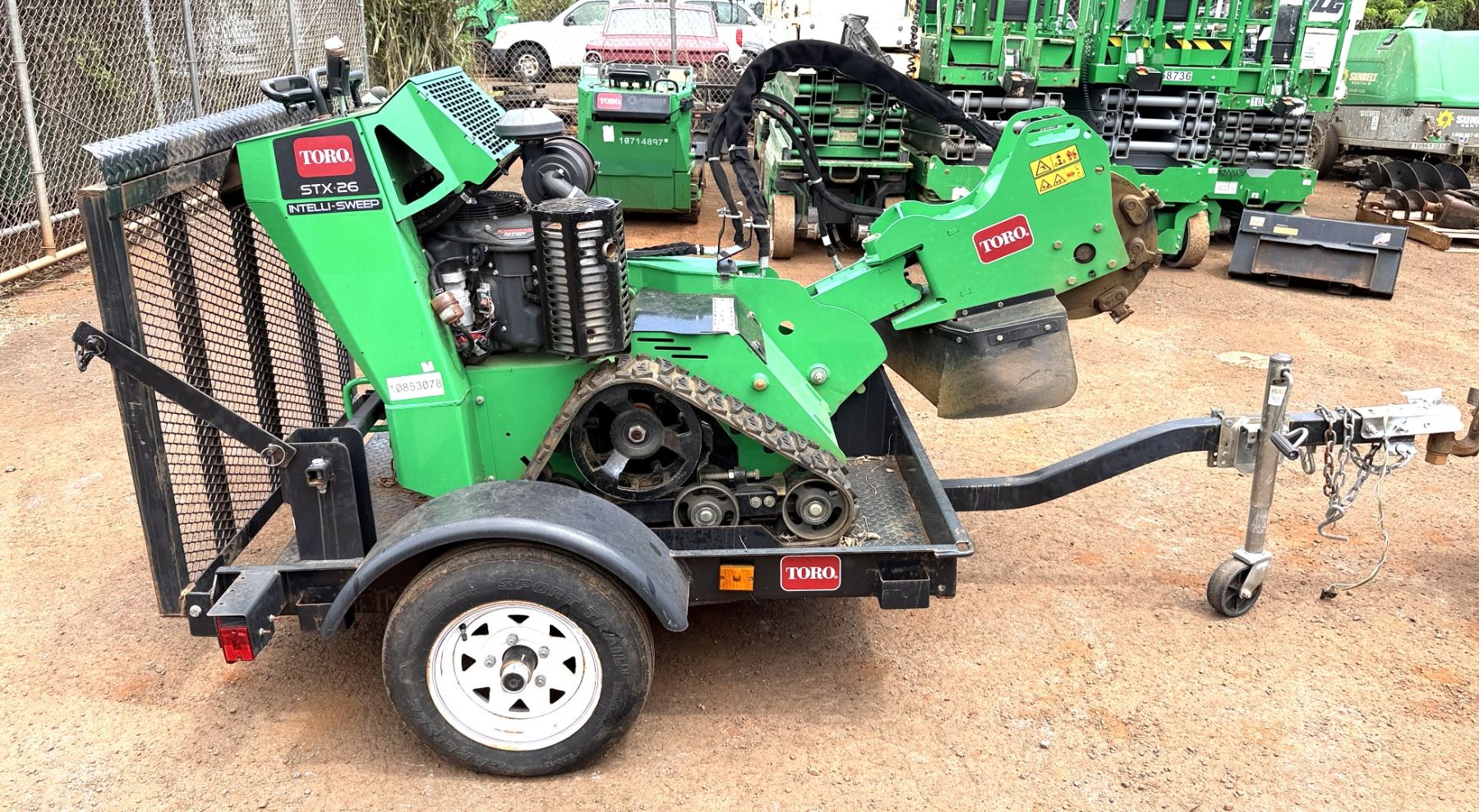 Starts & Runs, See Video. 2023 Toro 23208G Tracked Stump Grinder w/ 2021 Teske 4x5 Dingo Trailer. Trailer asset #10714880.