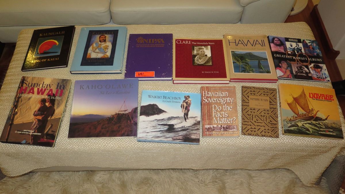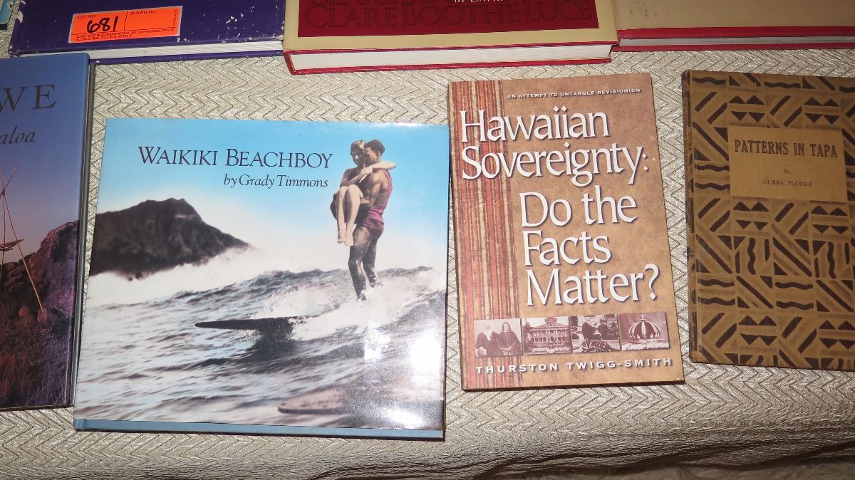 12 Misc. Hawaiiana Books: Waikiki Beachboy, Patterns in Tapa, Sunday in Hawaiia, etc.
