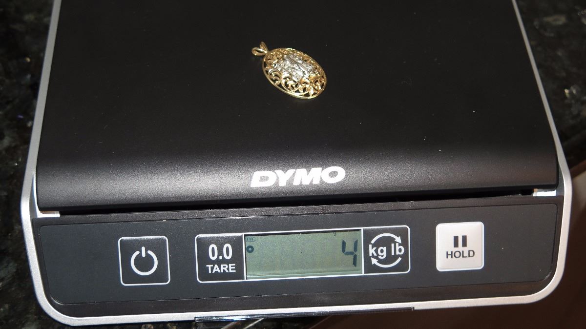 14K Gold Filigree Oval Pendant w/Diamond-Studded "M" 4 grams