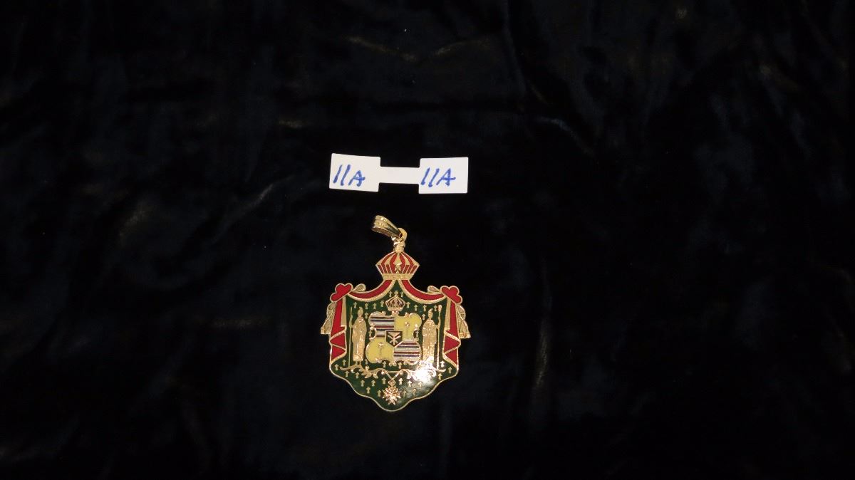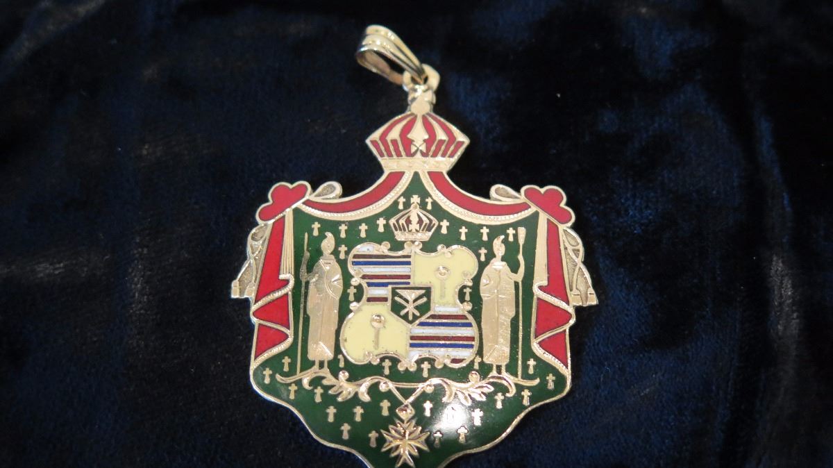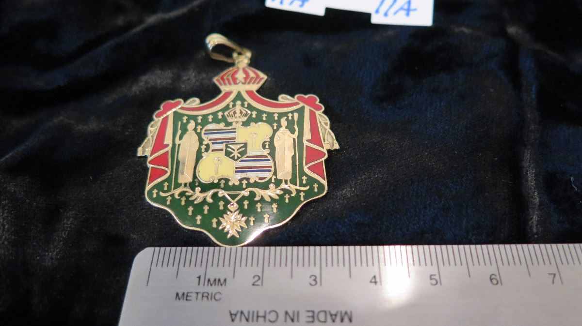 14K Gold Heirloom Pendant - Hawaiian Kingdom Crest Enameled Green/Red Gold 18g