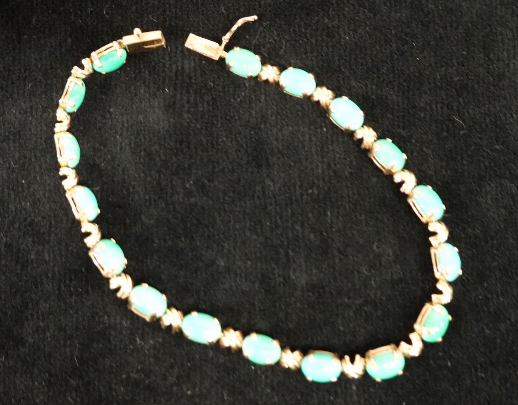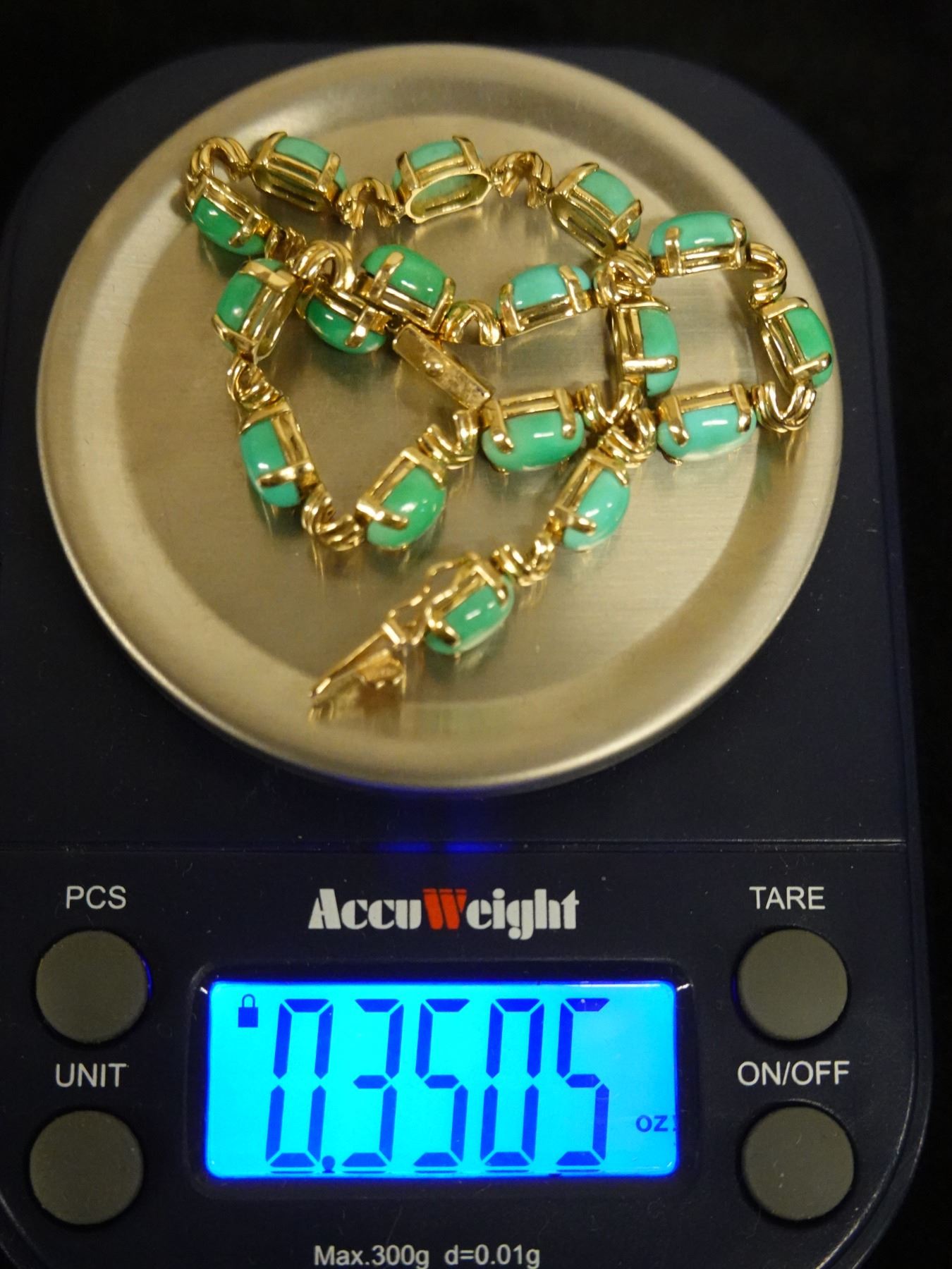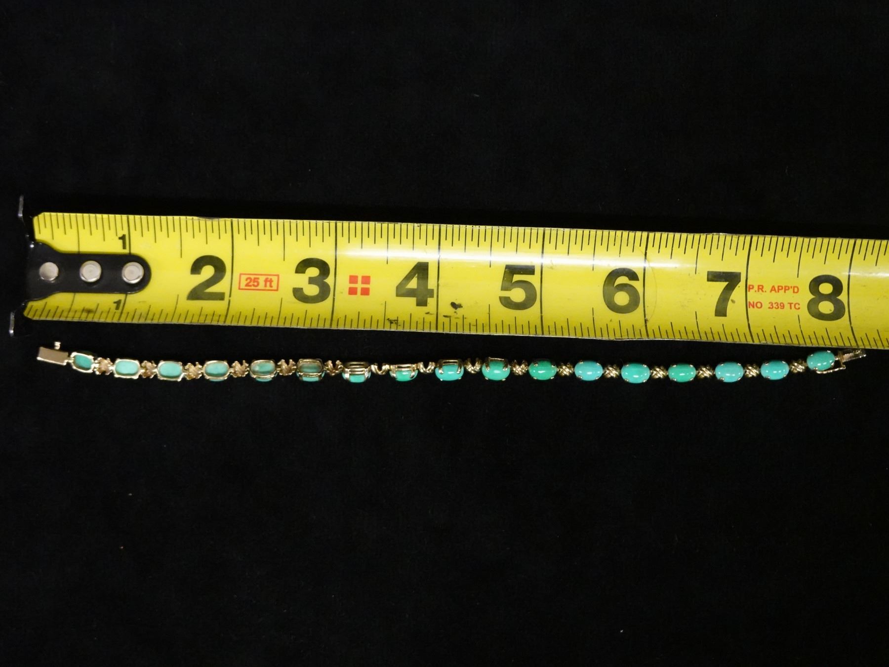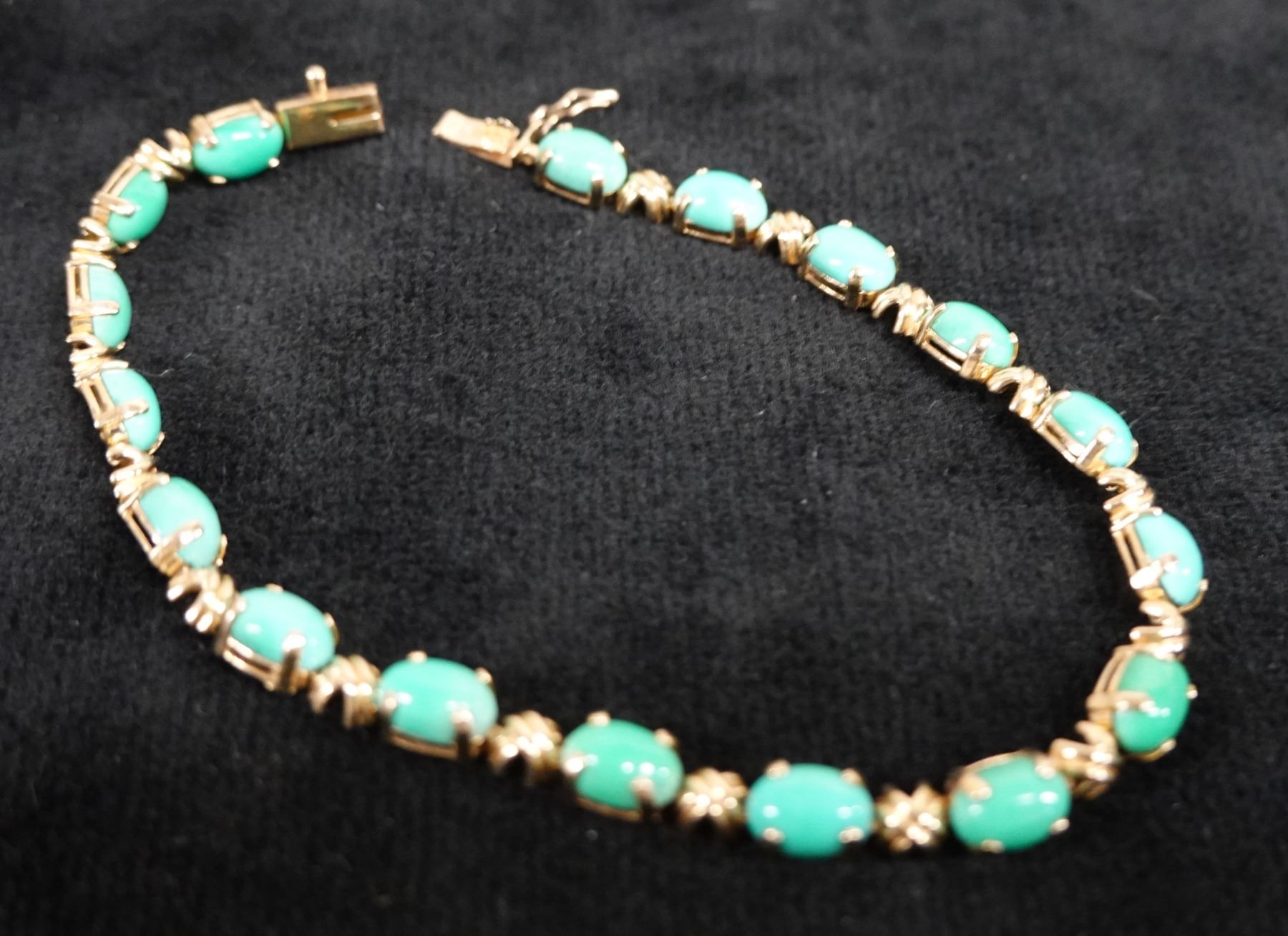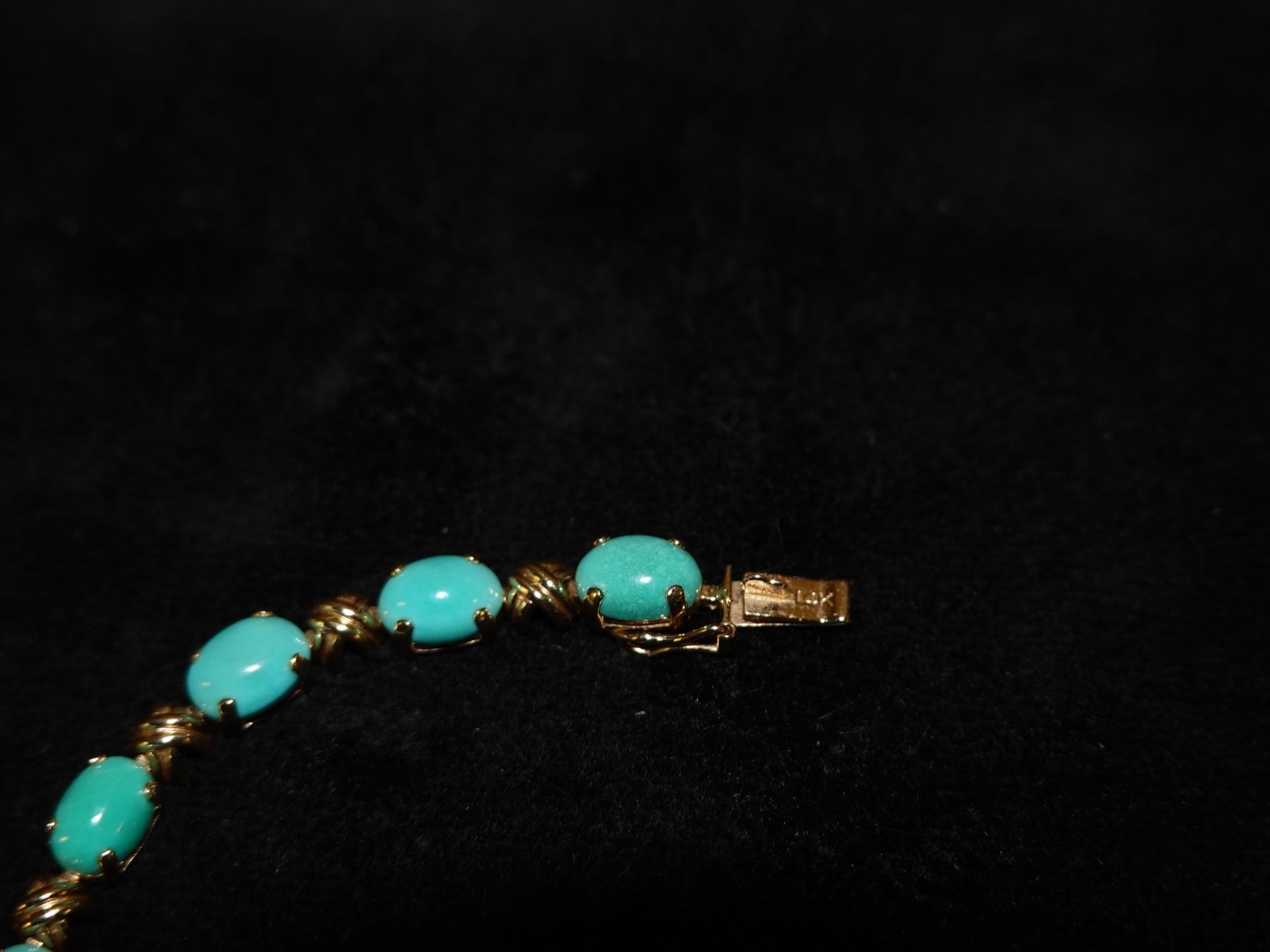 14K Link Bracelet w/ Turquoise Beads 8" L, 0.35 oz