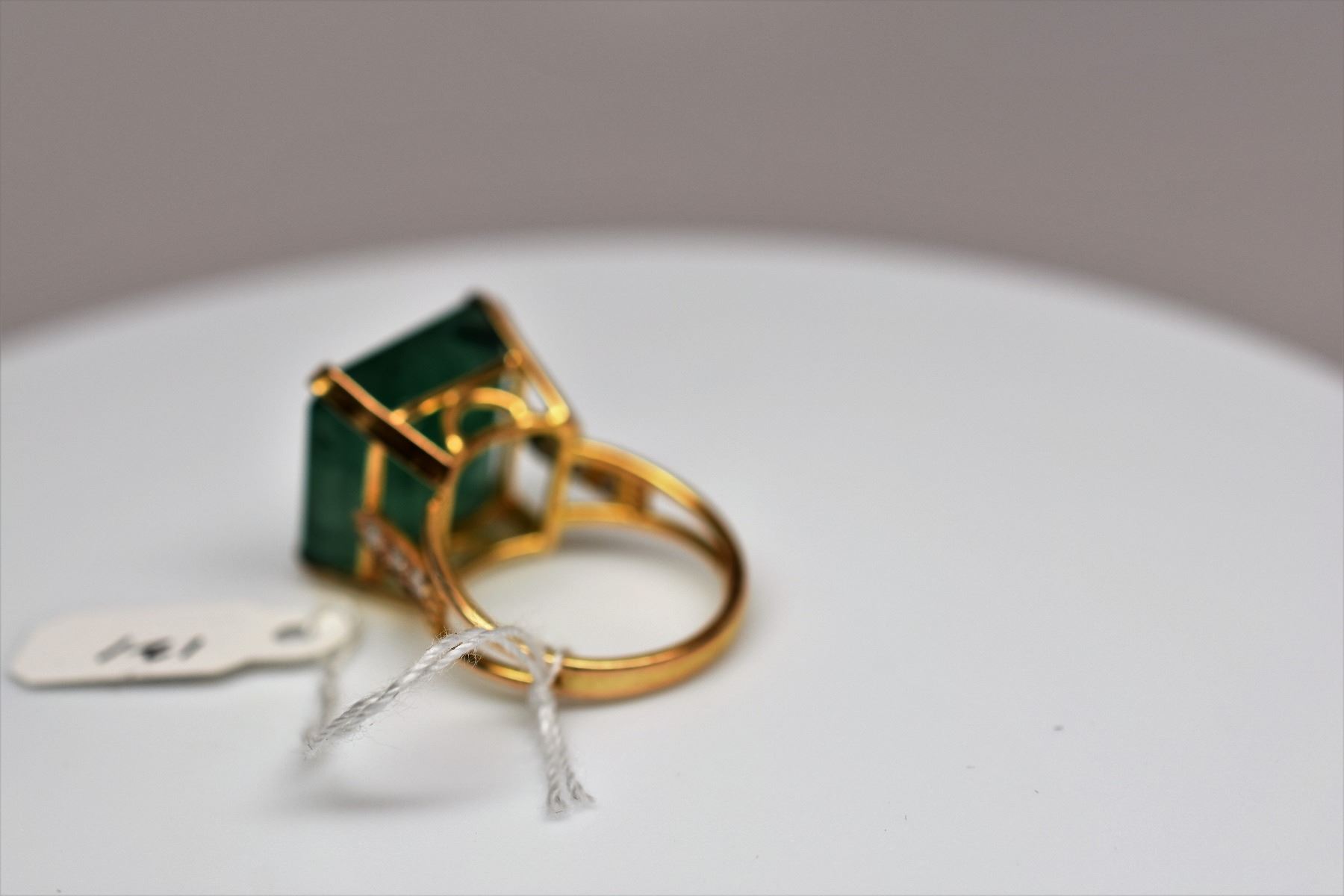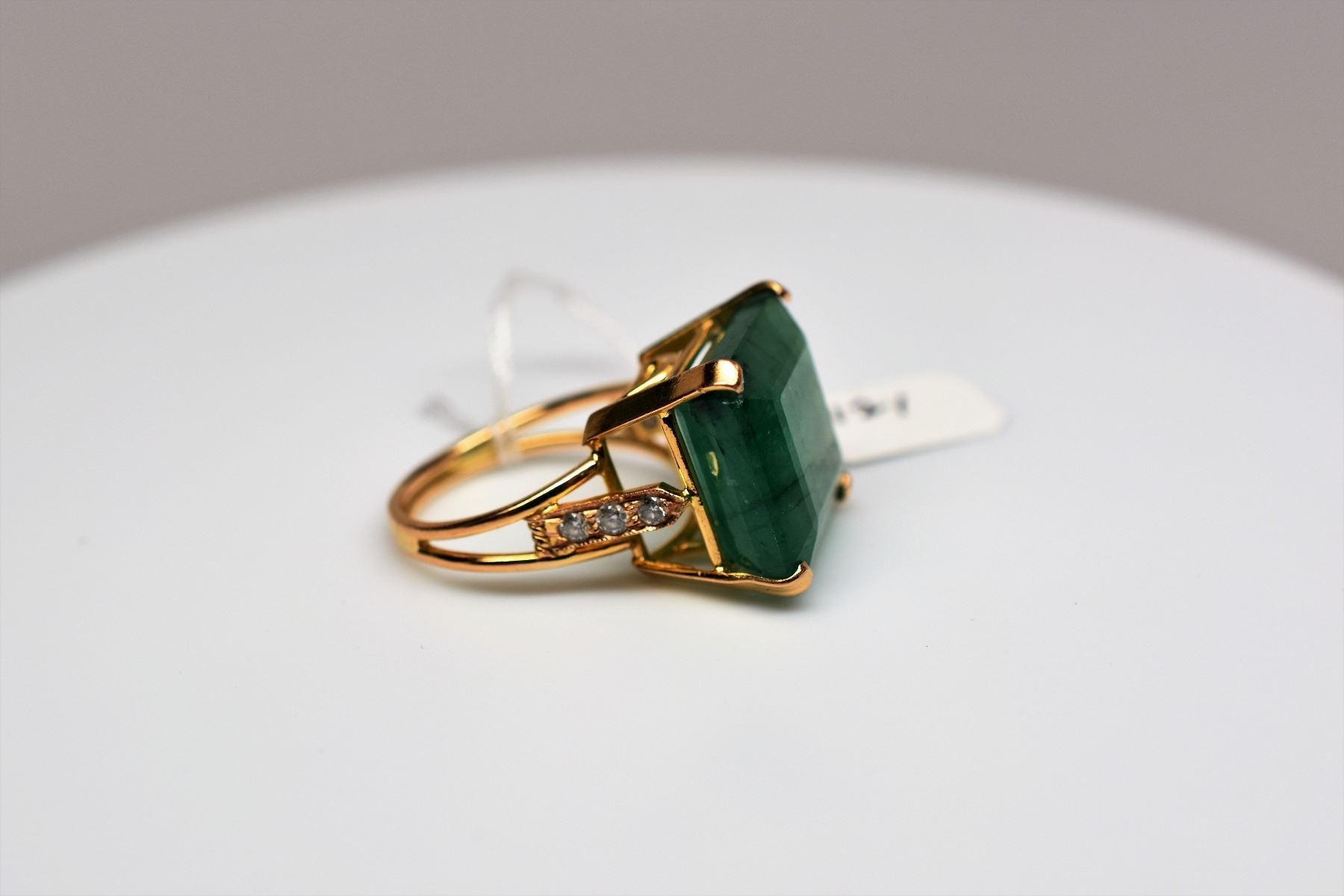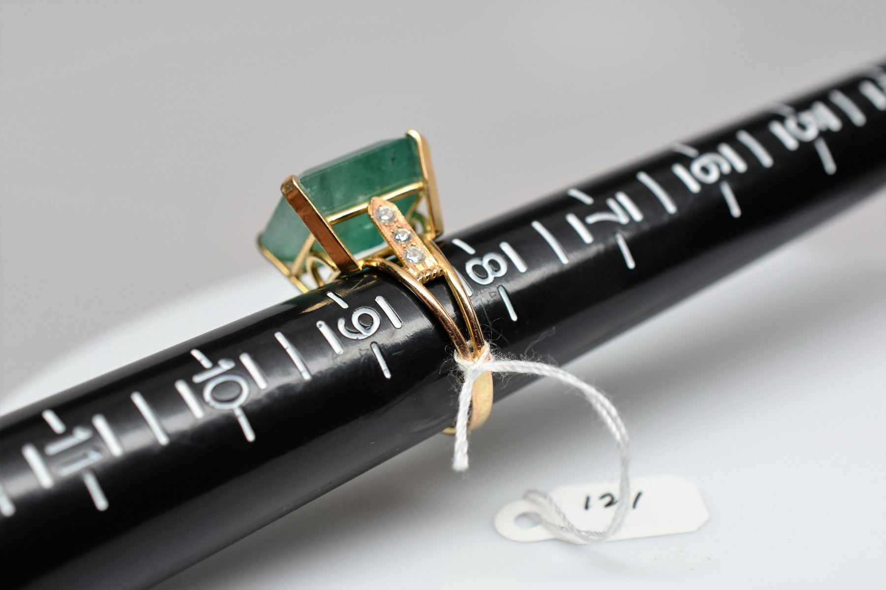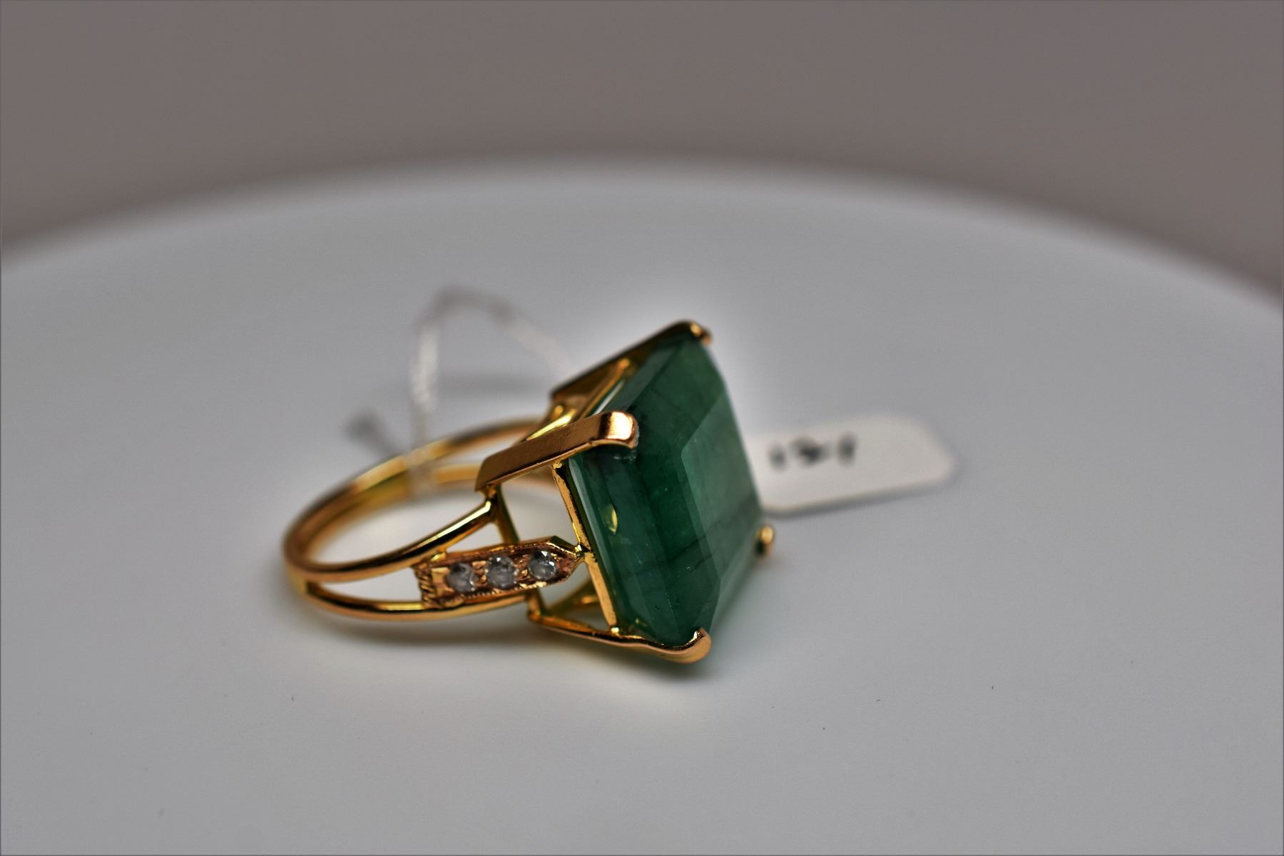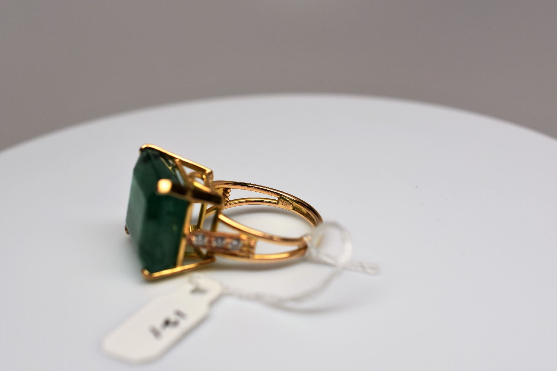 15 ct Emerald & Diamond Ring - 16.6 x 16 x 9.3mm Square Cut Emerald, 6 Round Brilliant Cut Diamonds Approx .18 ct, 18K Yellow Gold, 9.1 grams