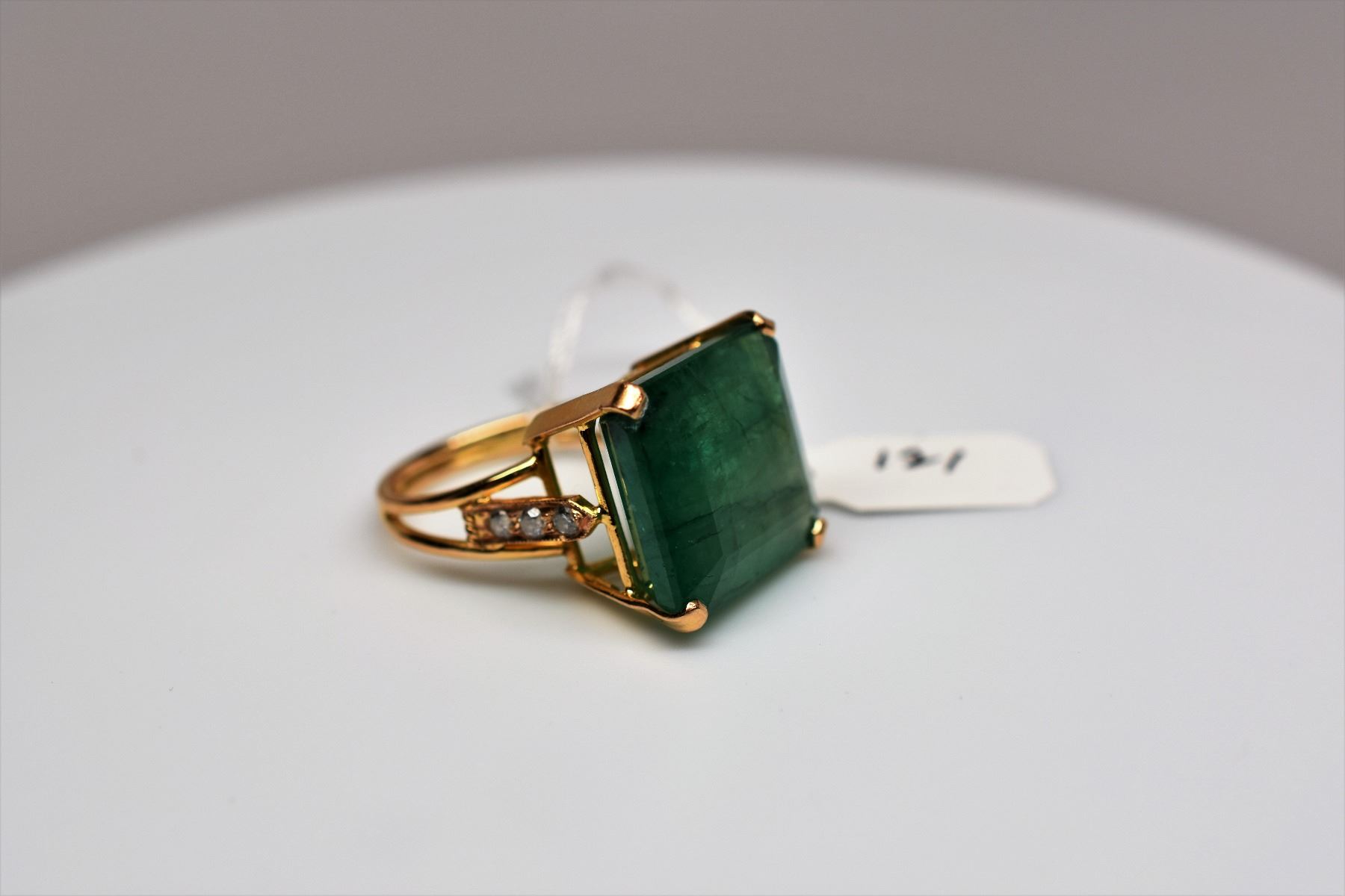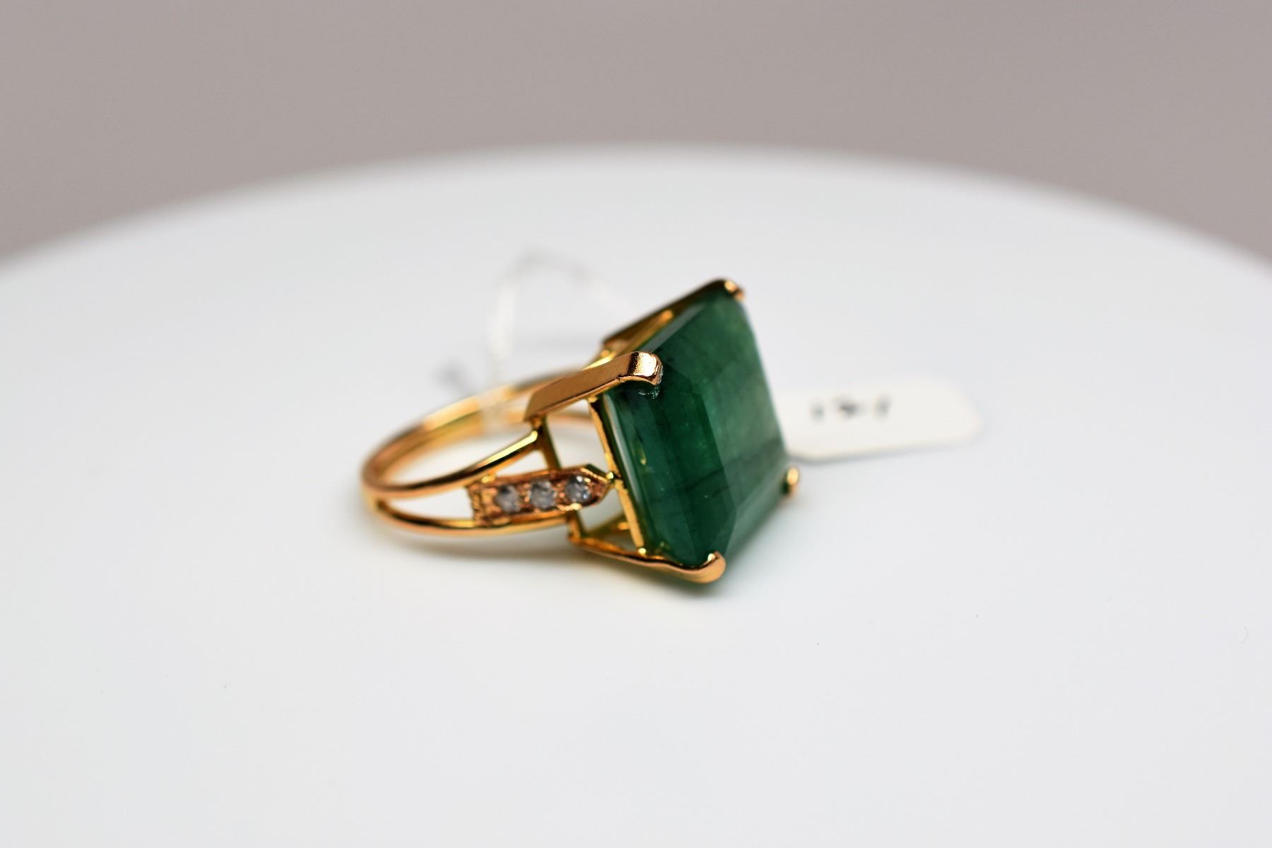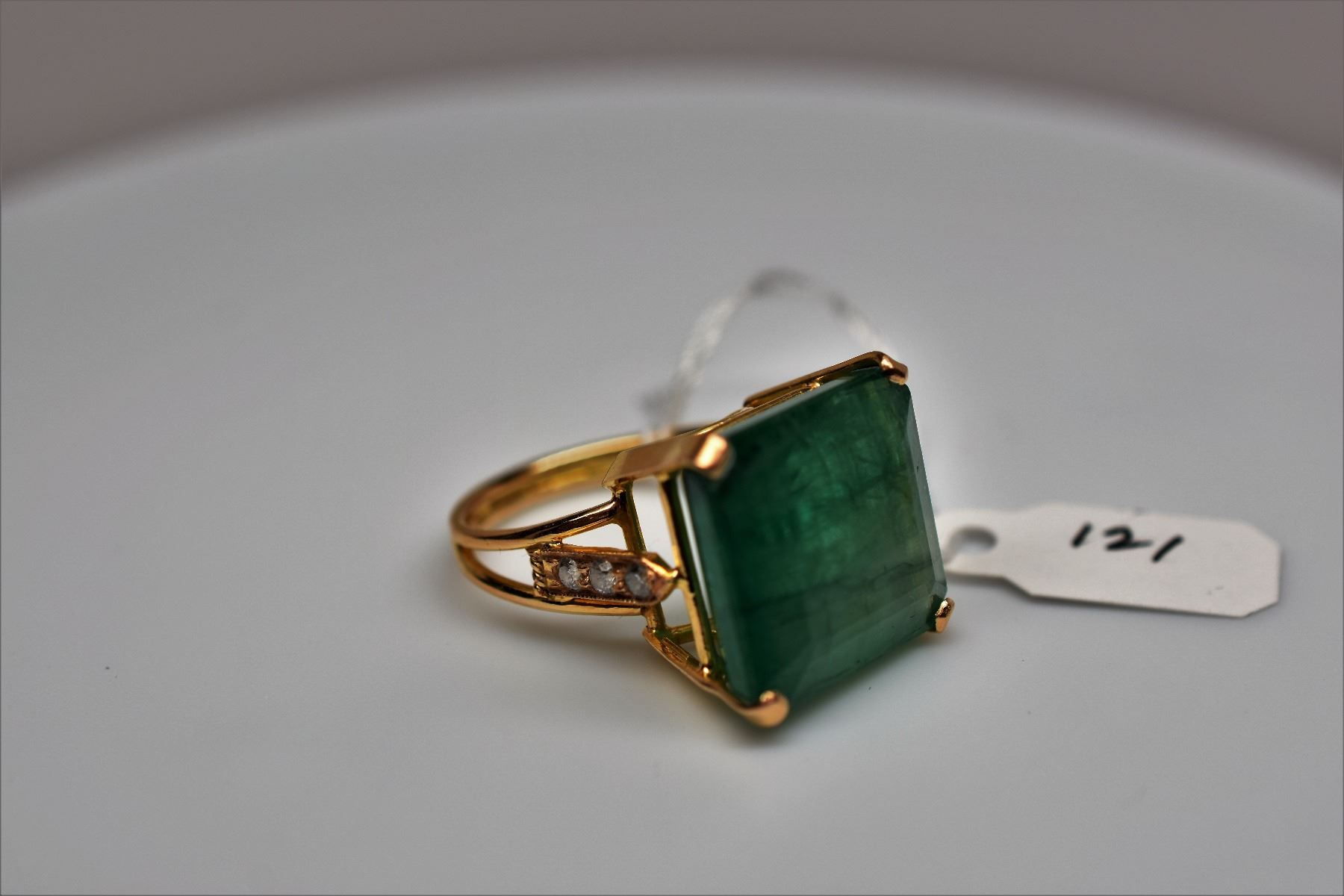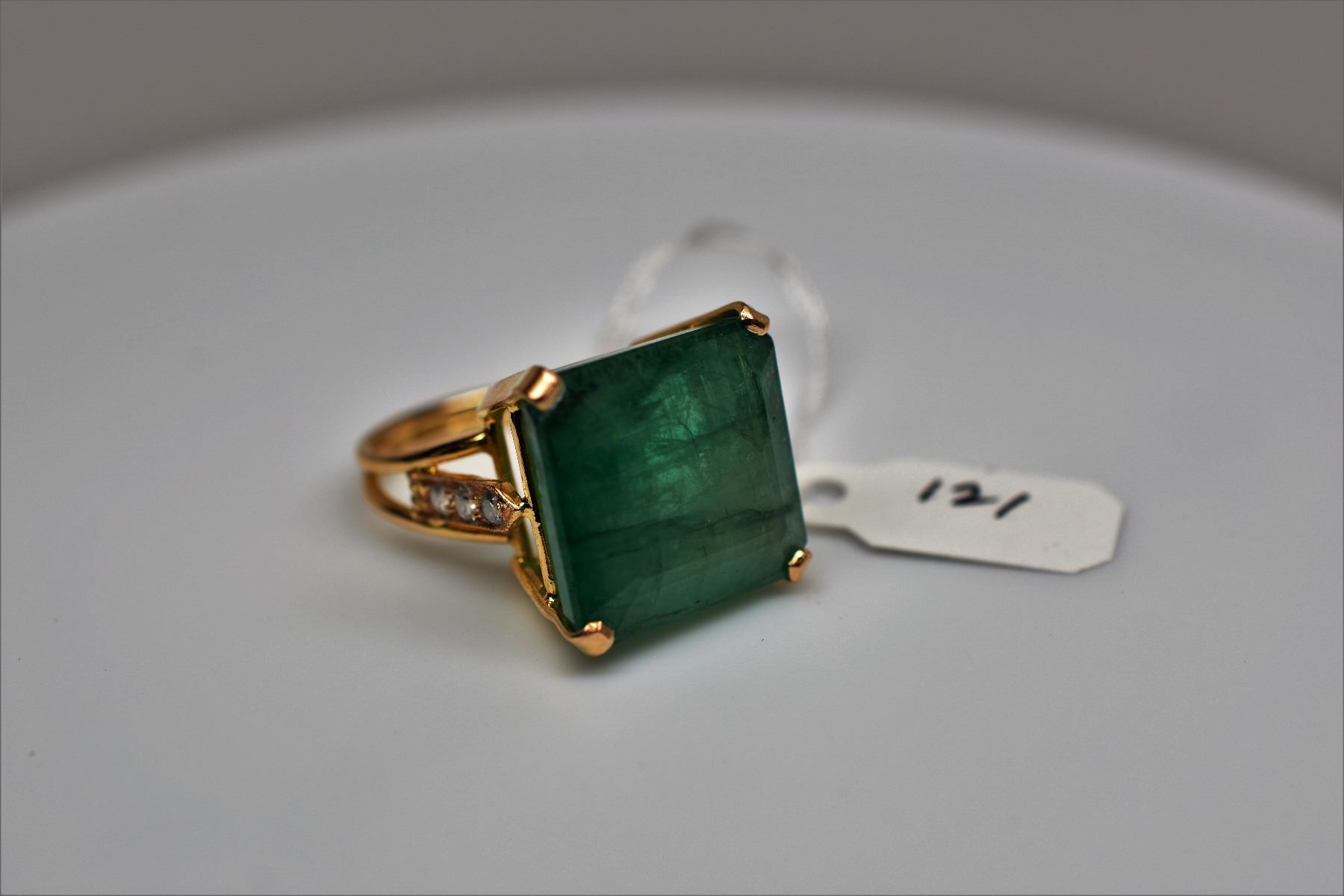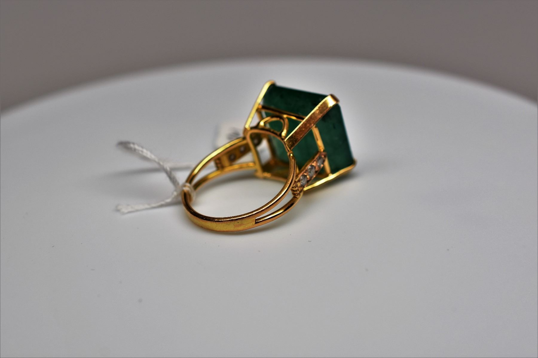 15 ct Emerald & Diamond Ring - 16.6 x 16 x 9.3mm Square Cut Emerald, 6 Round Brilliant Cut Diamonds Approx .18 ct, 18K Yellow Gold, 9.1 grams