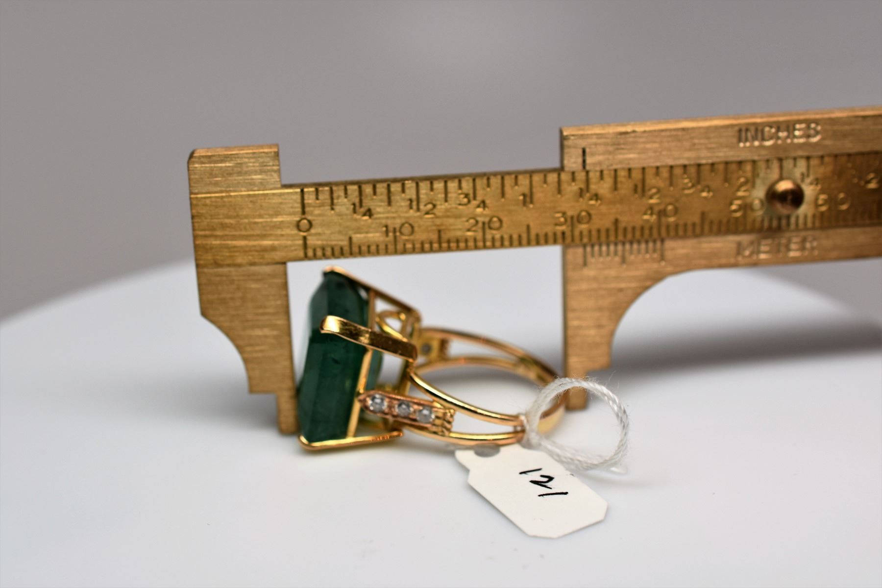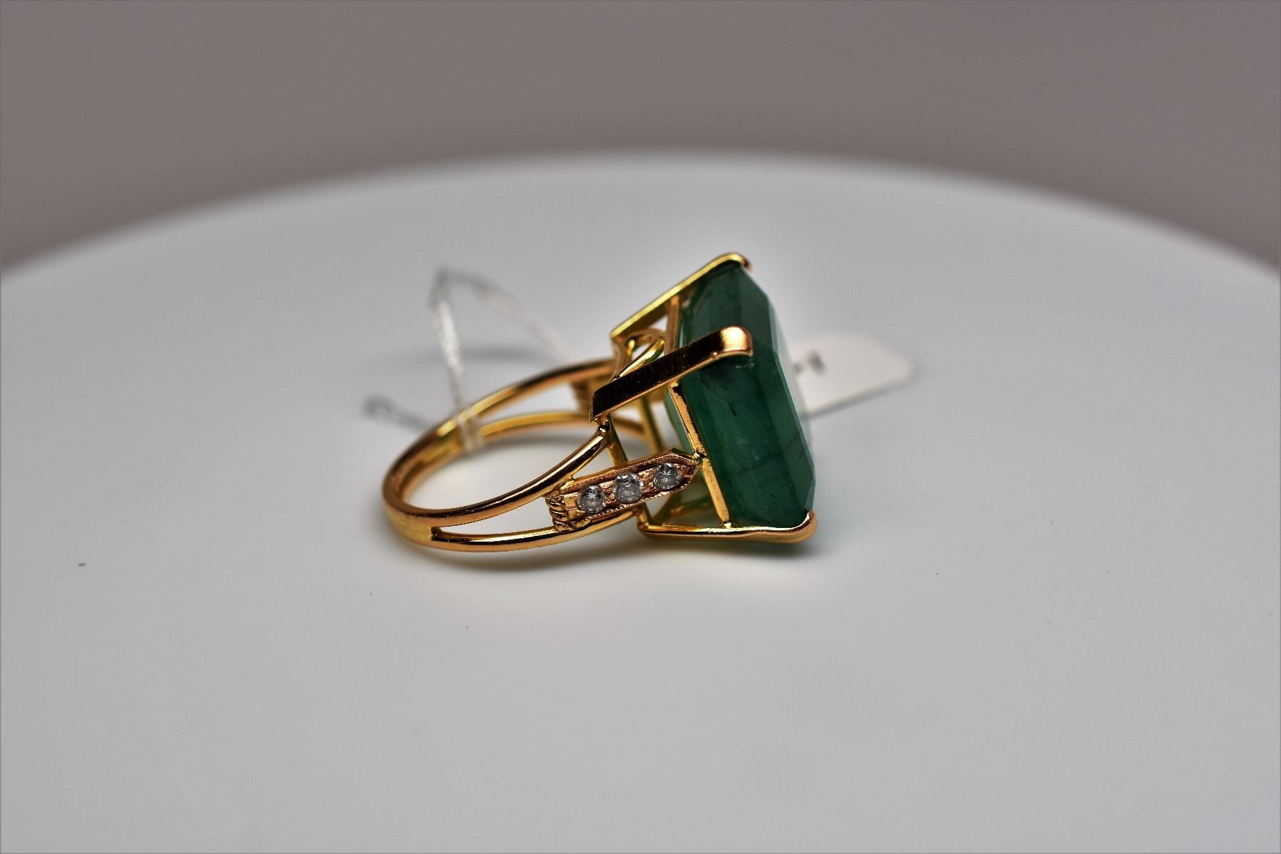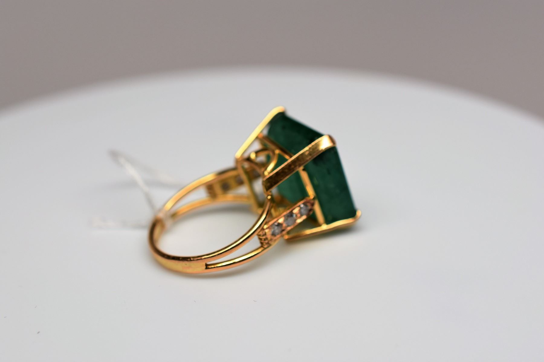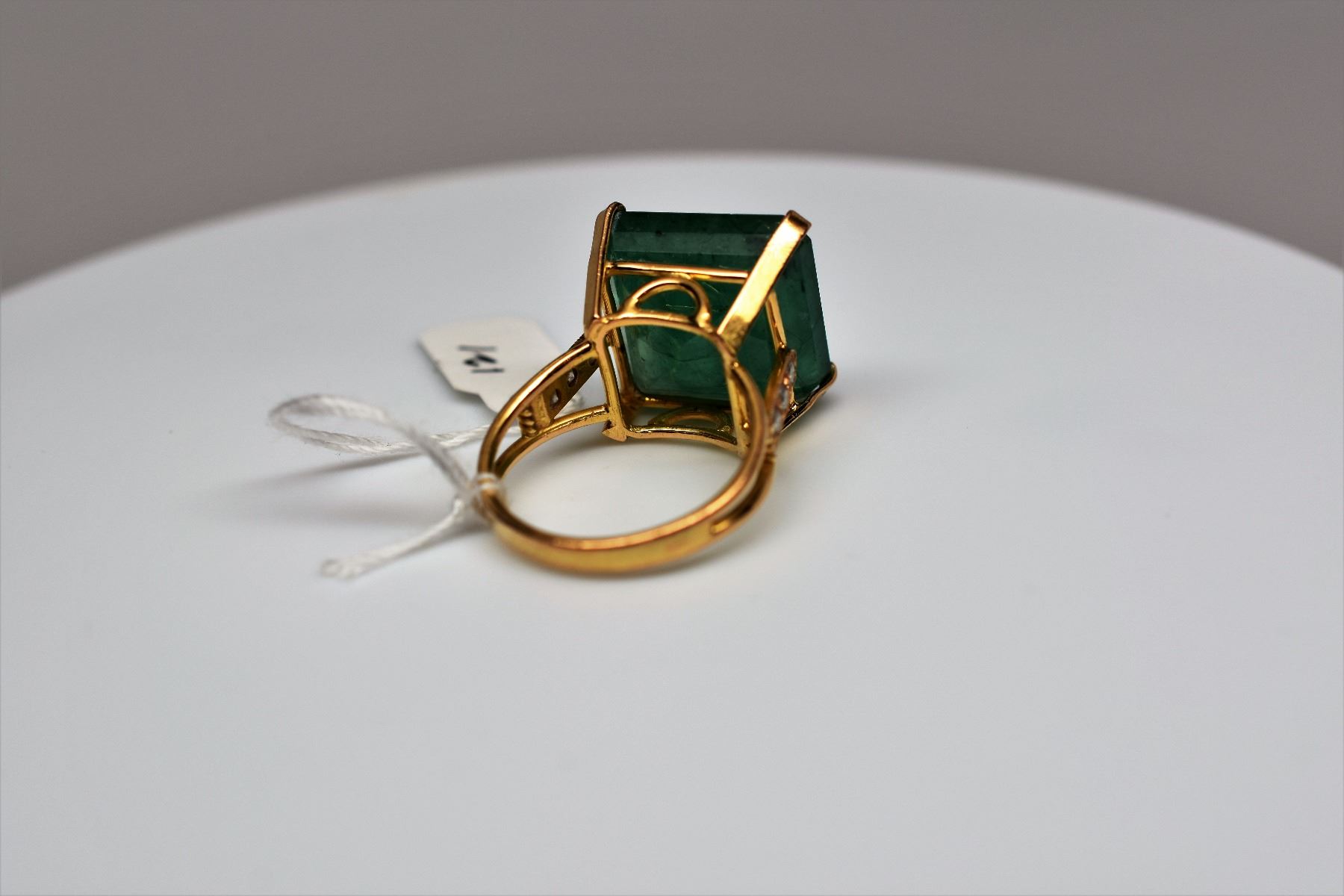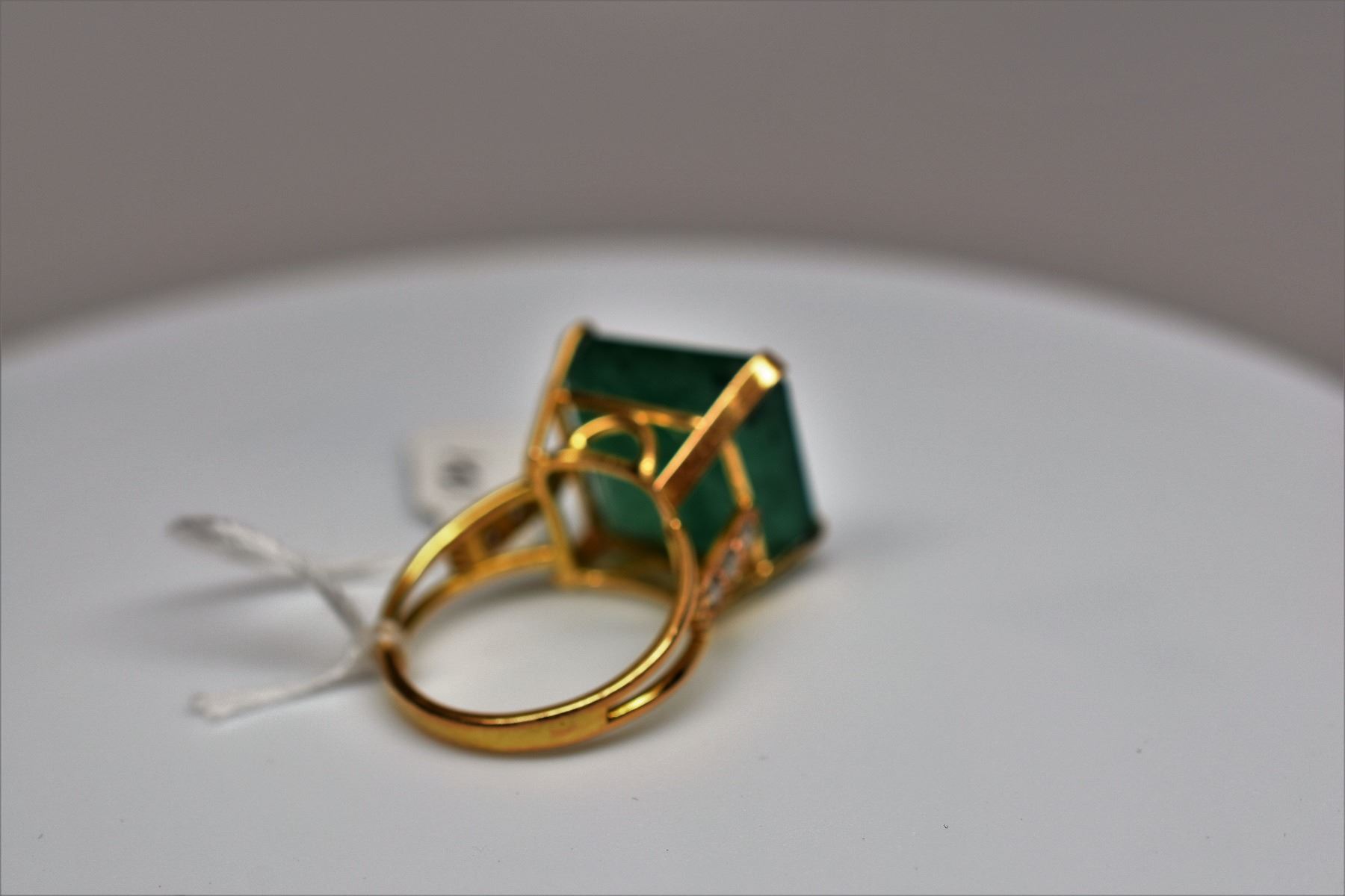 15 ct Emerald & Diamond Ring - 16.6 x 16 x 9.3mm Square Cut Emerald, 6 Round Brilliant Cut Diamonds Approx .18 ct, 18K Yellow Gold, 9.1 grams