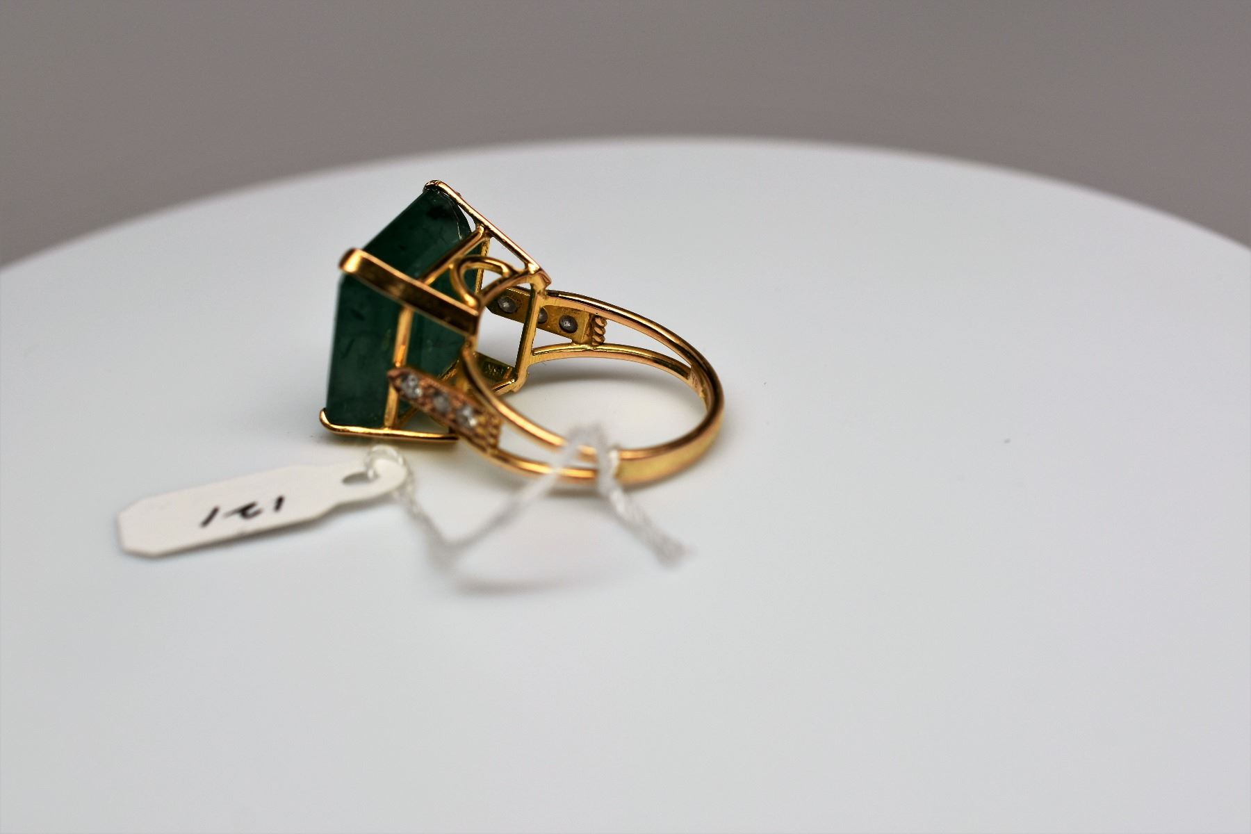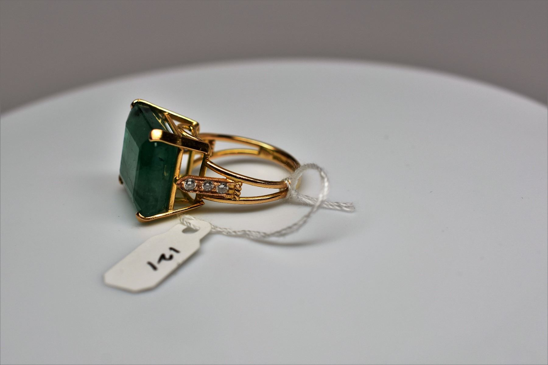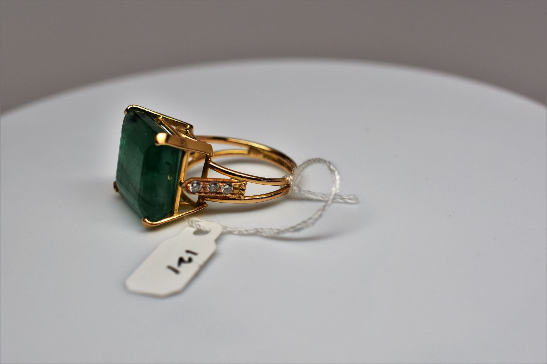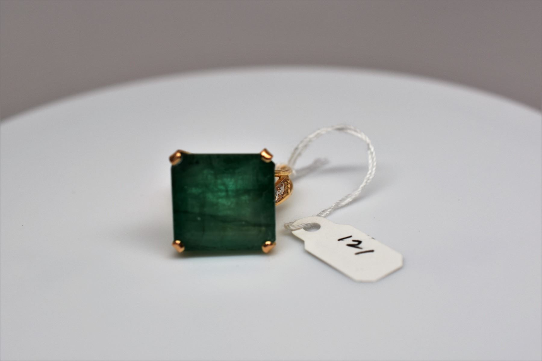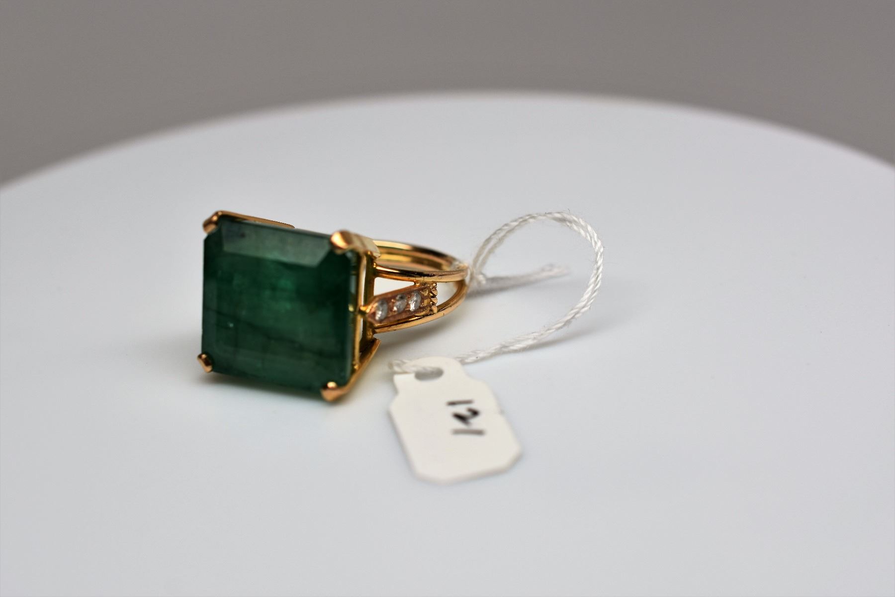 15 ct Emerald & Diamond Ring - 16.6 x 16 x 9.3mm Square Cut Emerald, 6 Round Brilliant Cut Diamonds Approx .18 ct, 18K Yellow Gold, 9.1 grams
