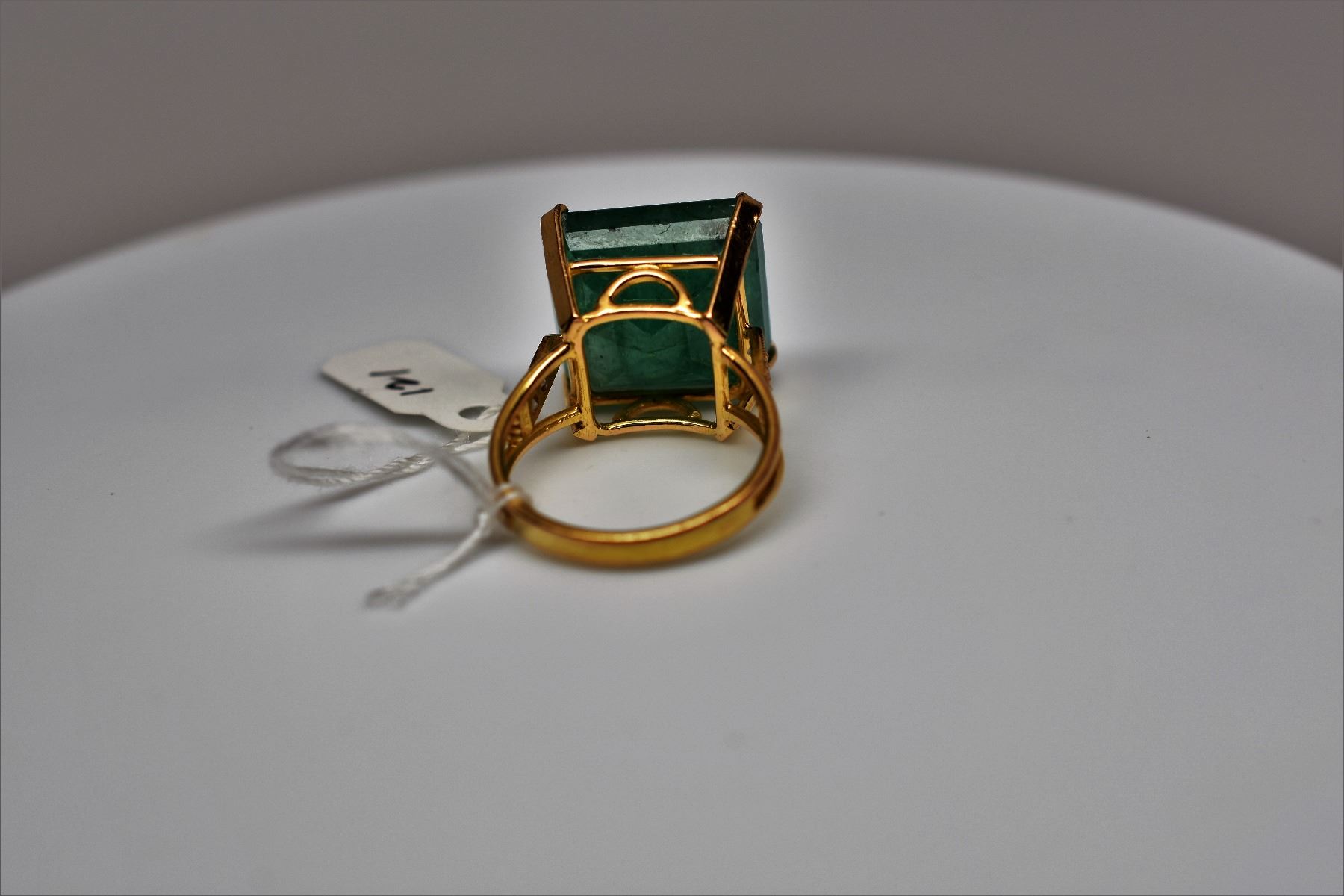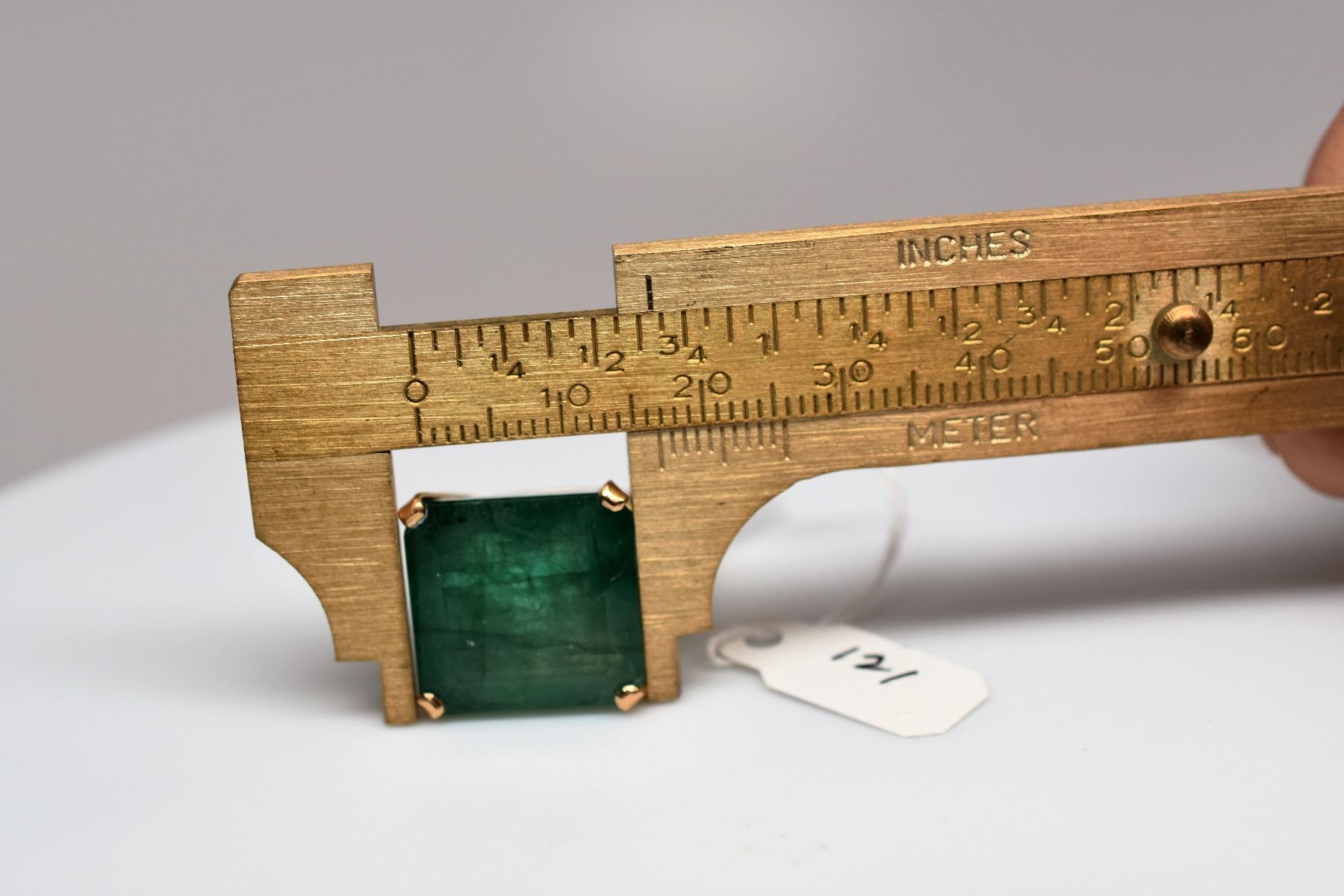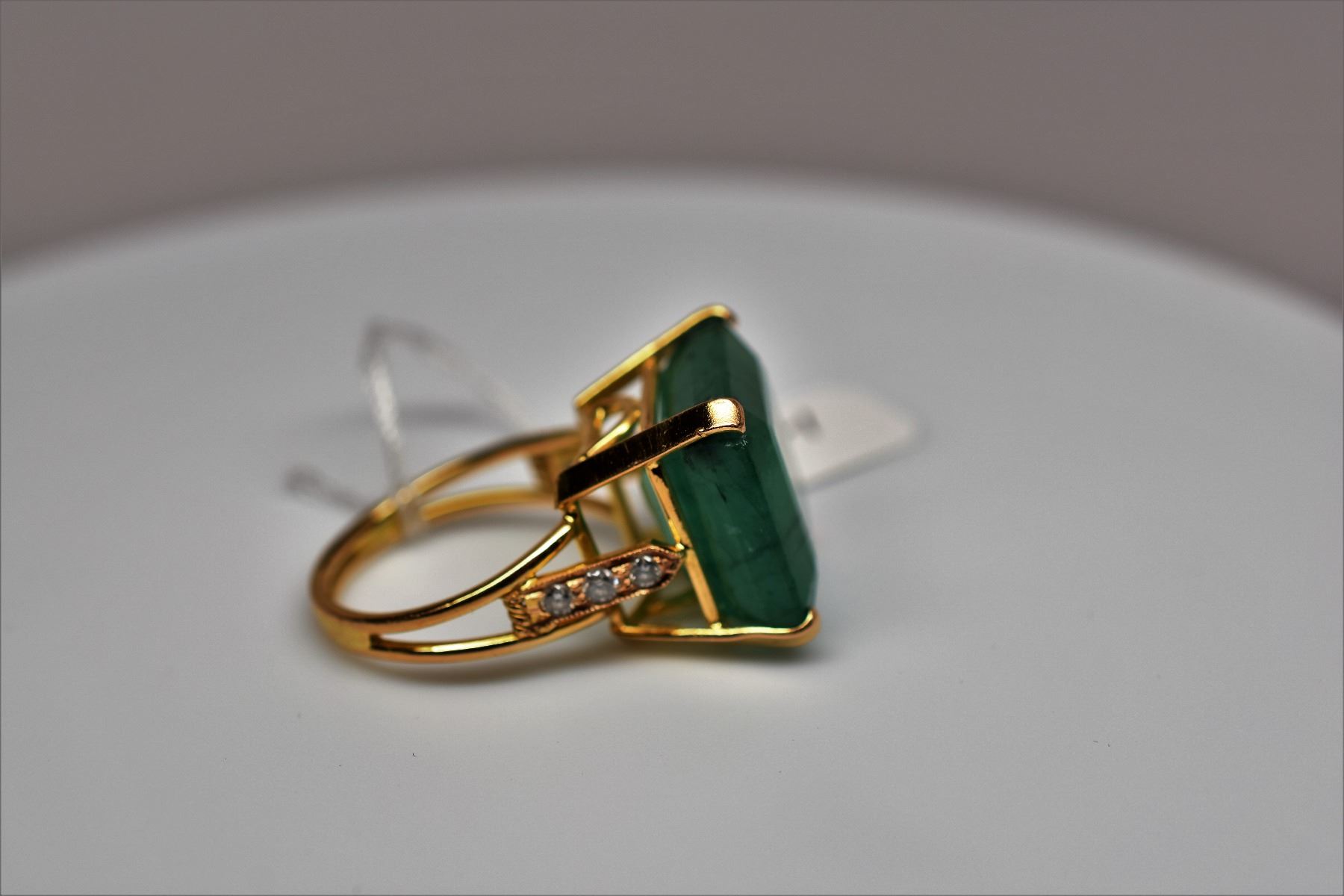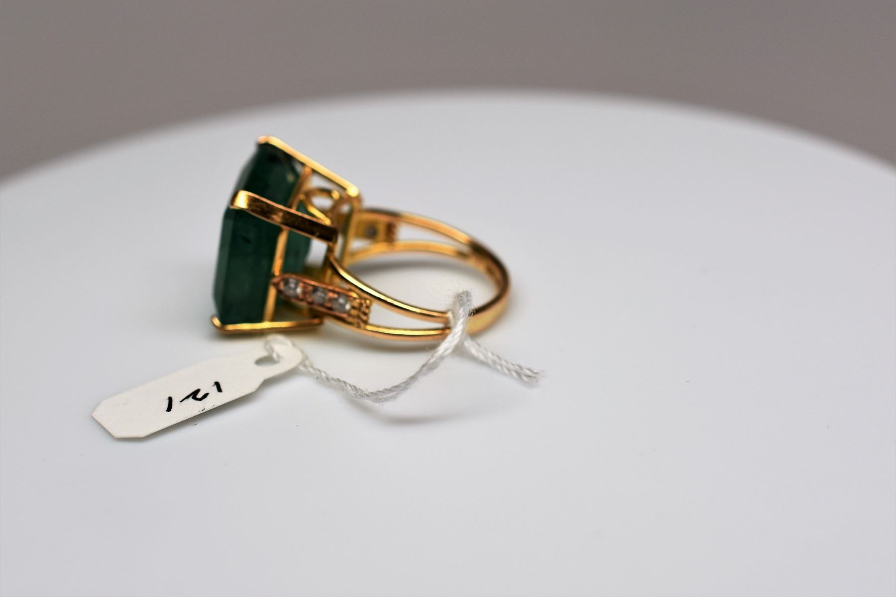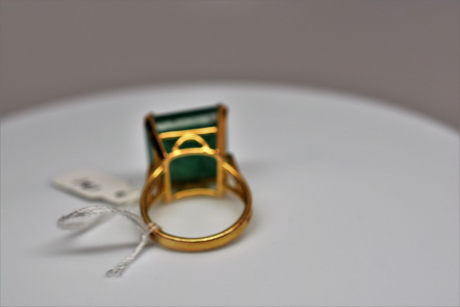 15 ct Emerald & Diamond Ring - 16.6 x 16 x 9.3mm Square Cut Emerald, 6 Round Brilliant Cut Diamonds Approx .18 ct, 18K Yellow Gold, 9.1 grams