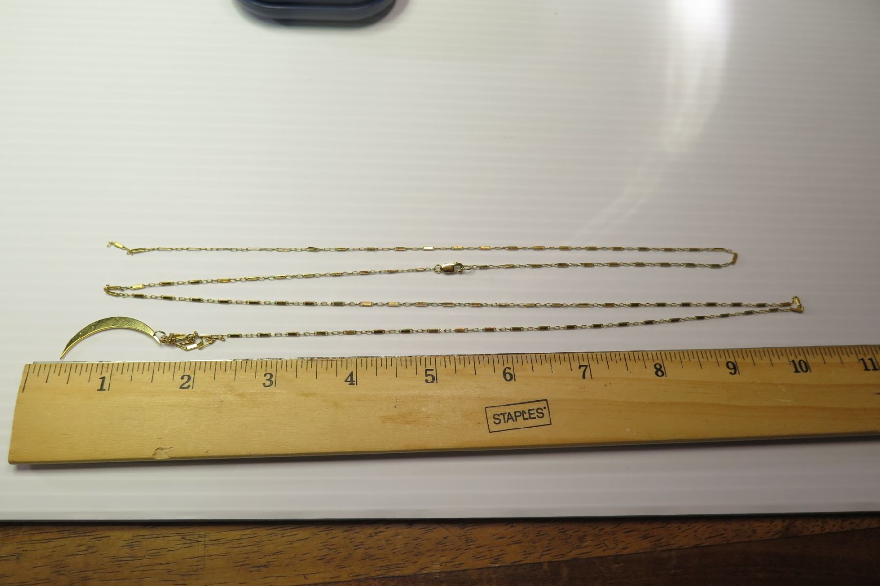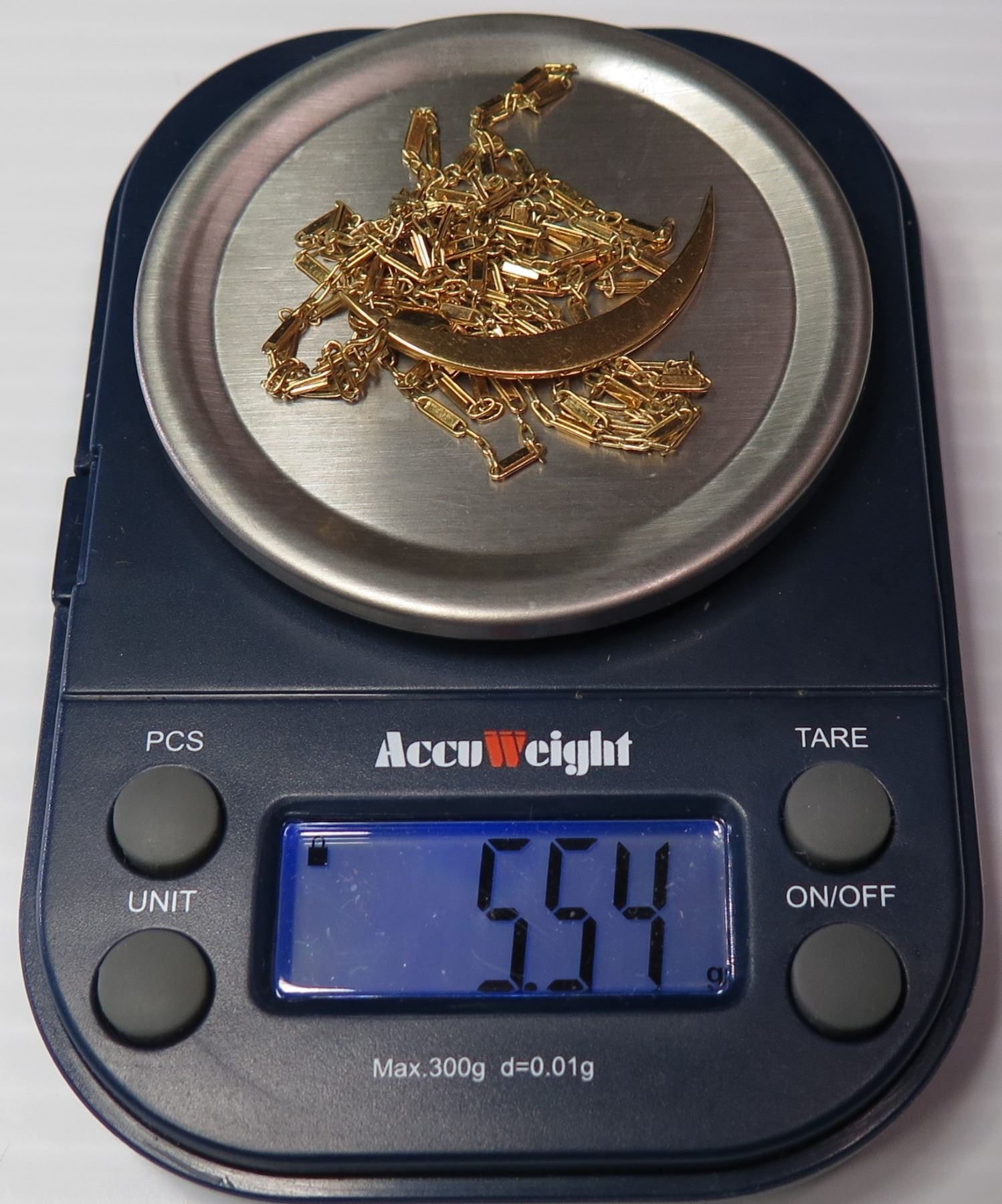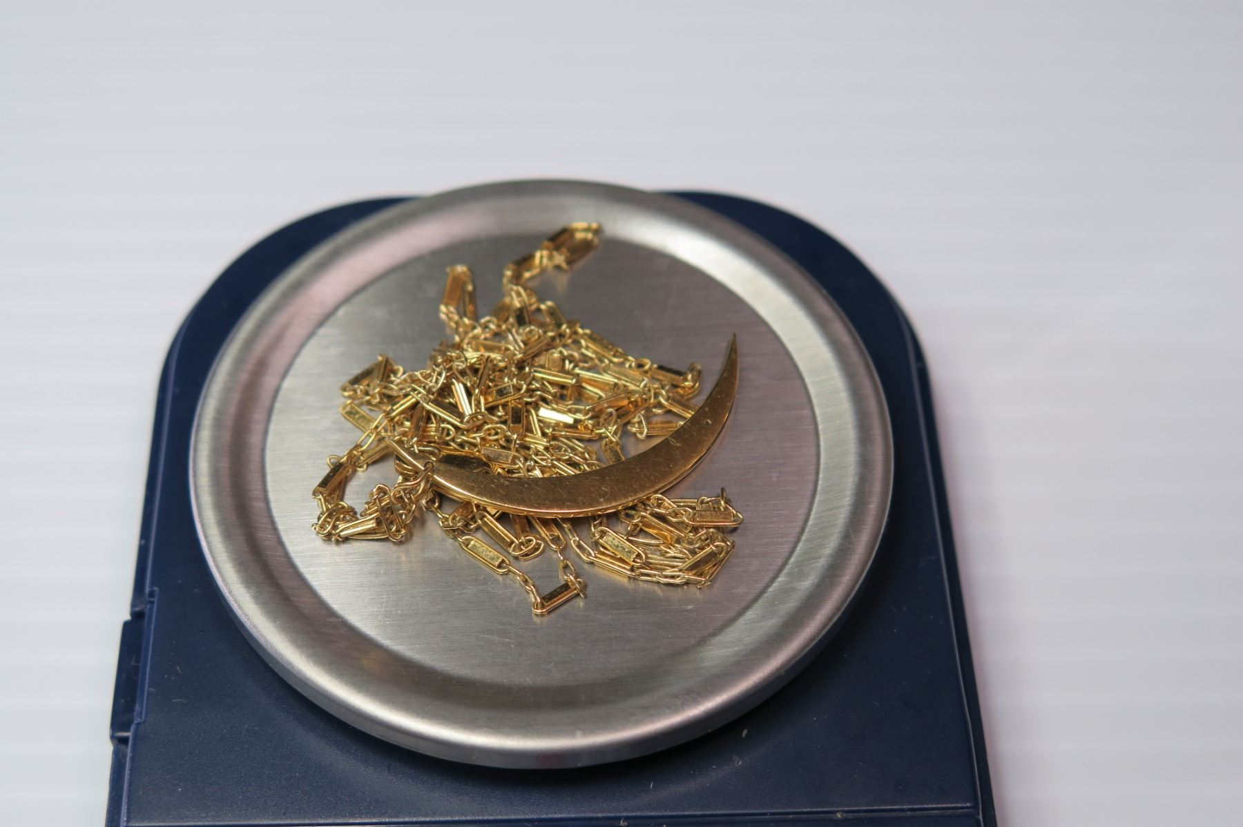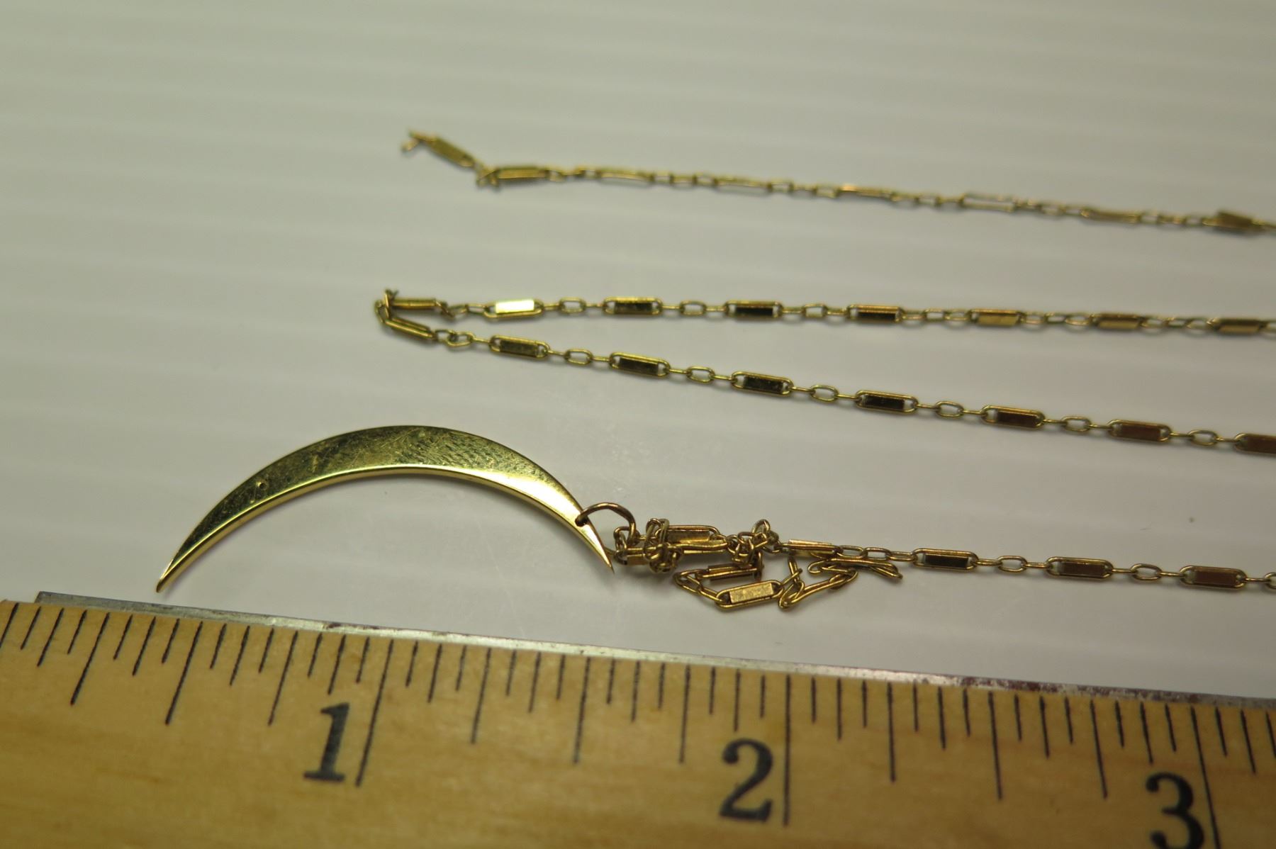 18K Link Neck Chain (broken) and 18K Crescent Pendant, Approx. 5.54 Grams Combined