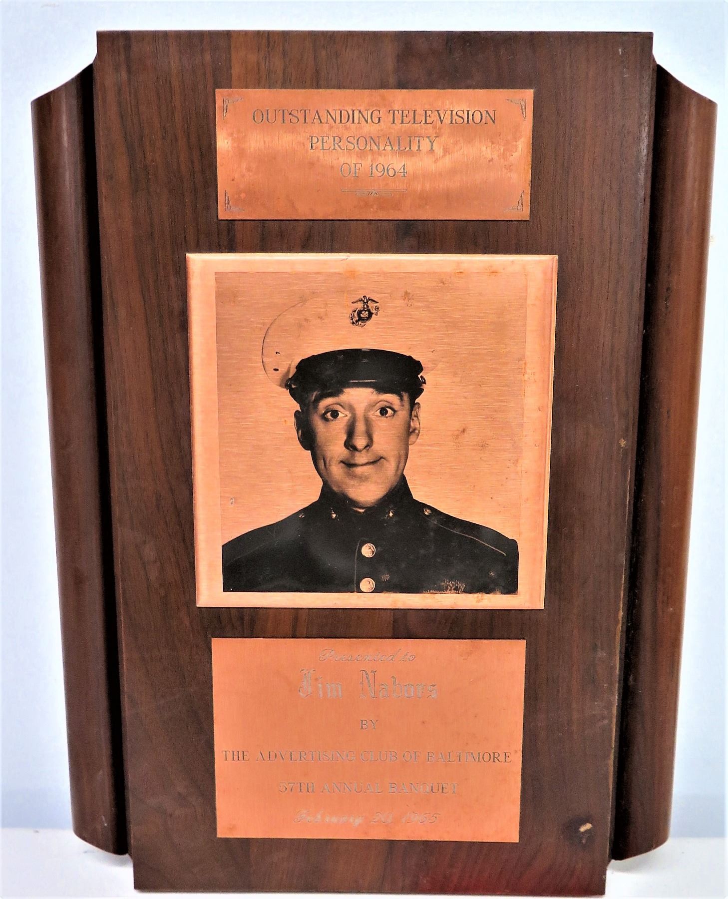 1964 'Outsanding Television Personality' Plaque Awarded to Gomer Pyle by the Advertising Club of Baltimore
