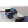 2 Black Club Chairs & Round Frosted Glass Table 23.5"Dia, 17.5"H