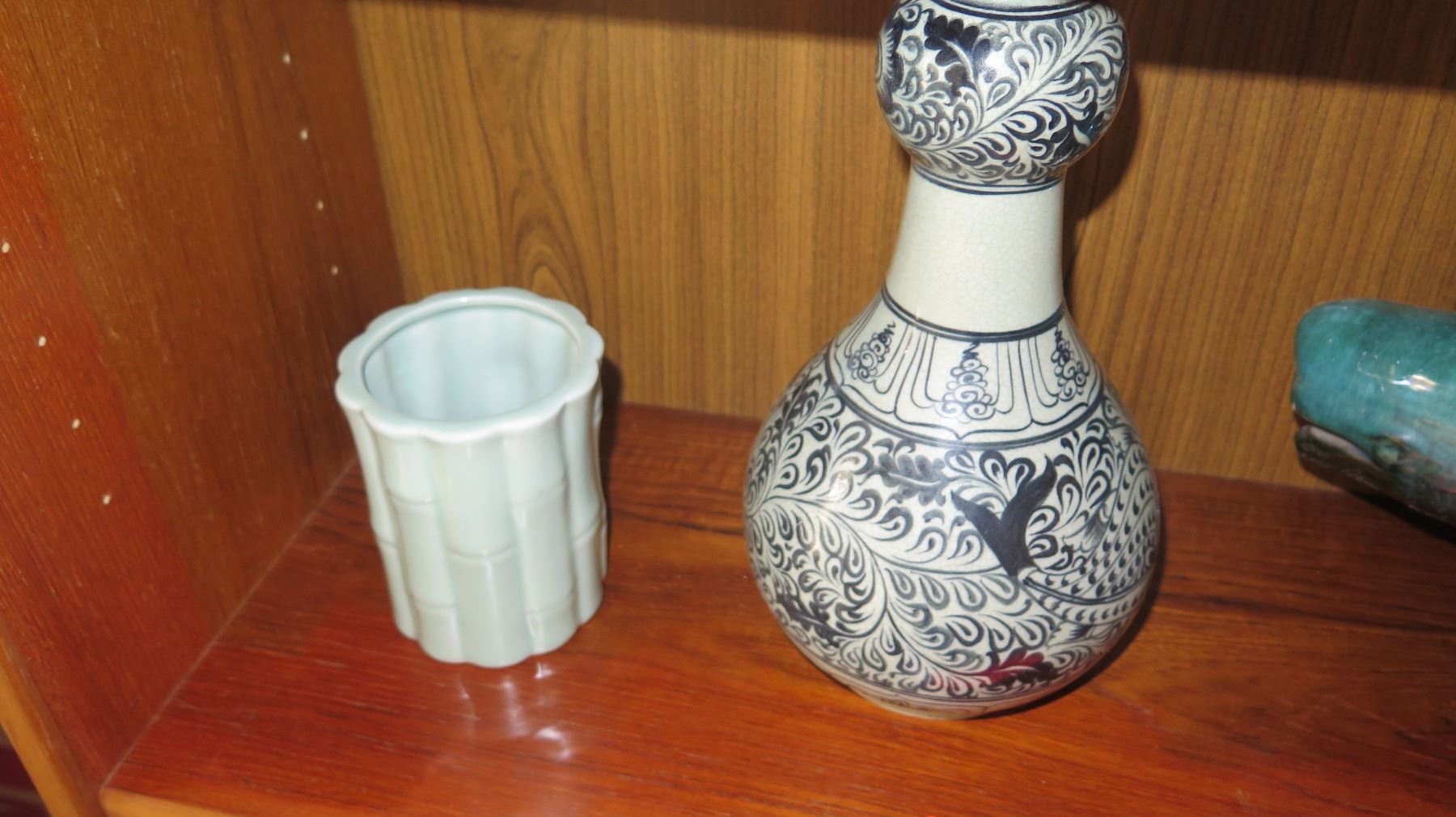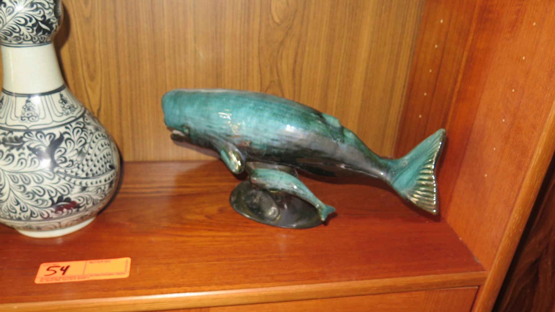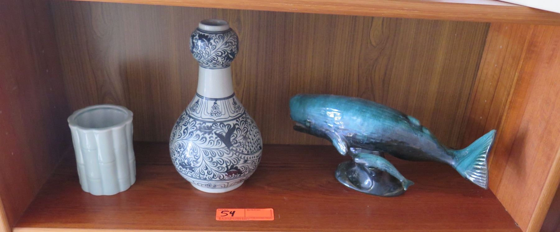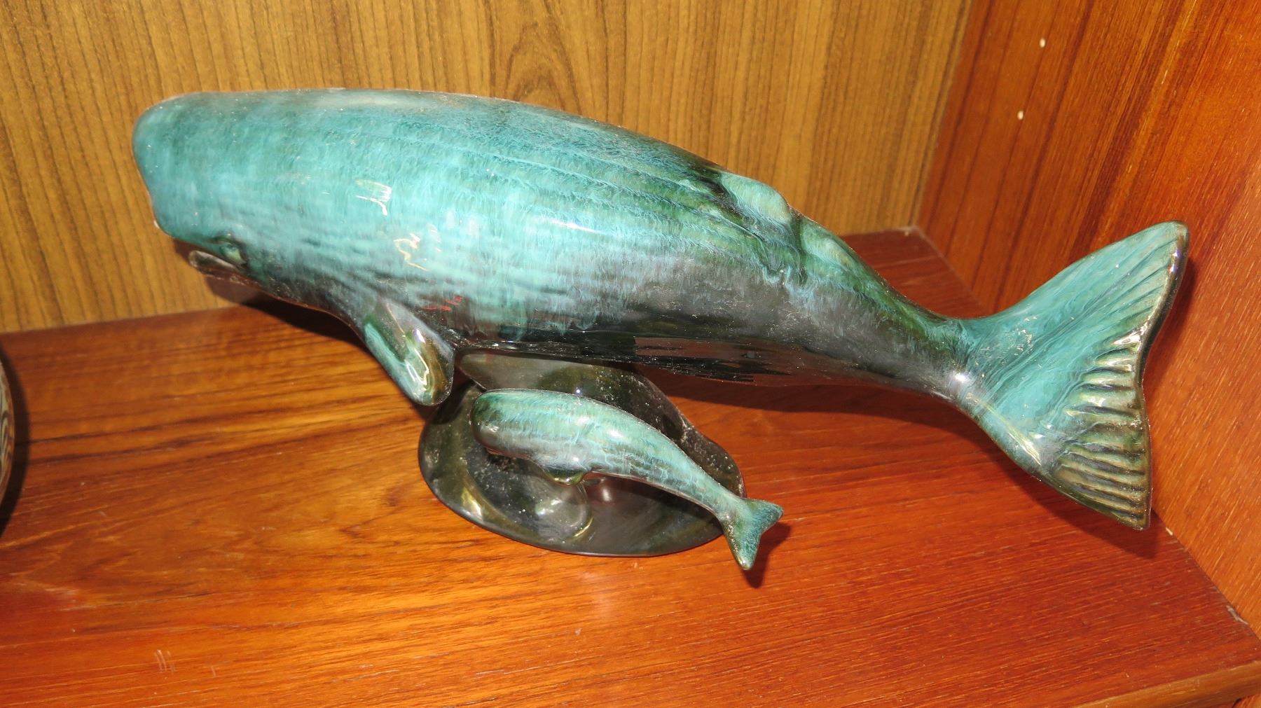 2 Ceramic Vases, Glazed Ceramic Whale & Calf (14" L, 6" H)