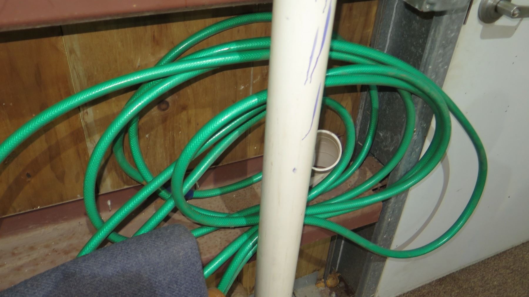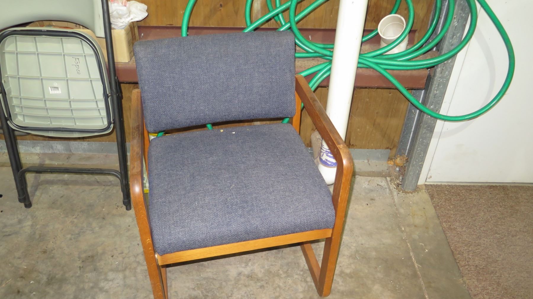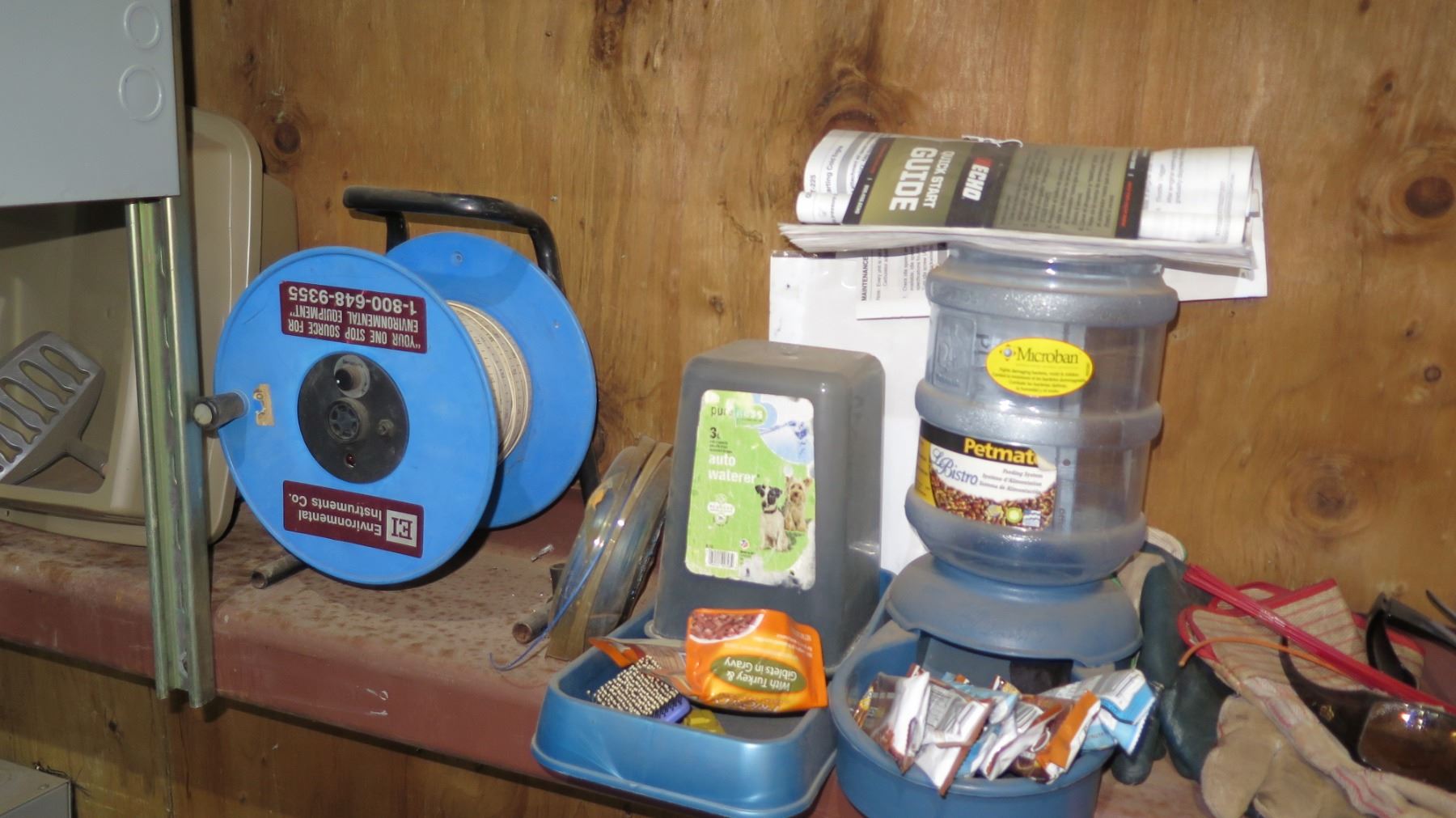 2 Chairs and Cotents of Shelf: Hose, Hose Nozzle, Cat Feeder, Measuring Tape