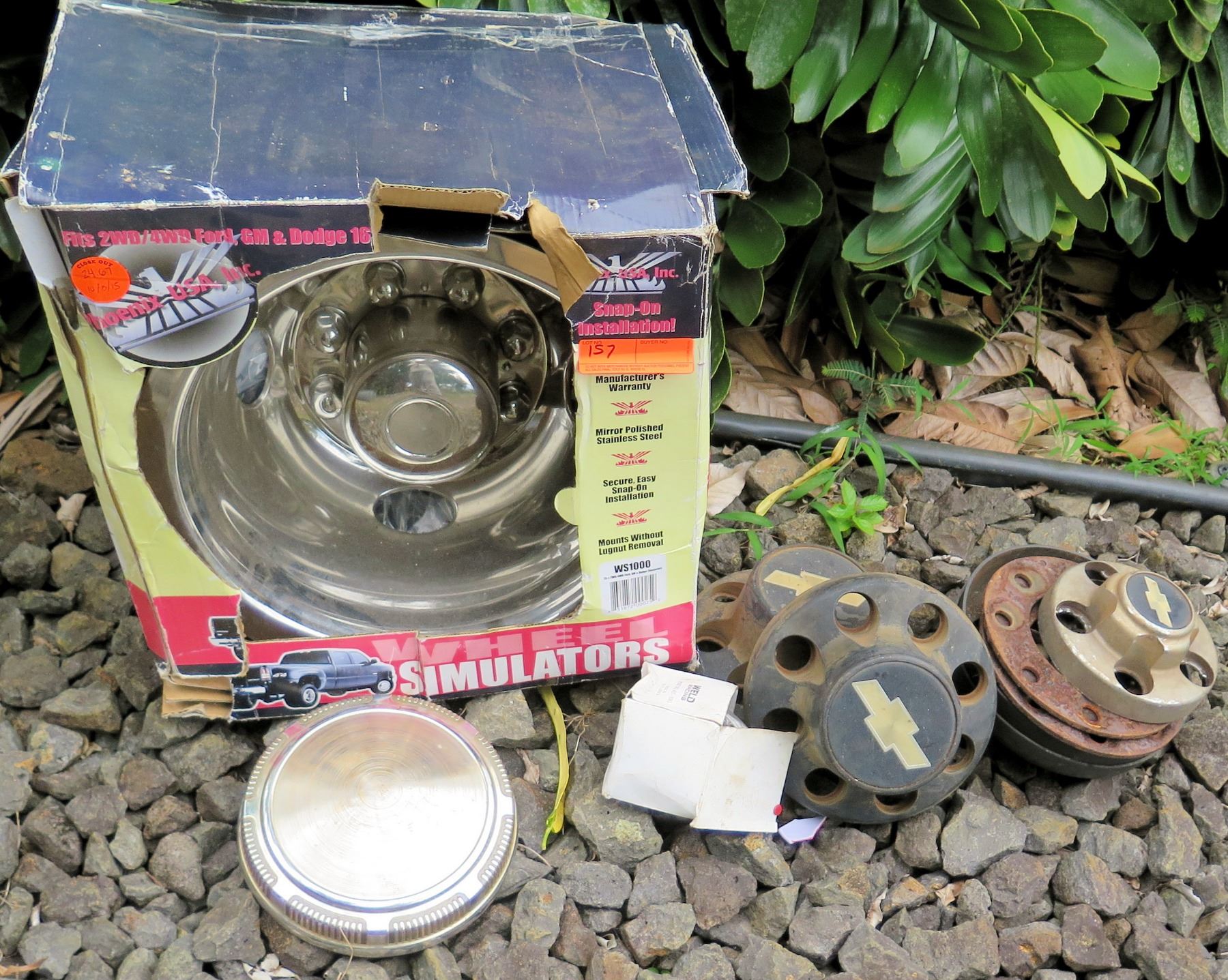 2 Dodge Dually 16” rear wheel covers chrome 2 Chevy Dually hubcaps and spacers