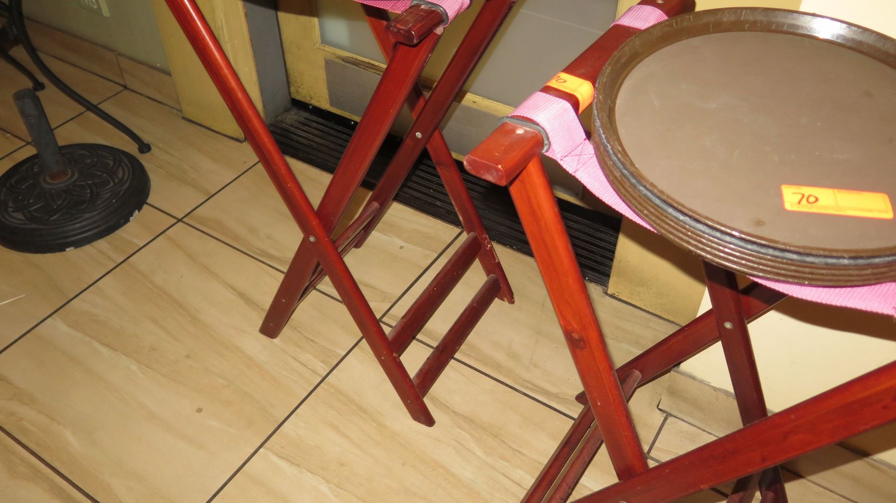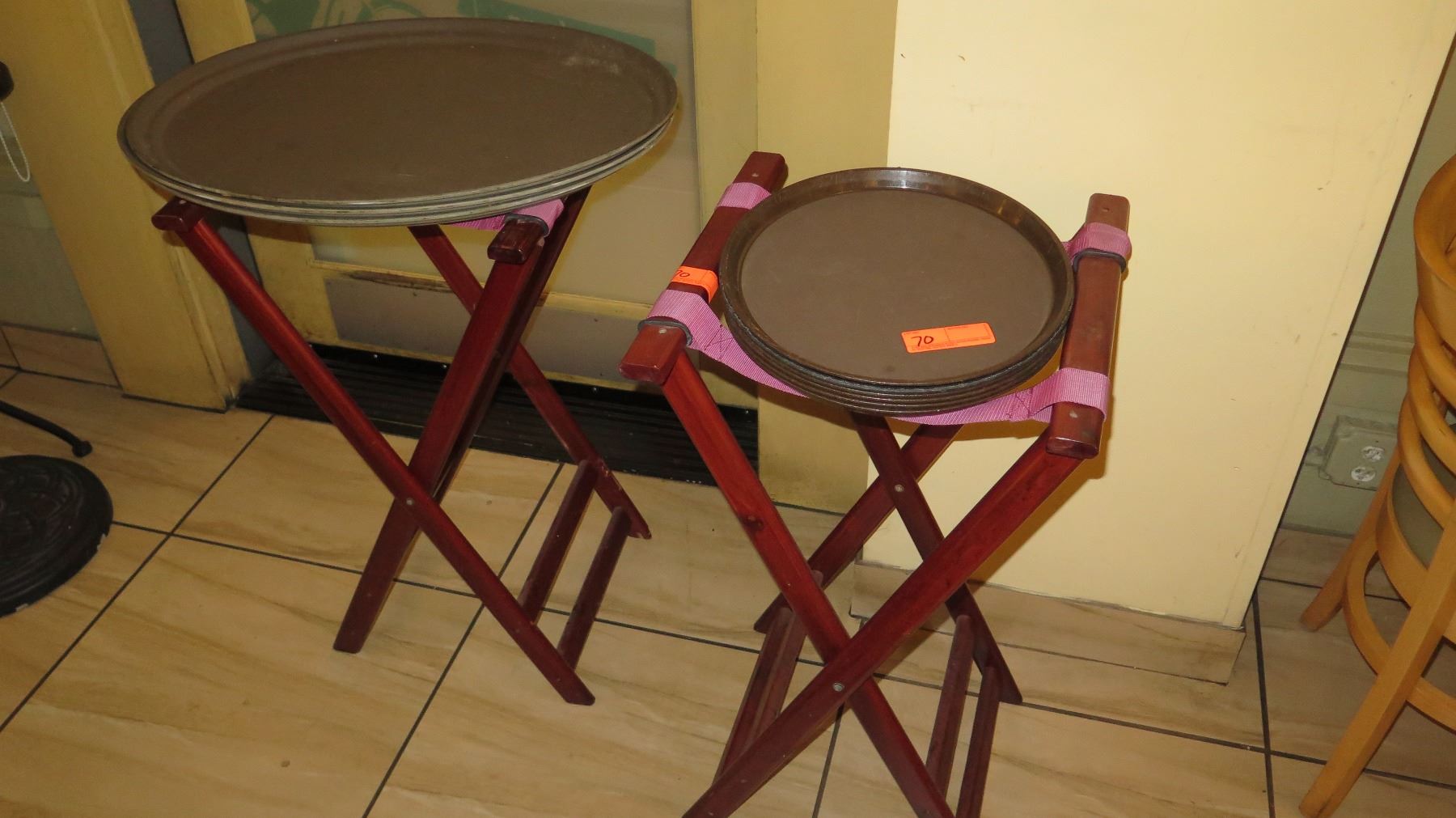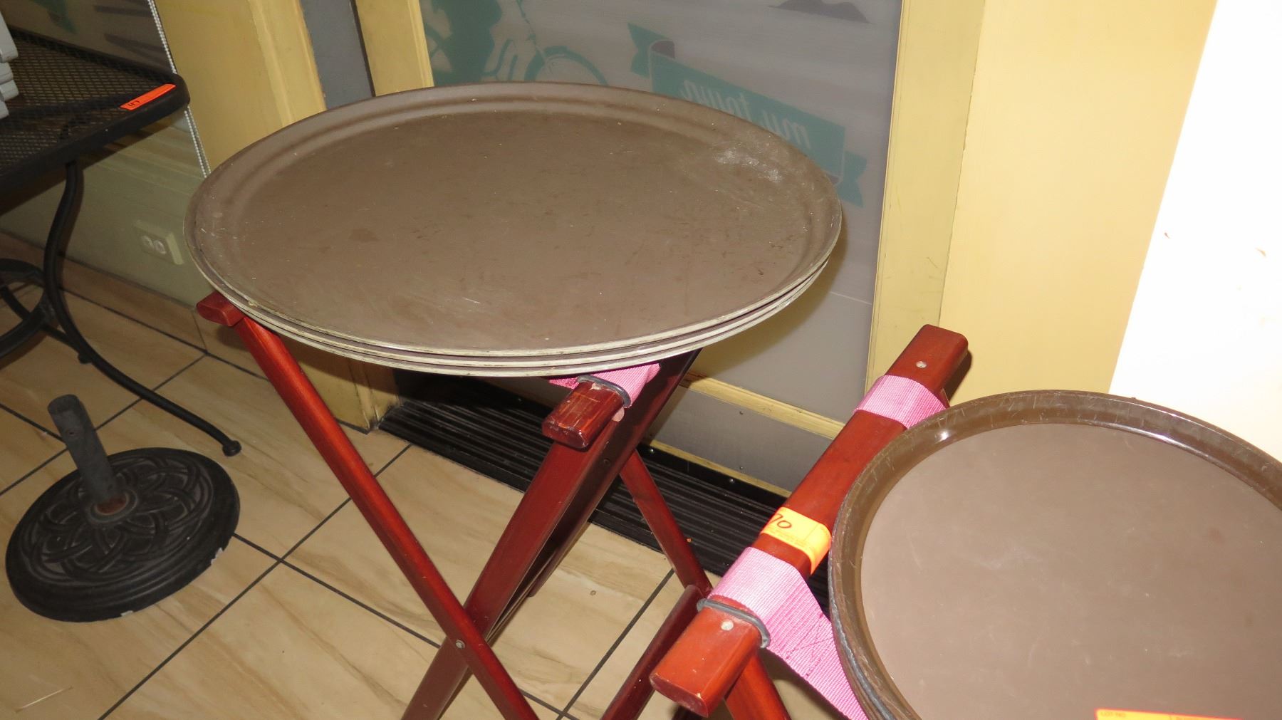 2 Folding Tray Stands, 3 Large Oval Serving Trays, 6 Small Round Trays,