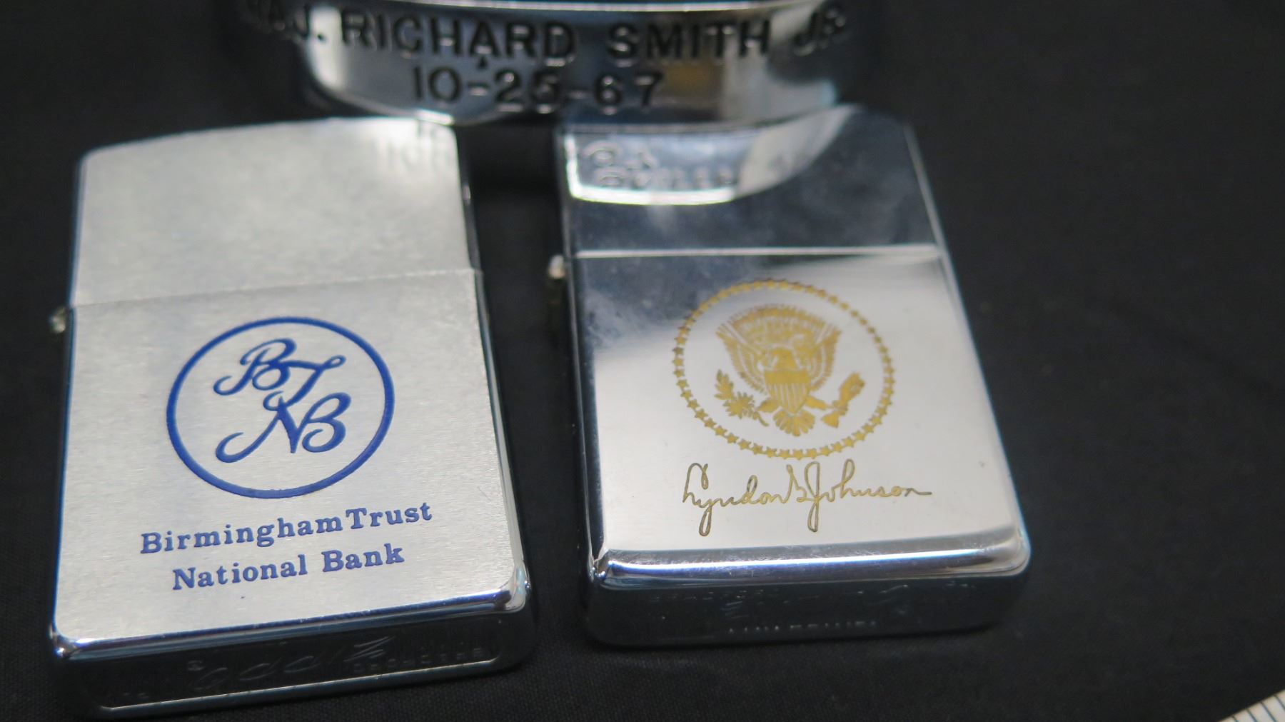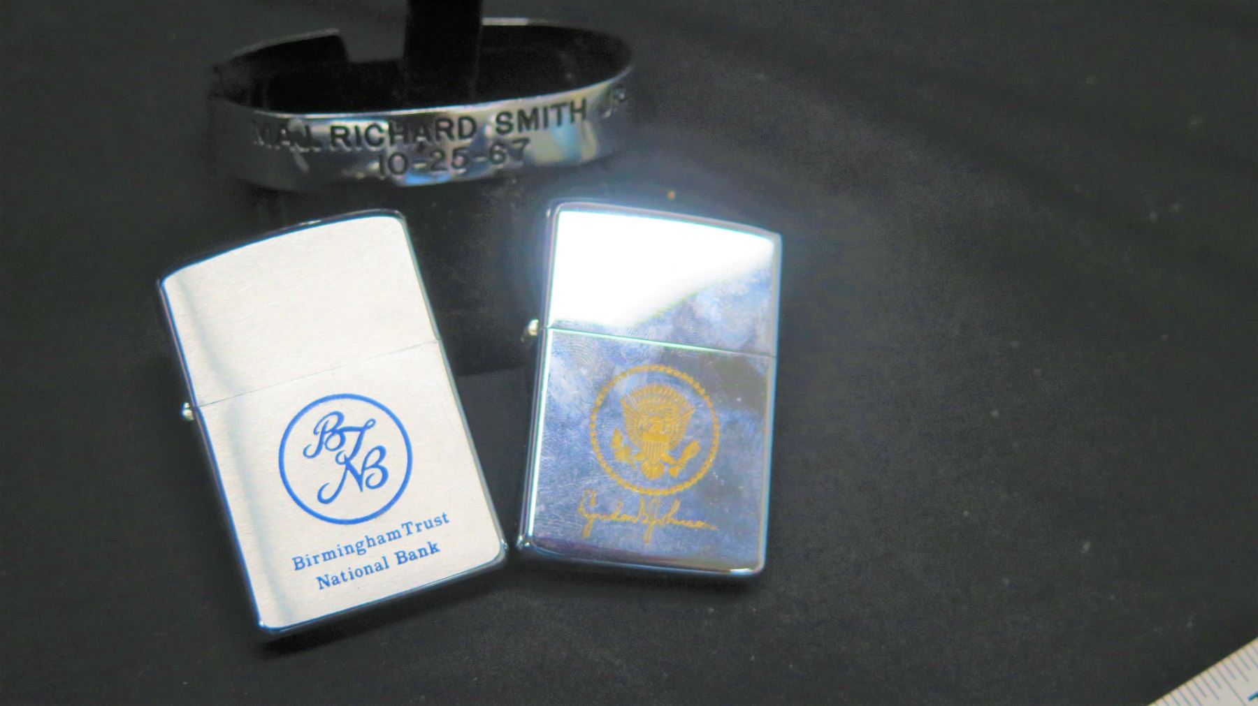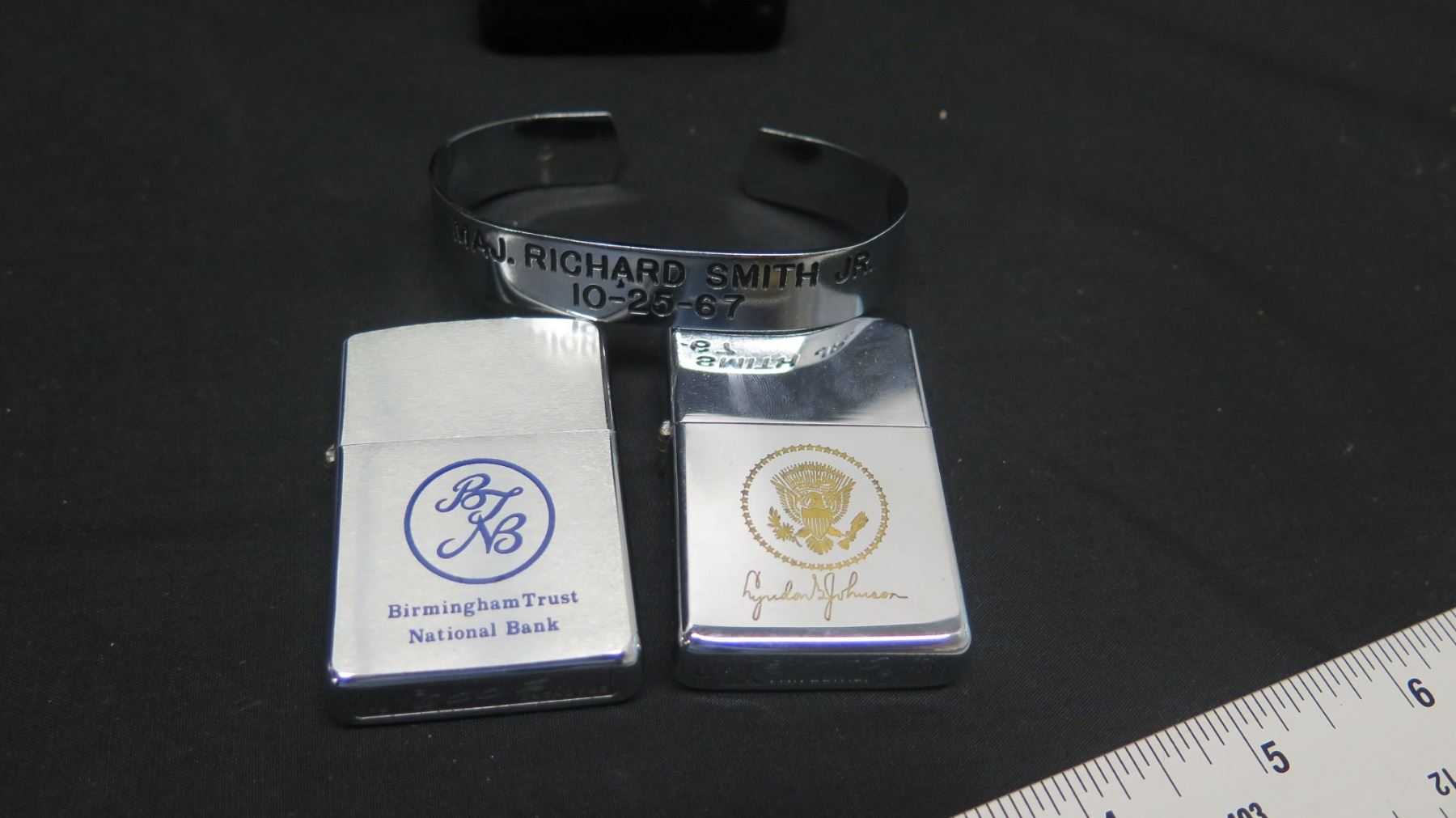 2 Lighters (one engraved "Lyndon Johnson", one engraved "Jim Nabors", 1 Bracelet