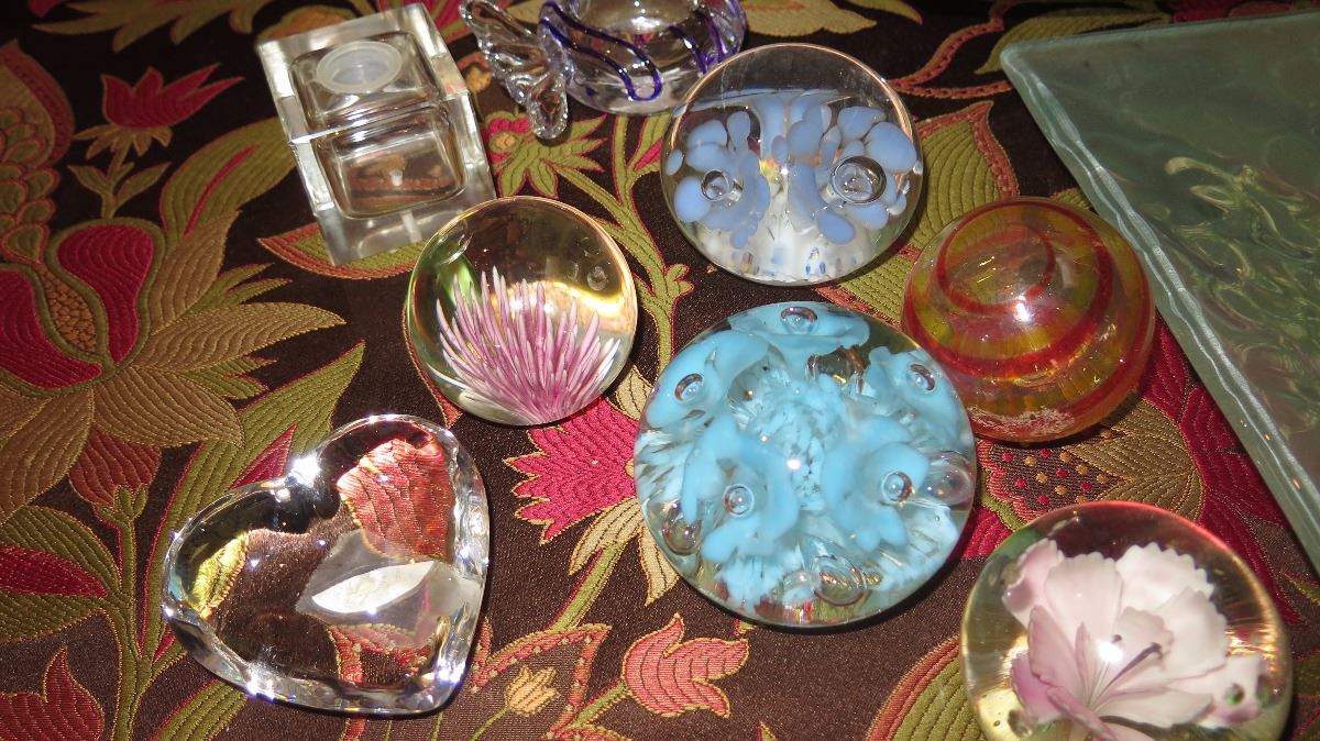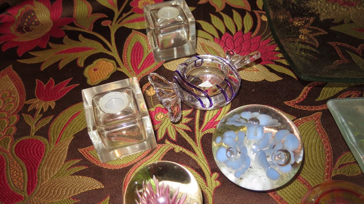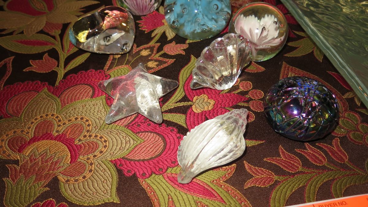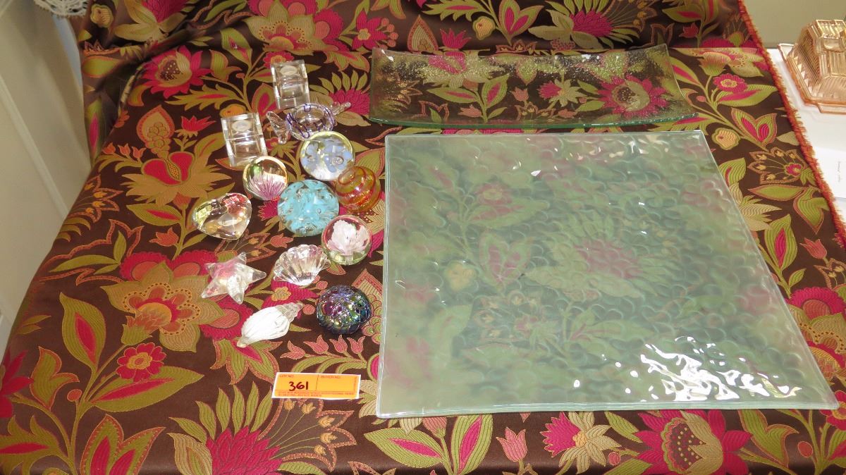 2 Lrg Glass Server Trays, Collection of Misc. Glass Shells, Globes, Orbs