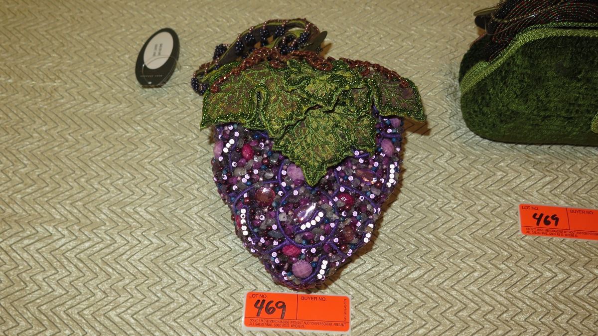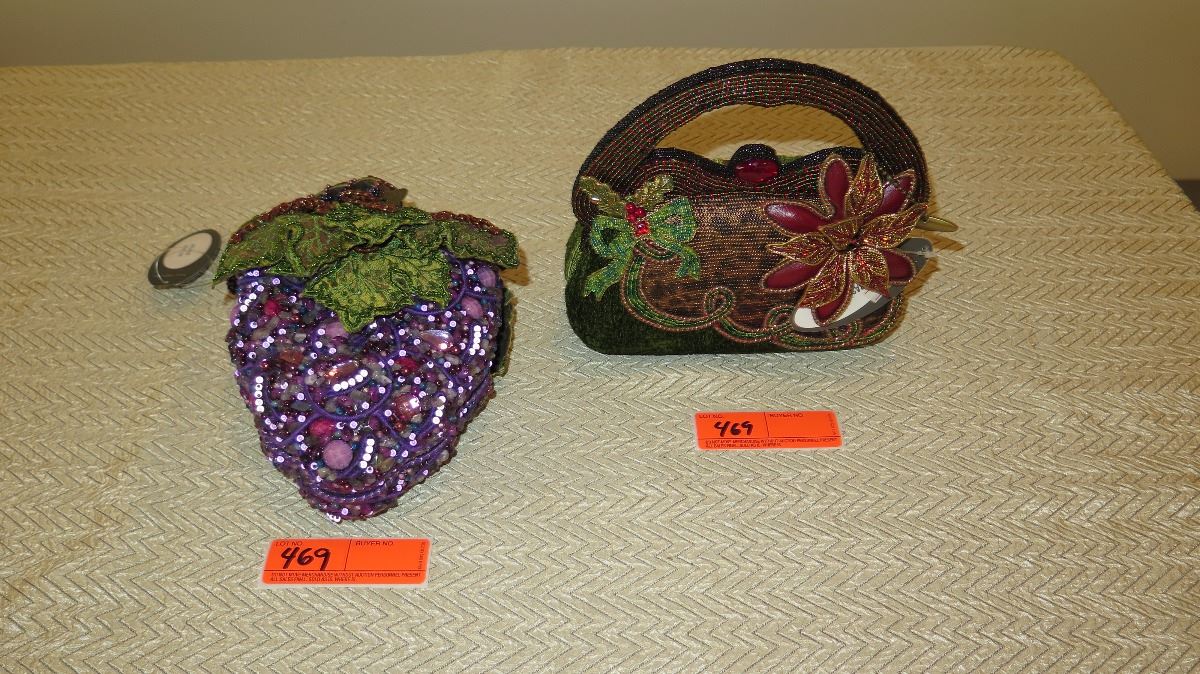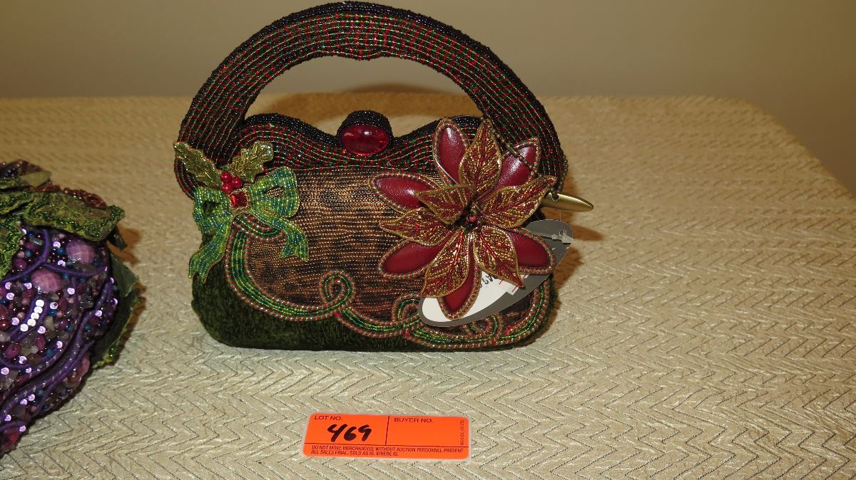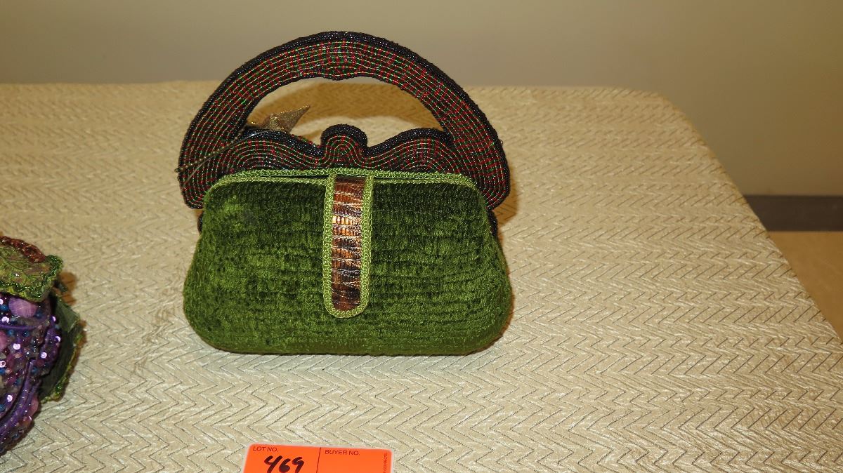 2 New Mary Frances Bags: Sequined, Jeweled "Grapevine", Green Chenille w/Beaded Half-Moon Handle