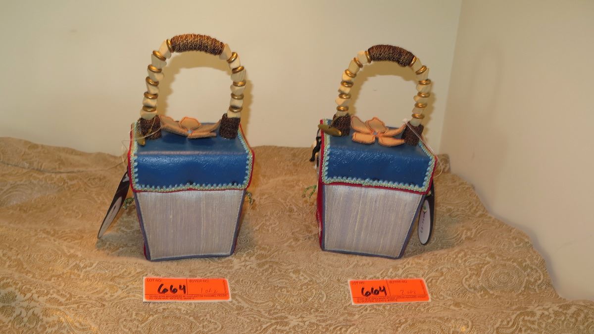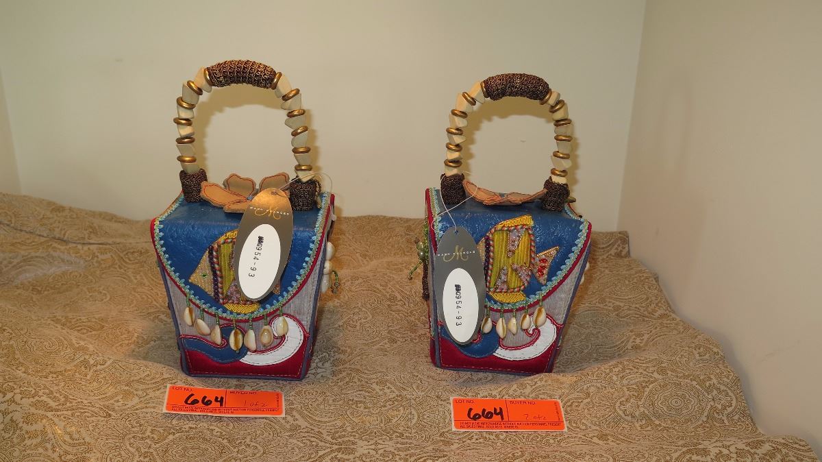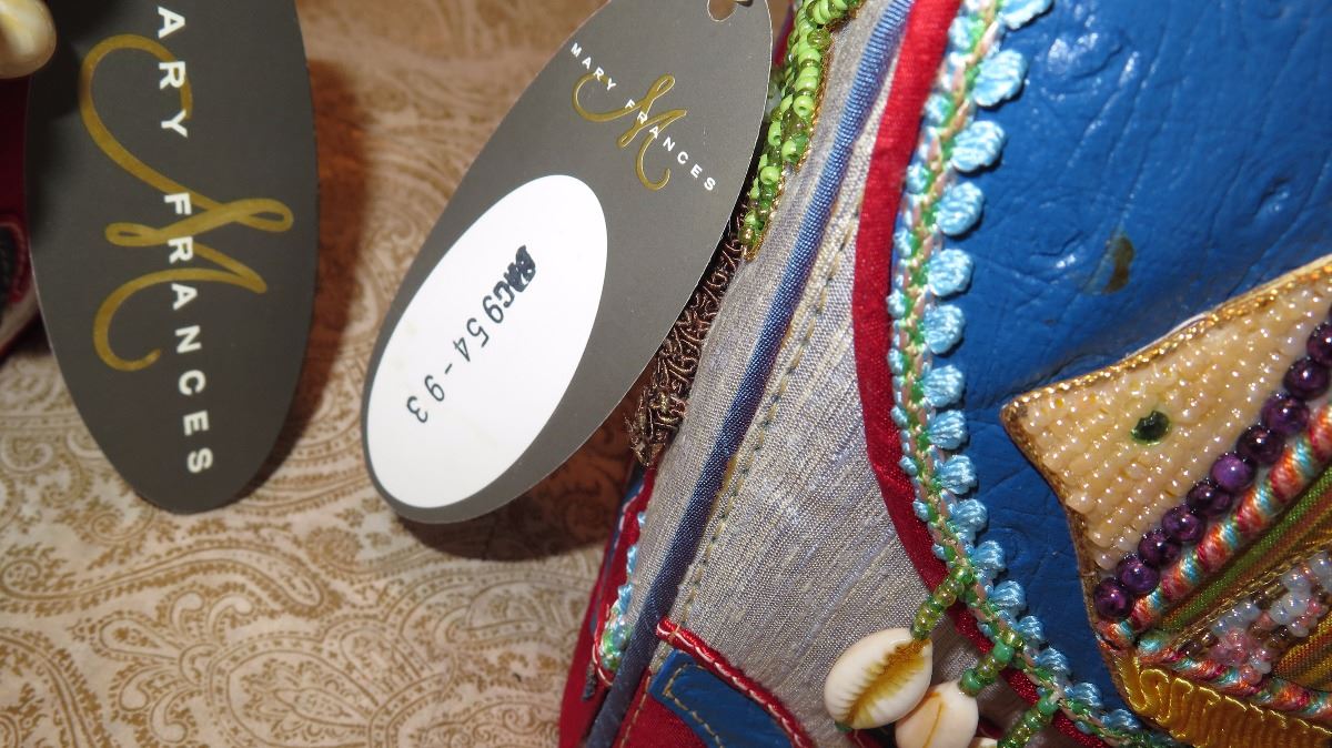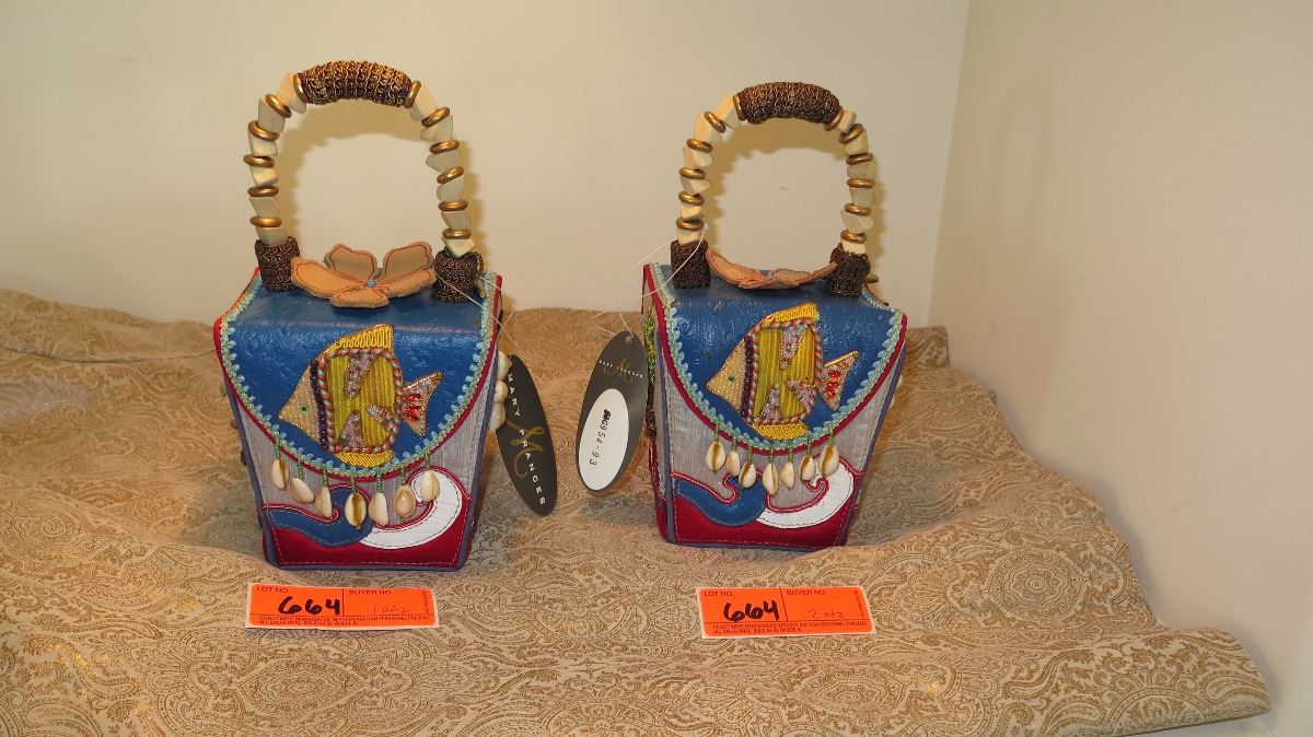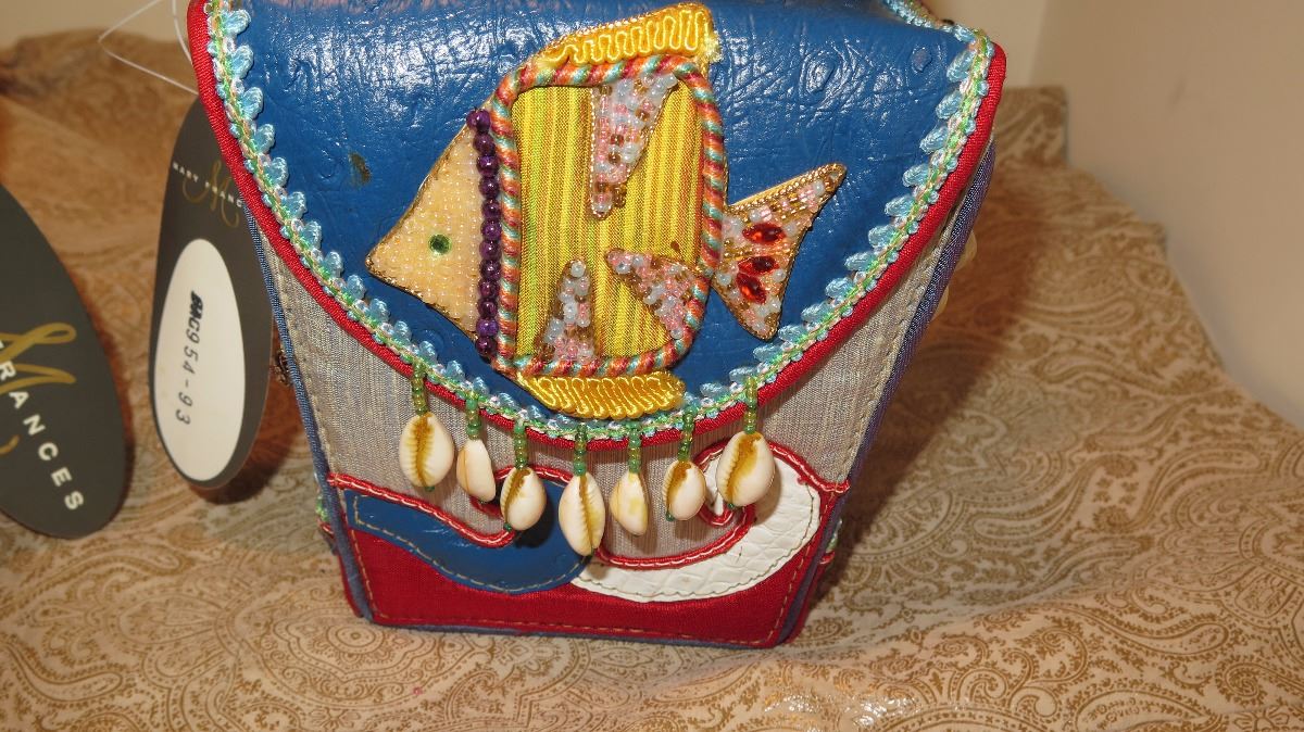 2 New Mary Frances Beaded Bags: Blue/Red Tropical Fish, Waves Take-Out-Box Style