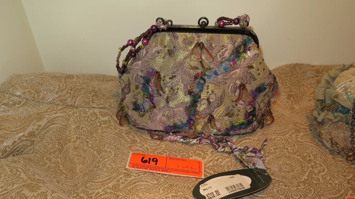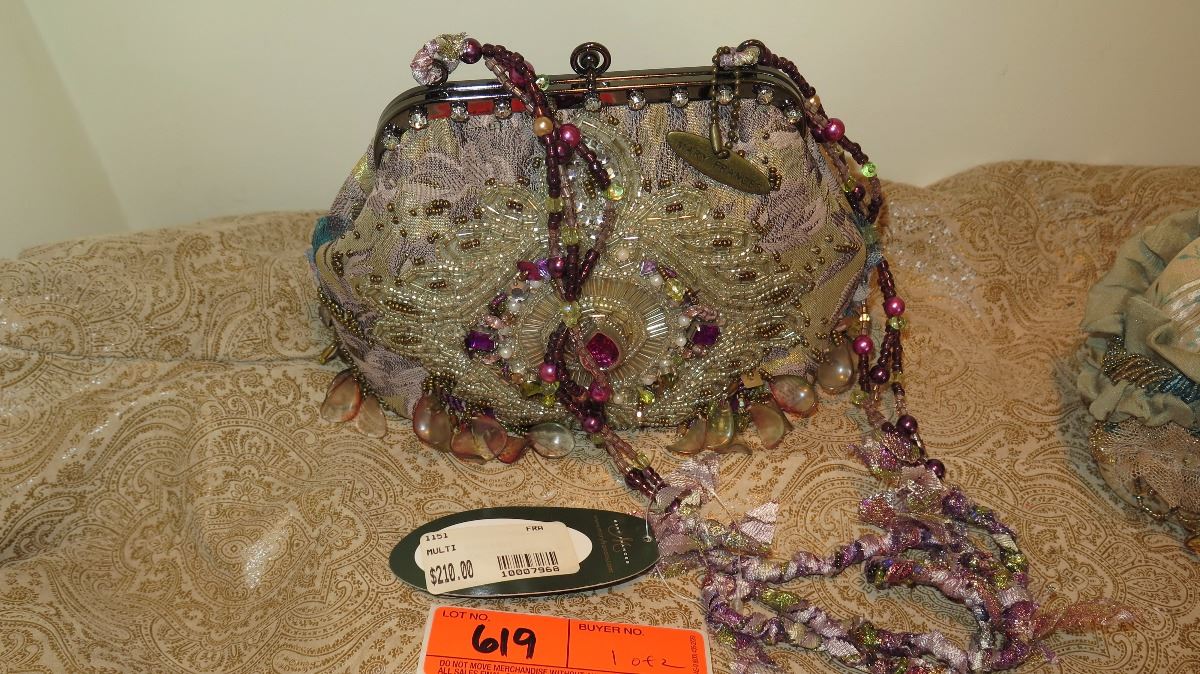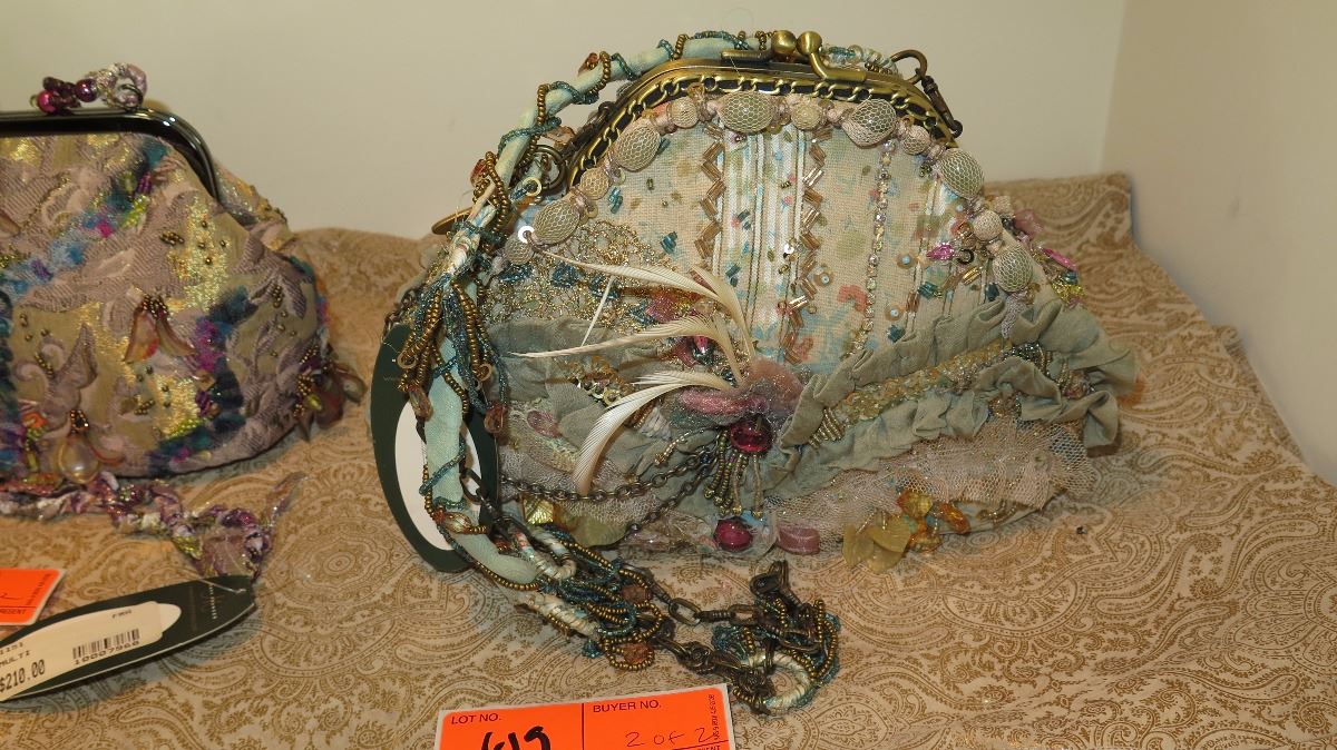 2 New Mary Frances Beaded Bags: Dusky Blue "Heirloom" and Gold Brocade Fabric