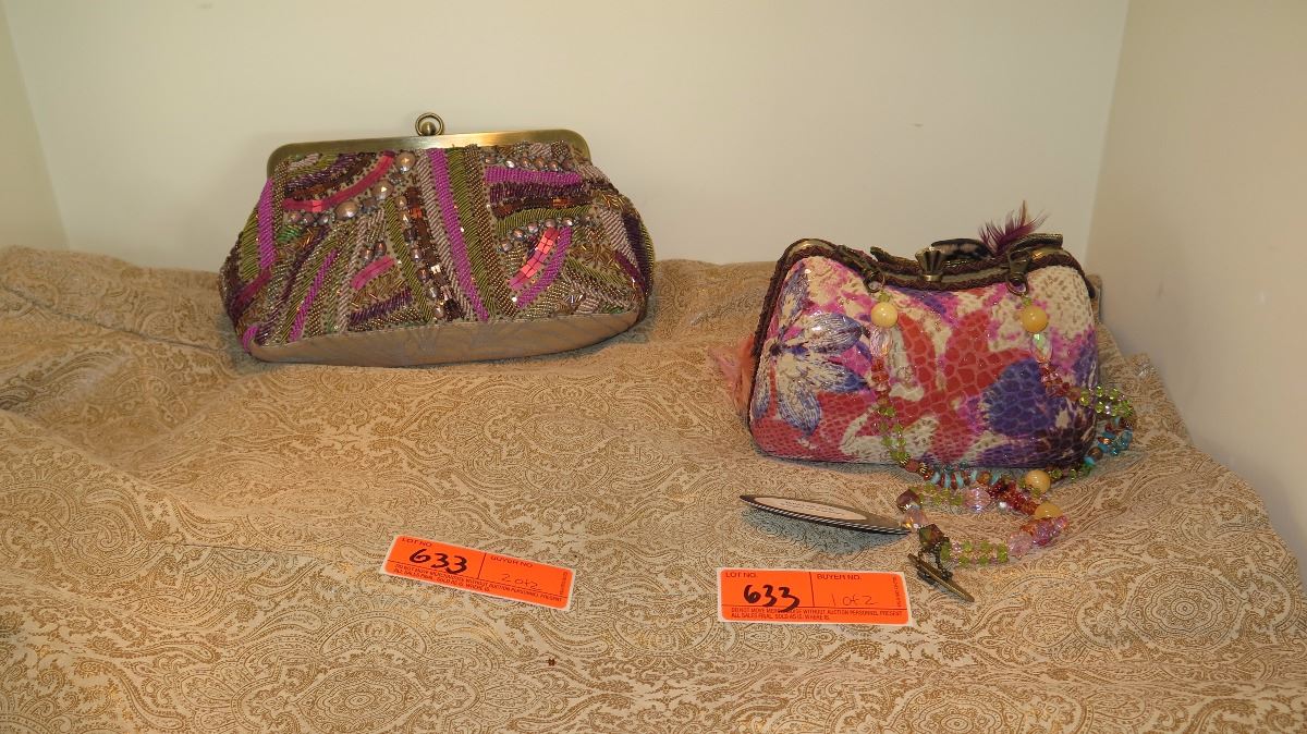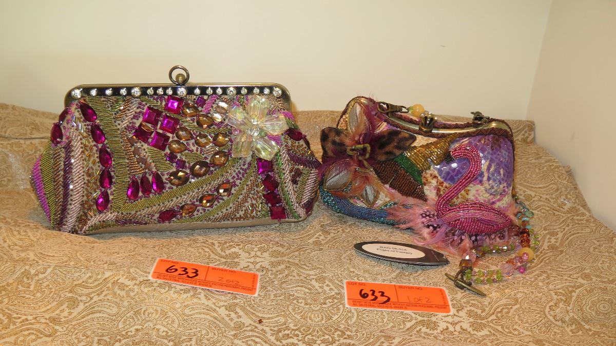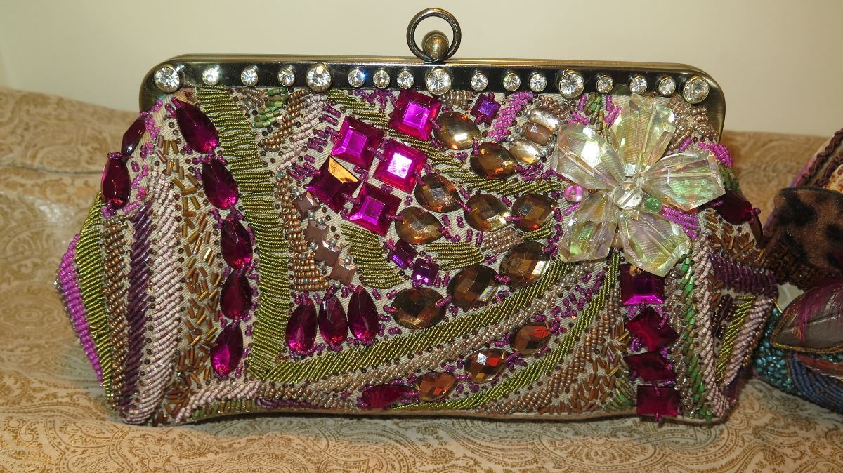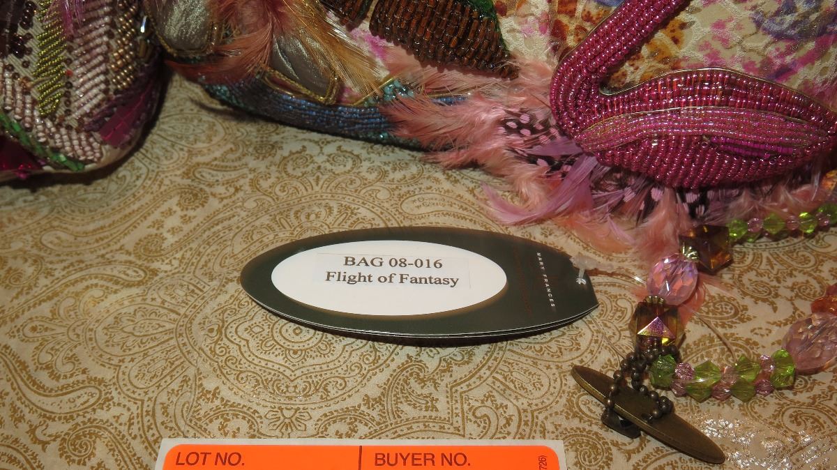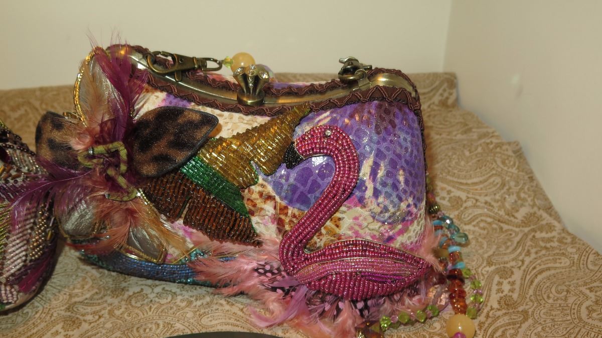 2 New Mary Frances Beaded Bags: "Flight of Fantasy" Flamingo and Jewel-Toned Clutch