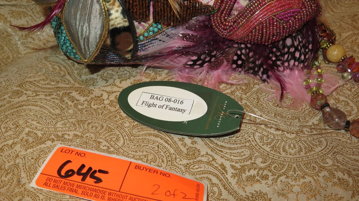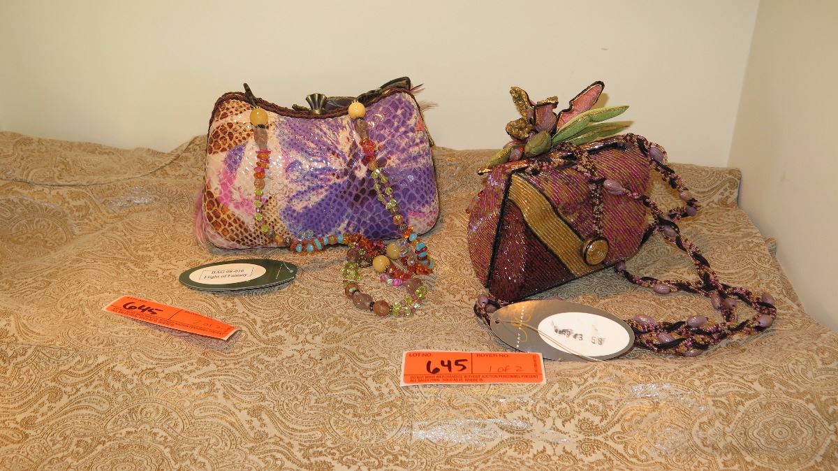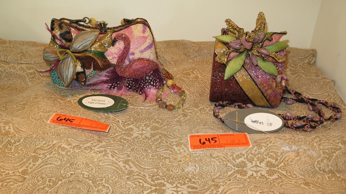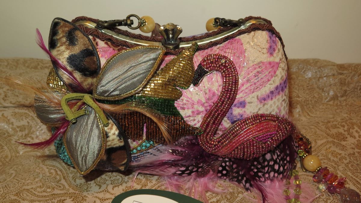 2 New Mary Frances Beaded Bags: "Flight of Fantasy" Flamingo and Tropical Motif
