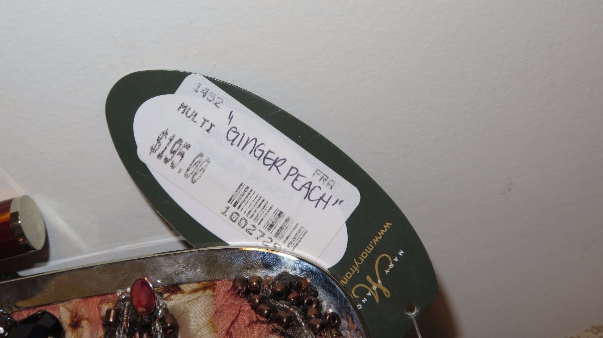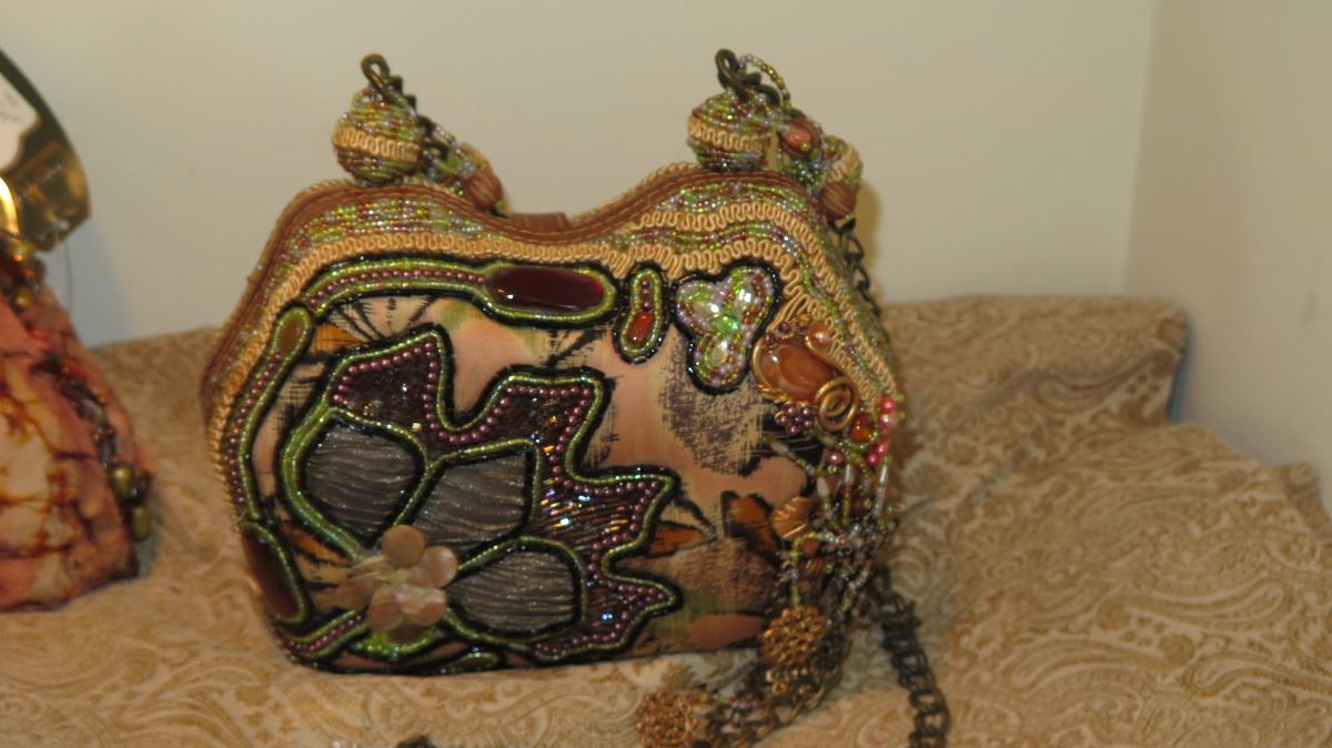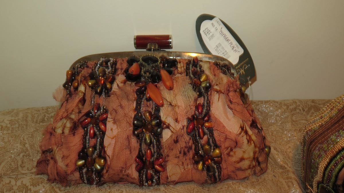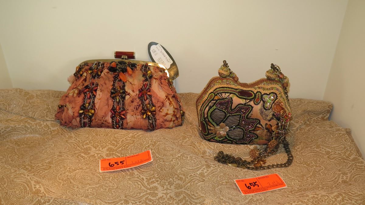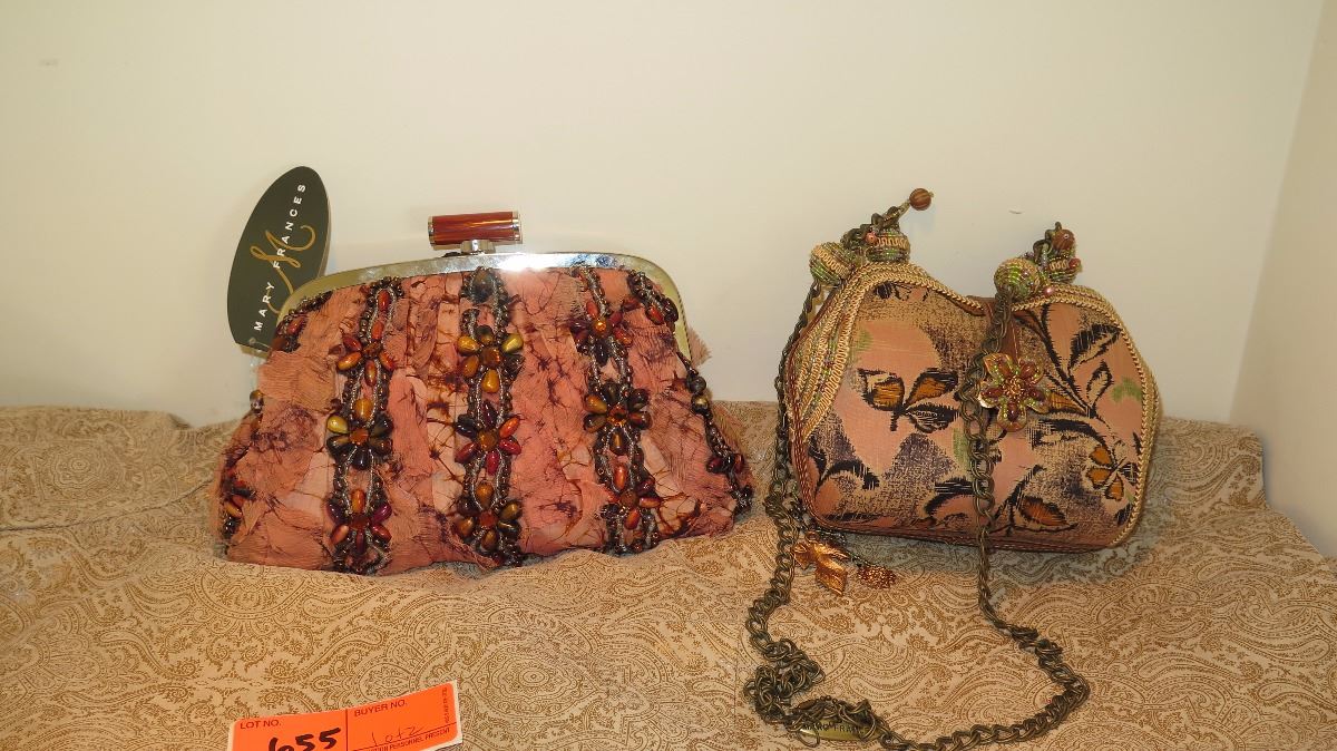 2 New Mary Frances Beaded Bags: "Ginger Peach" Chiffon and Leaf-Print Peach Satin