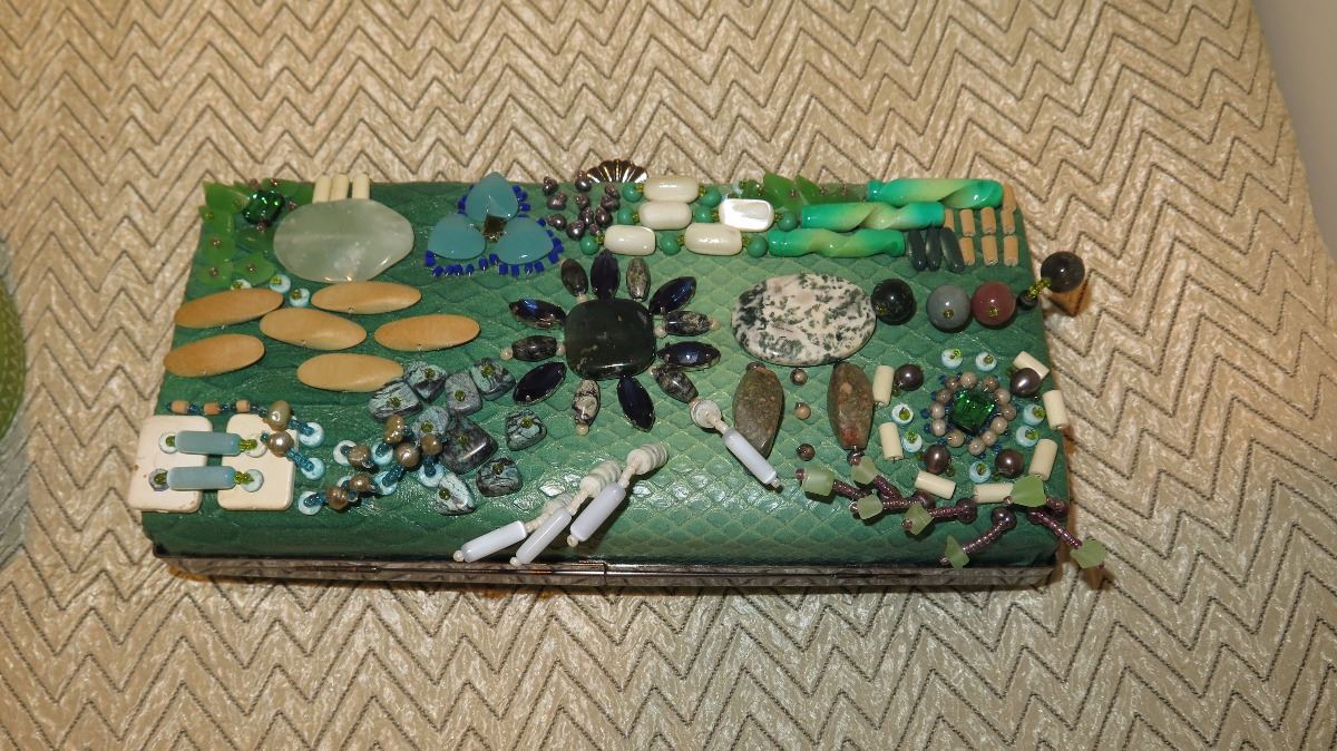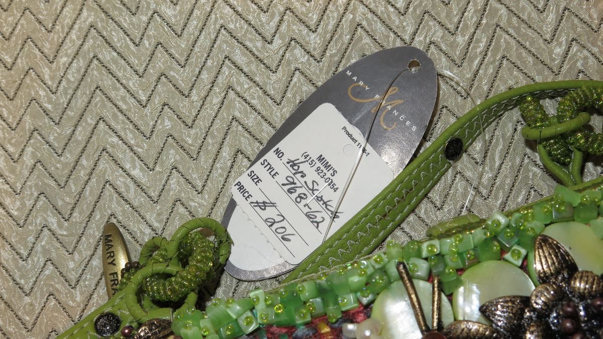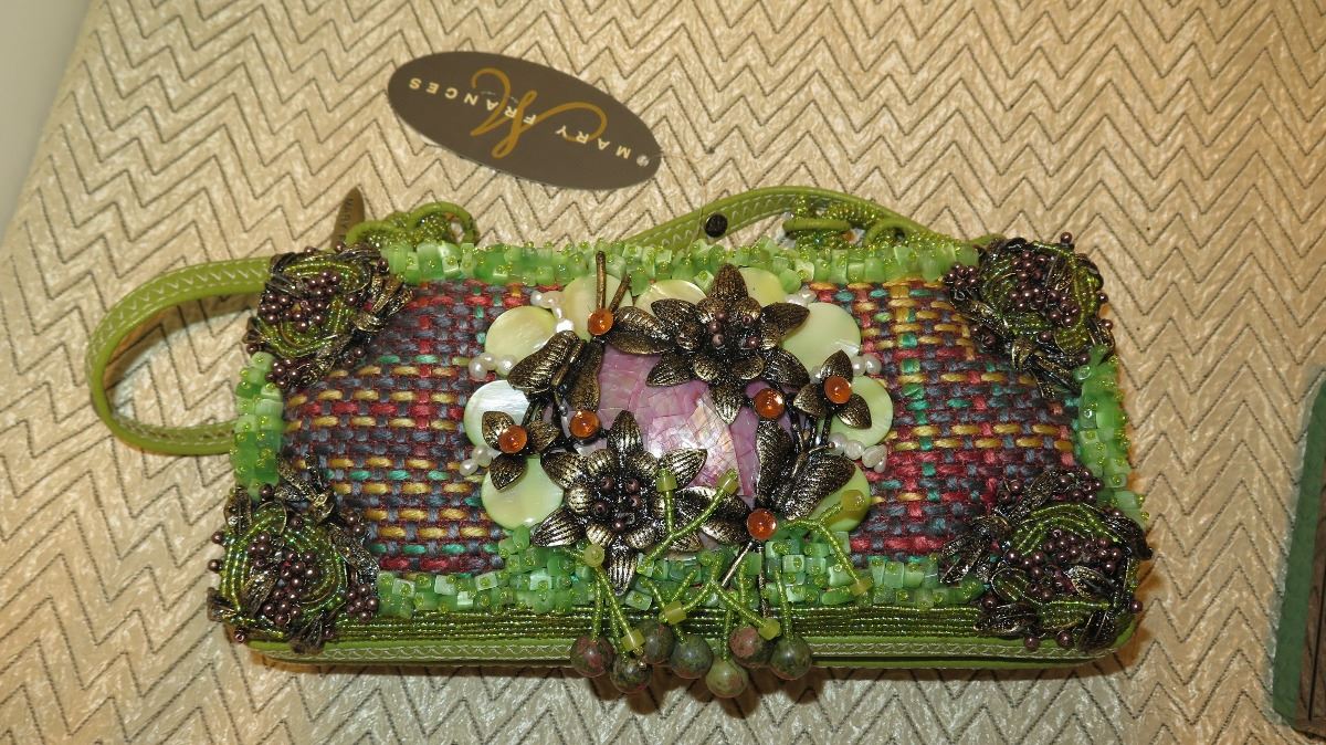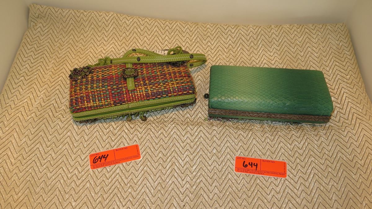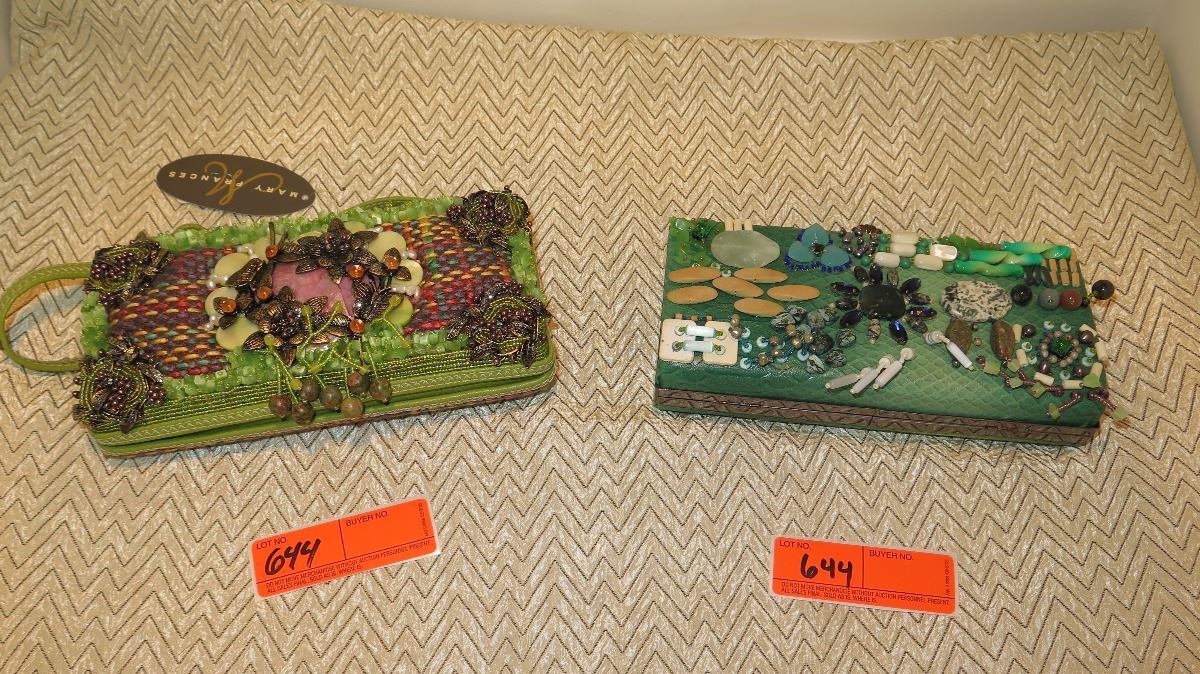 2 New Mary Frances Beaded Bags: Green Weave Pattern and Green Faux Leather