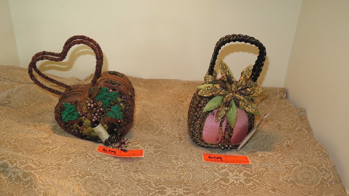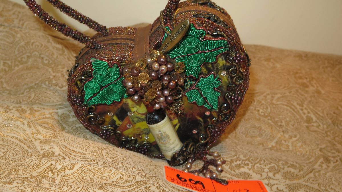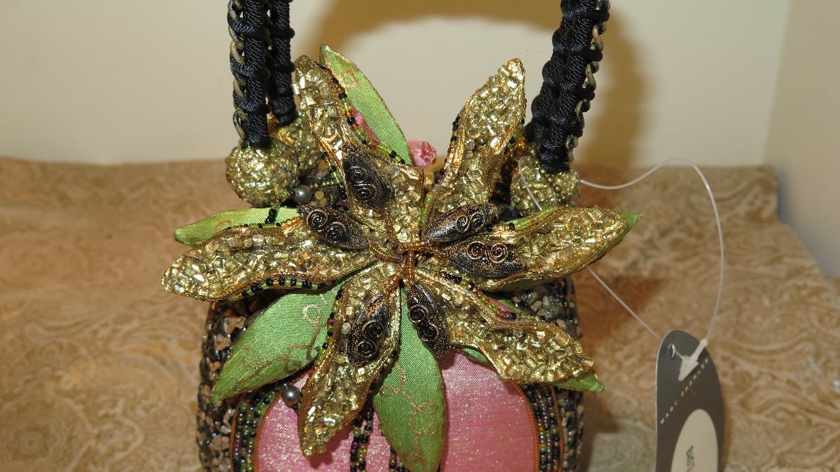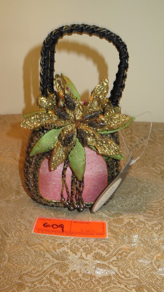 2 New Mary Frances Beaded Bags: Heart Shaped and Pink w/Green & Gold Flower