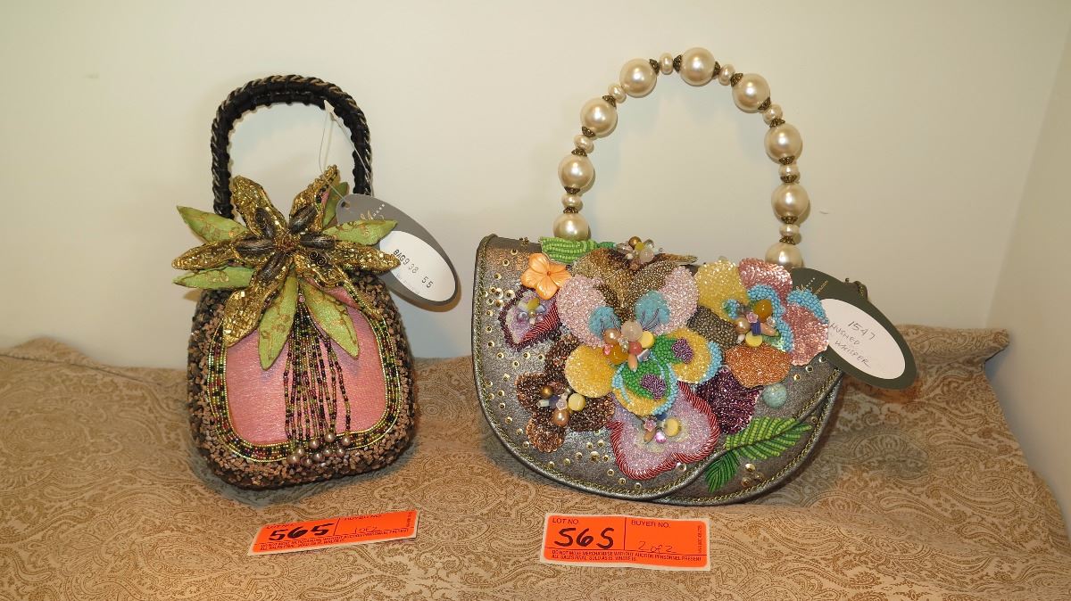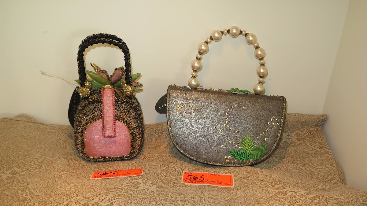 2 New Mary Frances Beaded Bags: "Hushed Whisper" w/Pearled Handle, Pink Bag