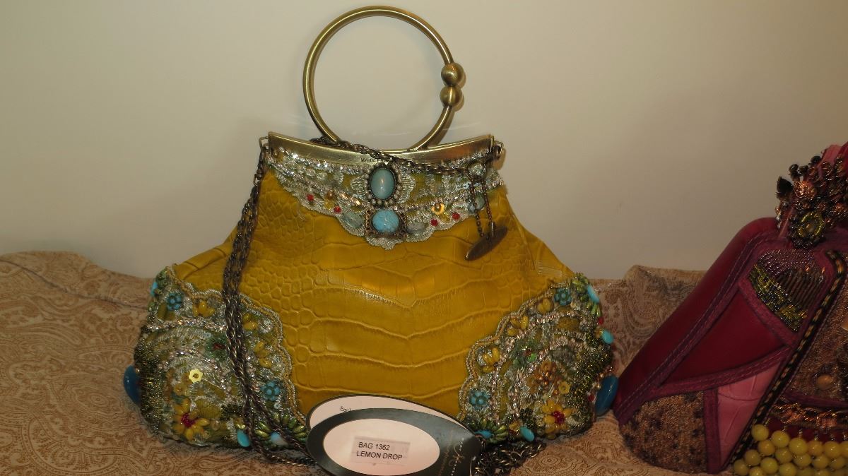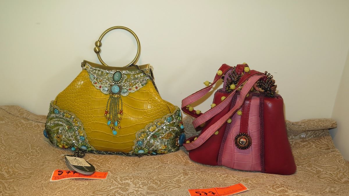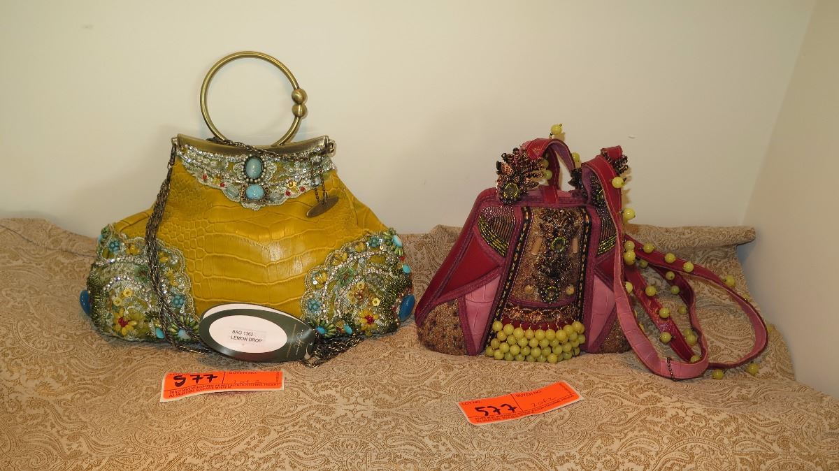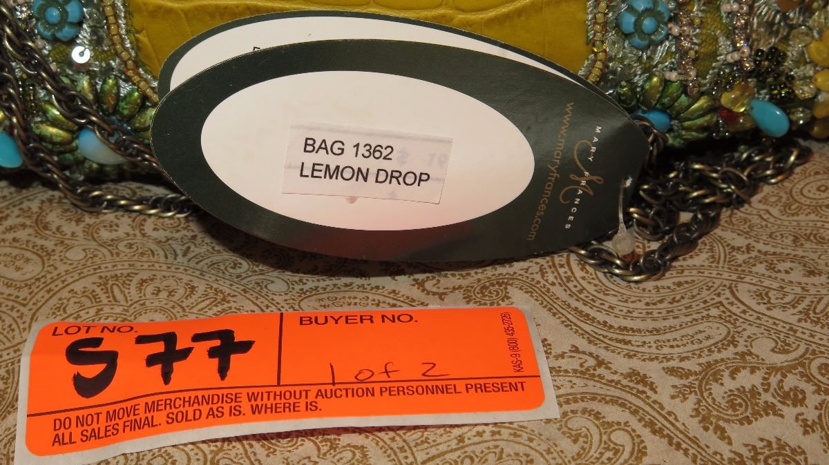 2 New Mary Frances Beaded Bags: "Lemon Drop" and Pink/Red Patent Leather