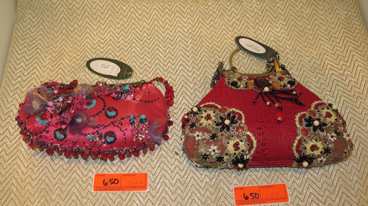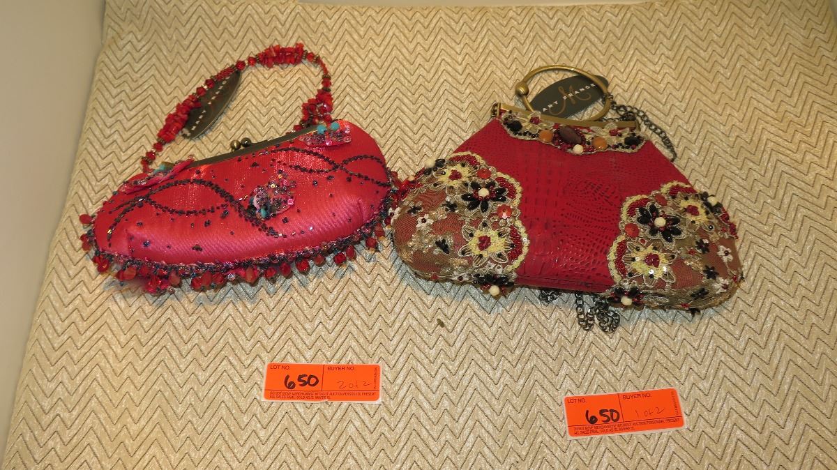 2 New Mary Frances Beaded Bags: Luminescent Pink/Red "Flambe" and "Cherry Cupcake"