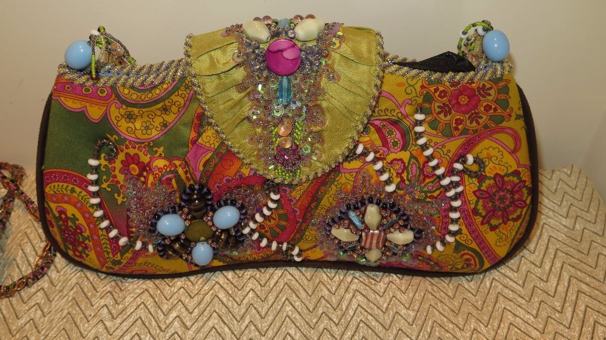 2 New Mary Frances Beaded Bags: Paisley "Uppsey Daisy" and Flamingo Purse