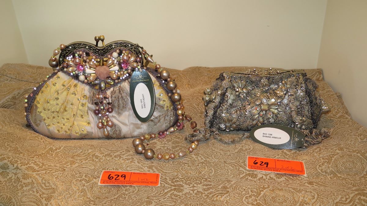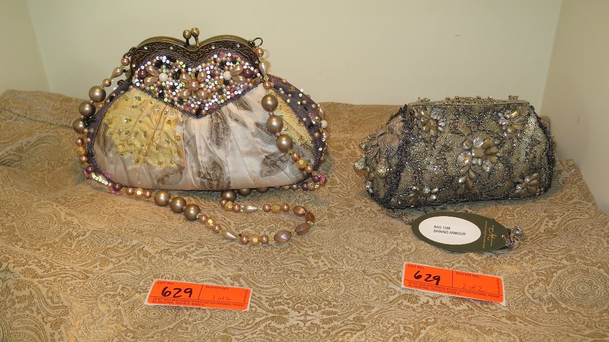 2 New Mary Frances Beaded Bags: "Sweetheart" Silk Pouch and "Shining Armor"