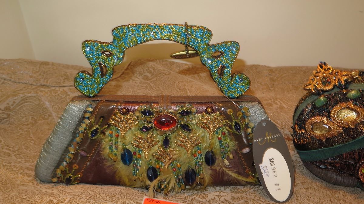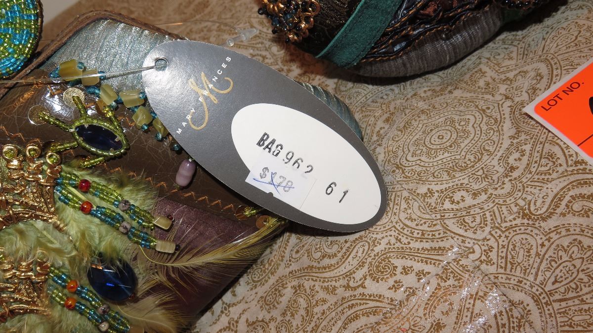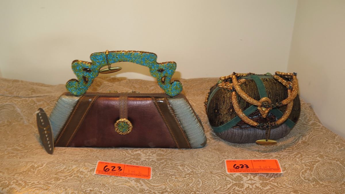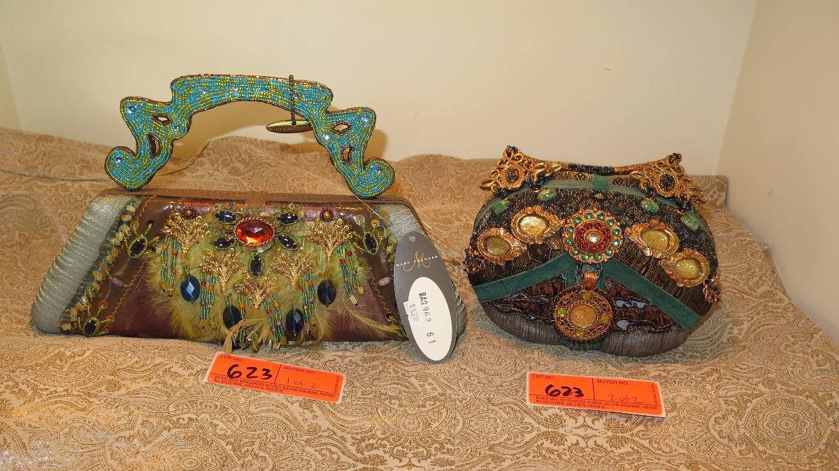 2 New Mary Frances Beaded Handbags: Faux Leather Pyramid (Slight Discoloration) and Jacquard