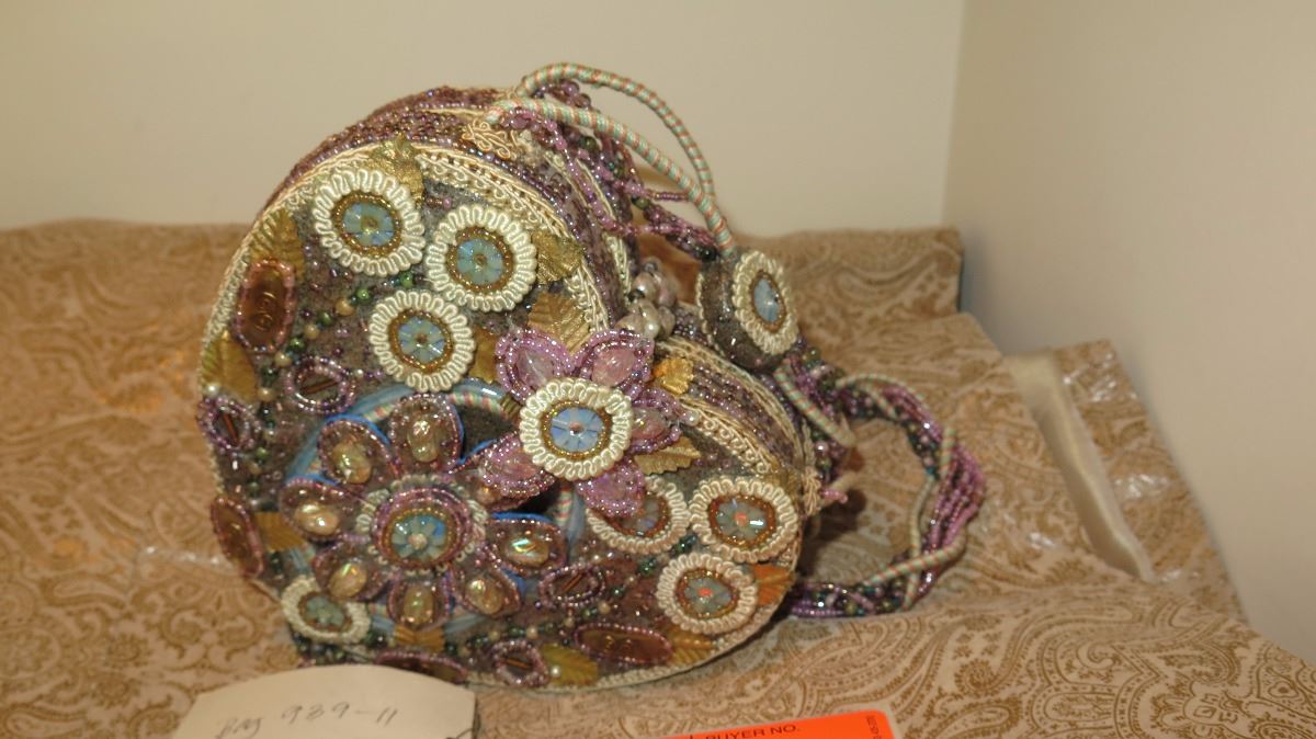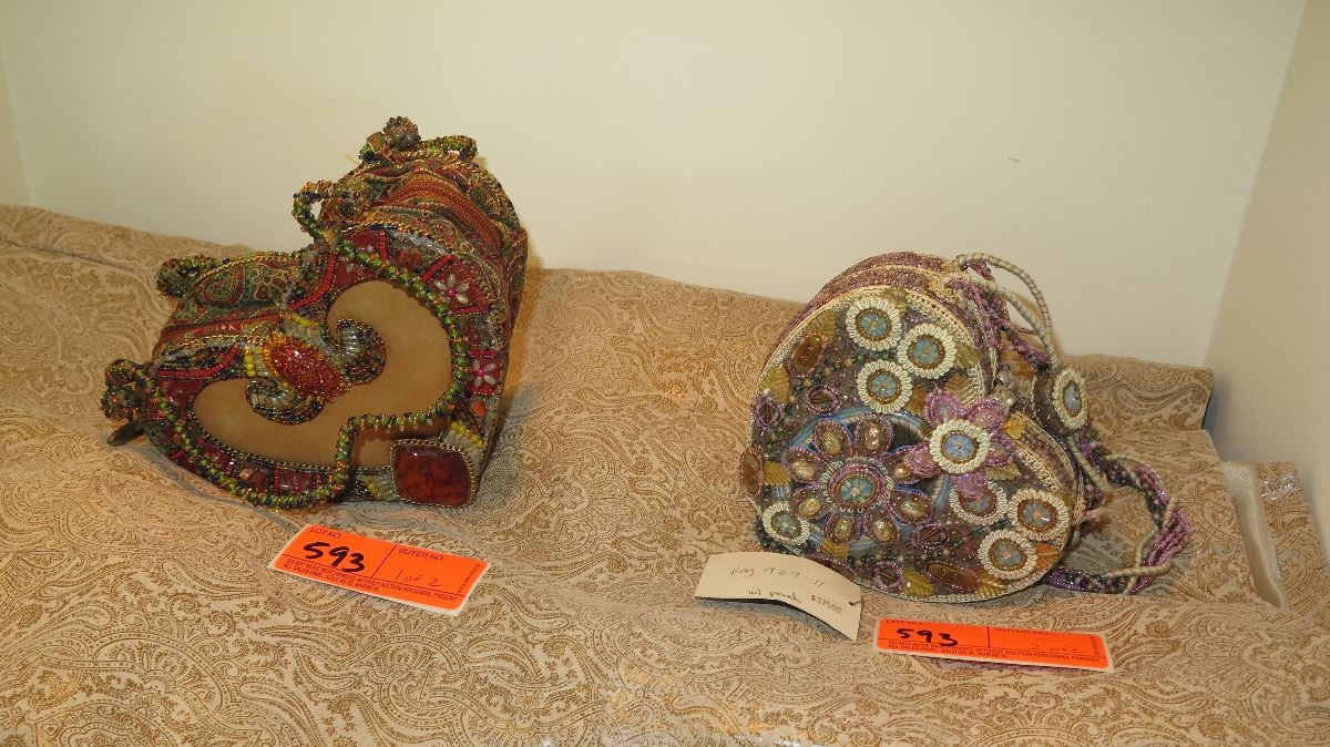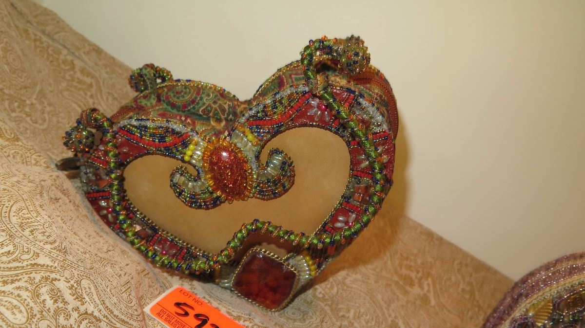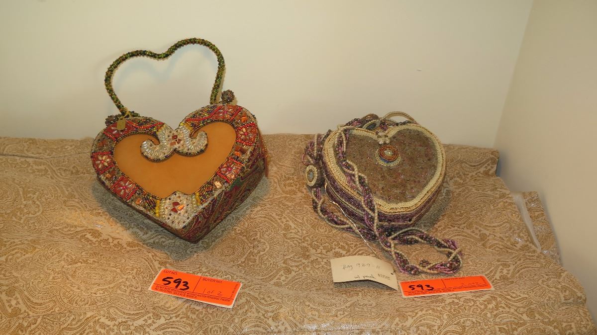 2 New Mary Frances Beaded Handbags: Heart Shaped Paisley and Heart Shaped Mauve