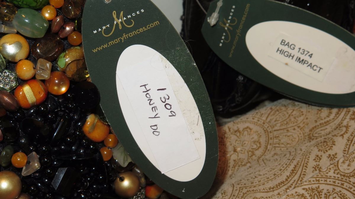 2 New Mary Frances Beaded Handbags: "Honey" and "High Impact" Gloss Black