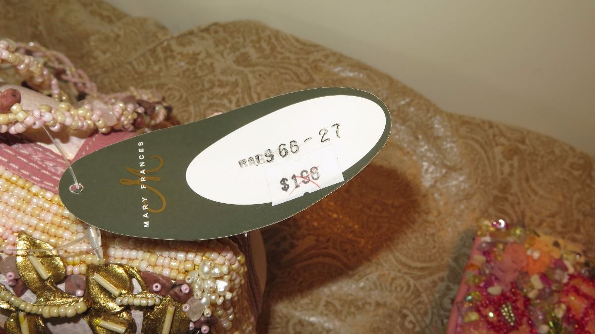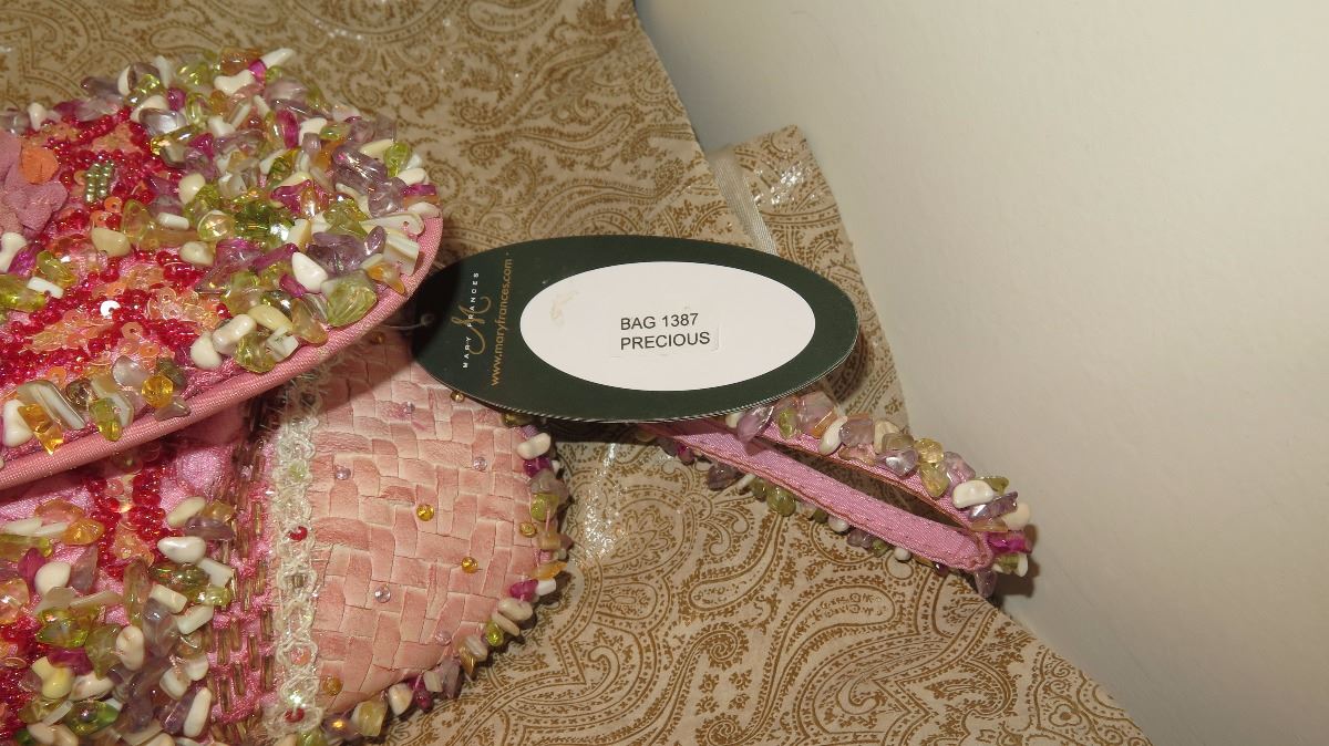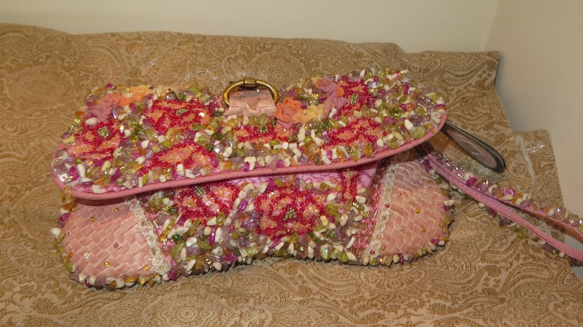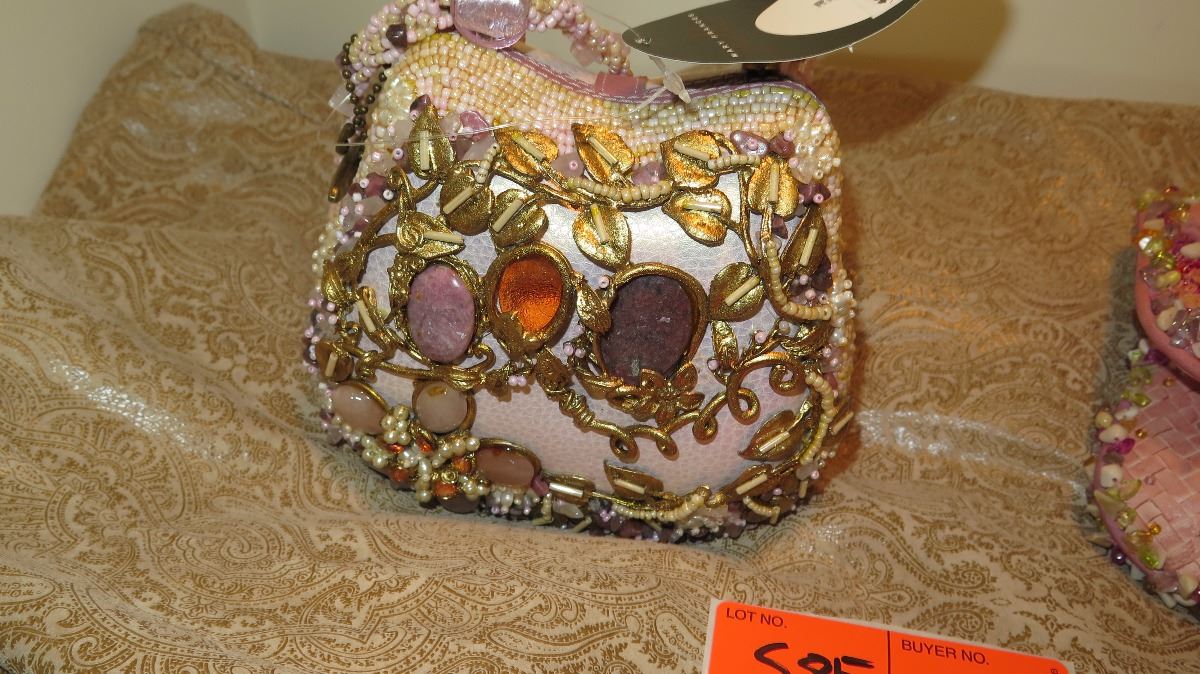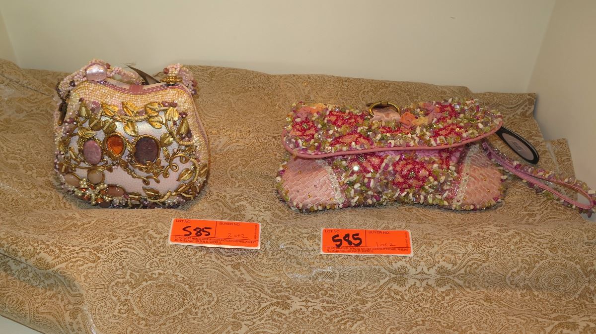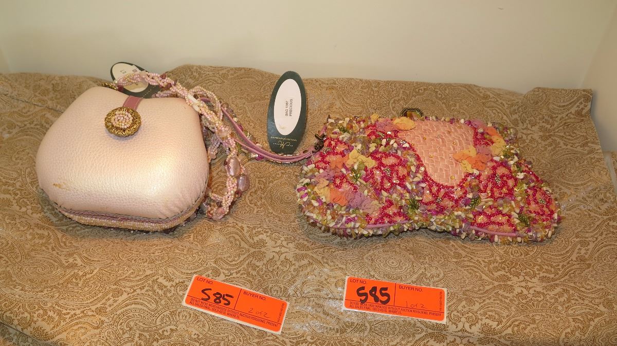 2 New Mary Frances Beaded Handbags: "Precious" Pink Envelope and Mauve (Slight Damage)