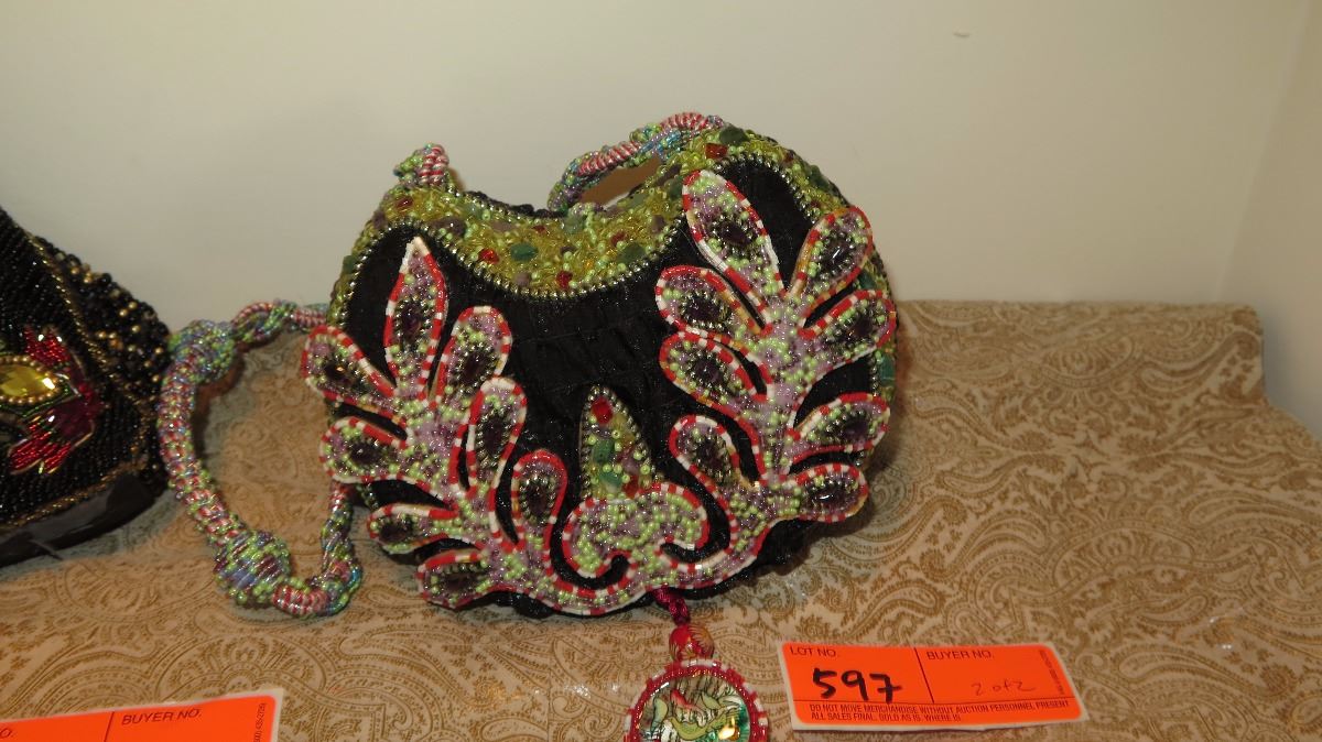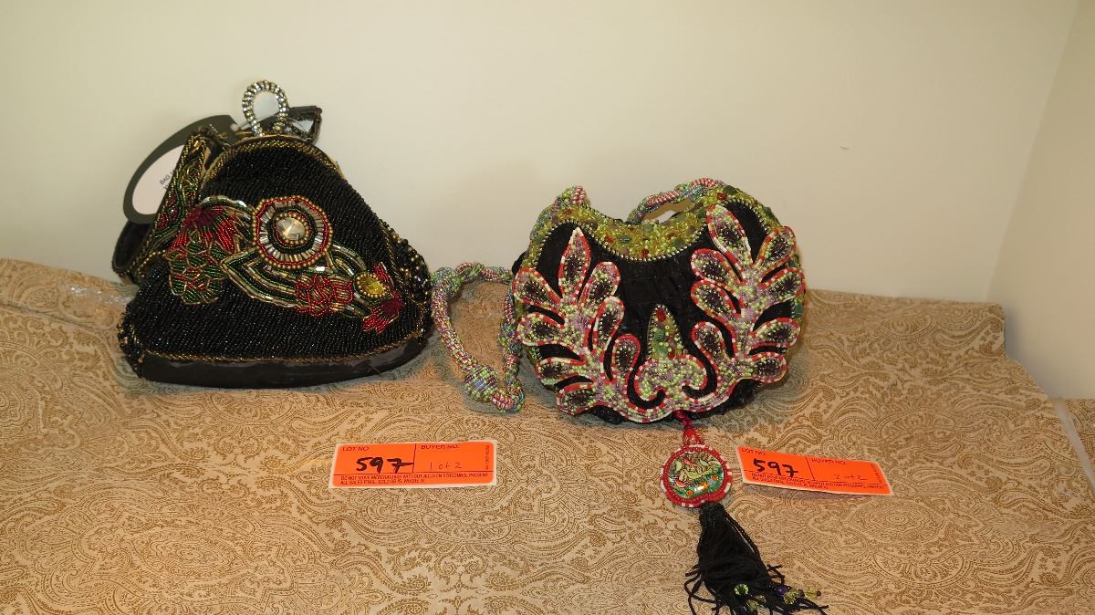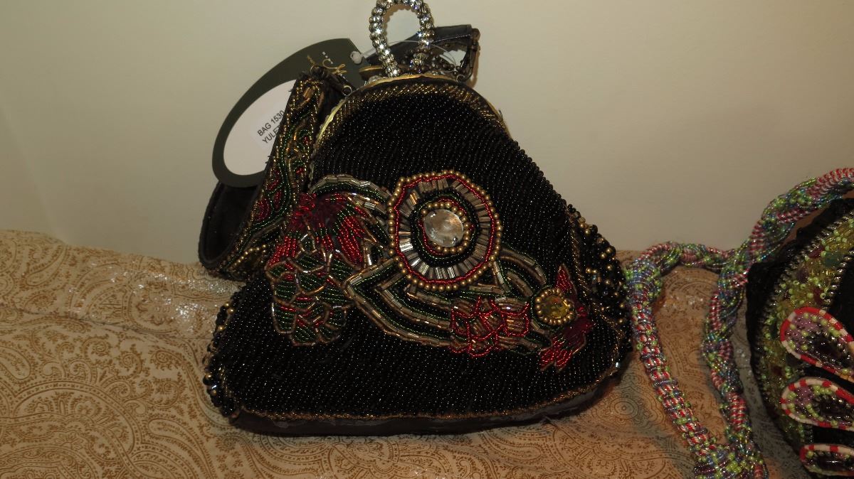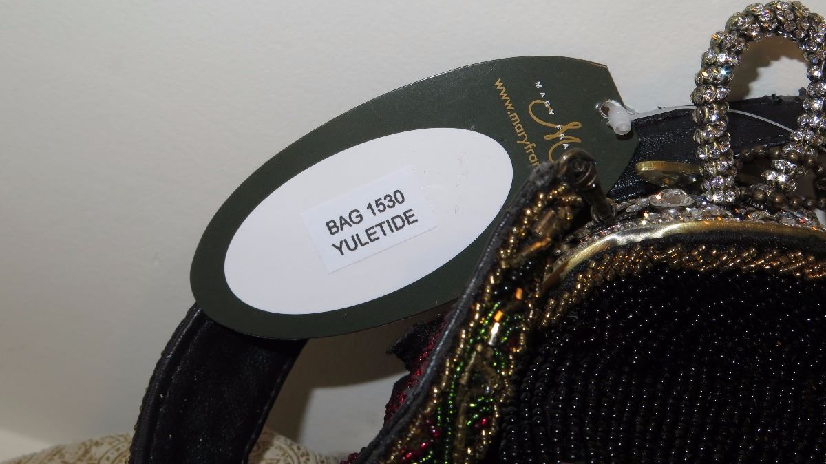 2 New Mary Frances Beaded Handbags: "Yuletide" Black Pouch and Half Moon Black Velvet