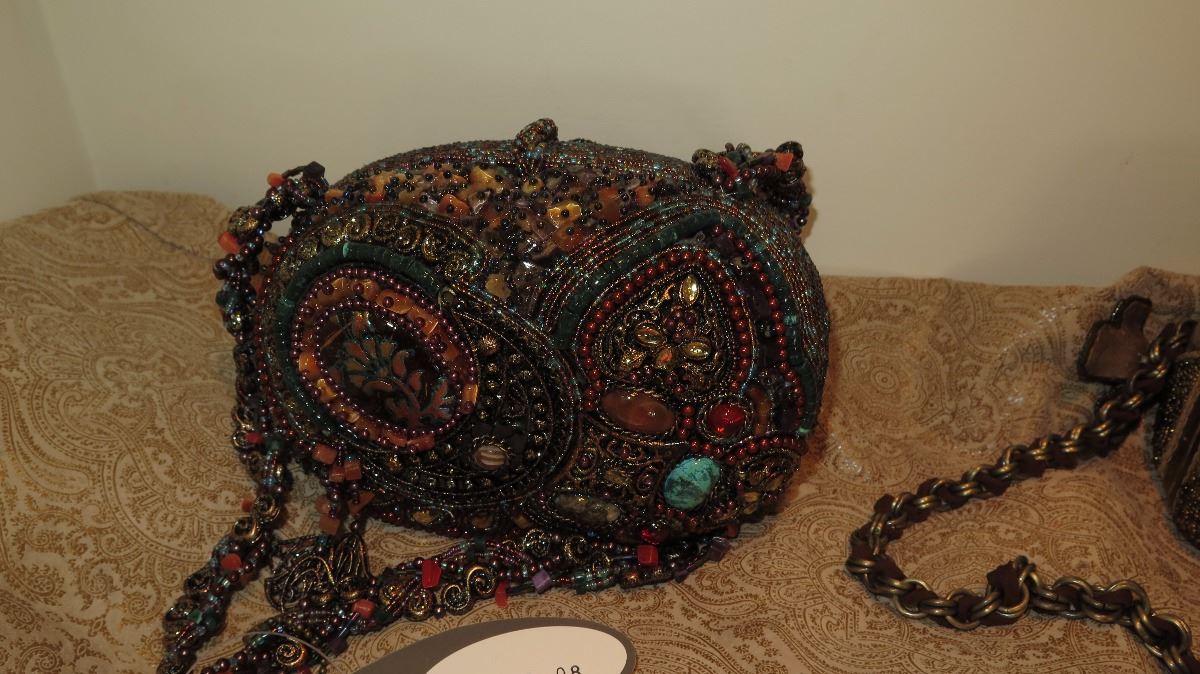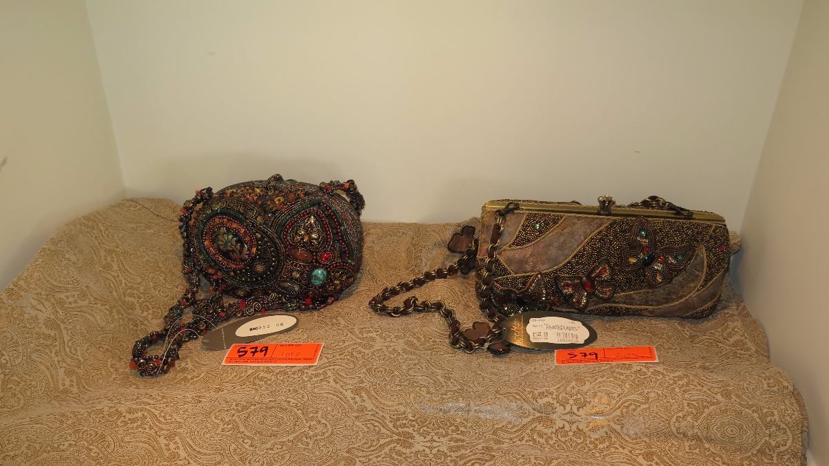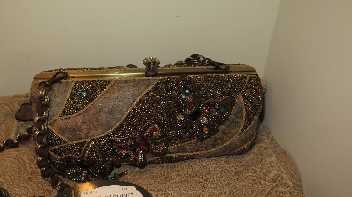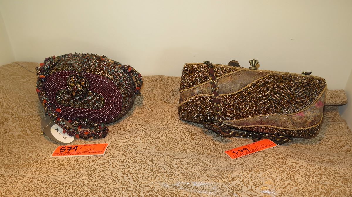 2 New Mary Frances Beaded Shoulder Bags: "Painted Ladies" and Mauve/Brown