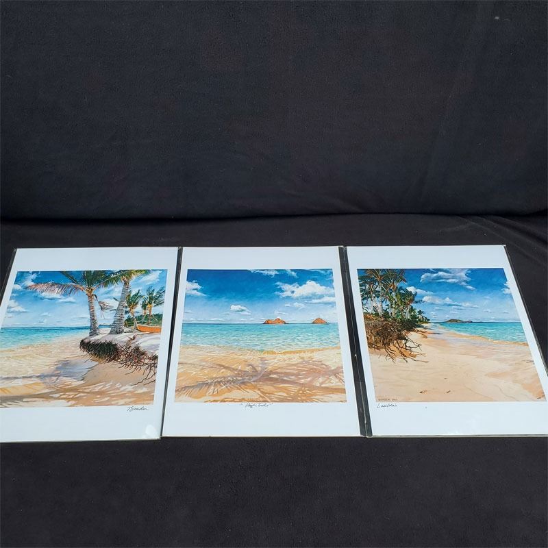 "Sandbar Solitude: Kaneohe Bay" Triptych Oil on Canvas & "High Tide Lanikai" Triptych Oil on Canvas. Donated By: Bill Braden