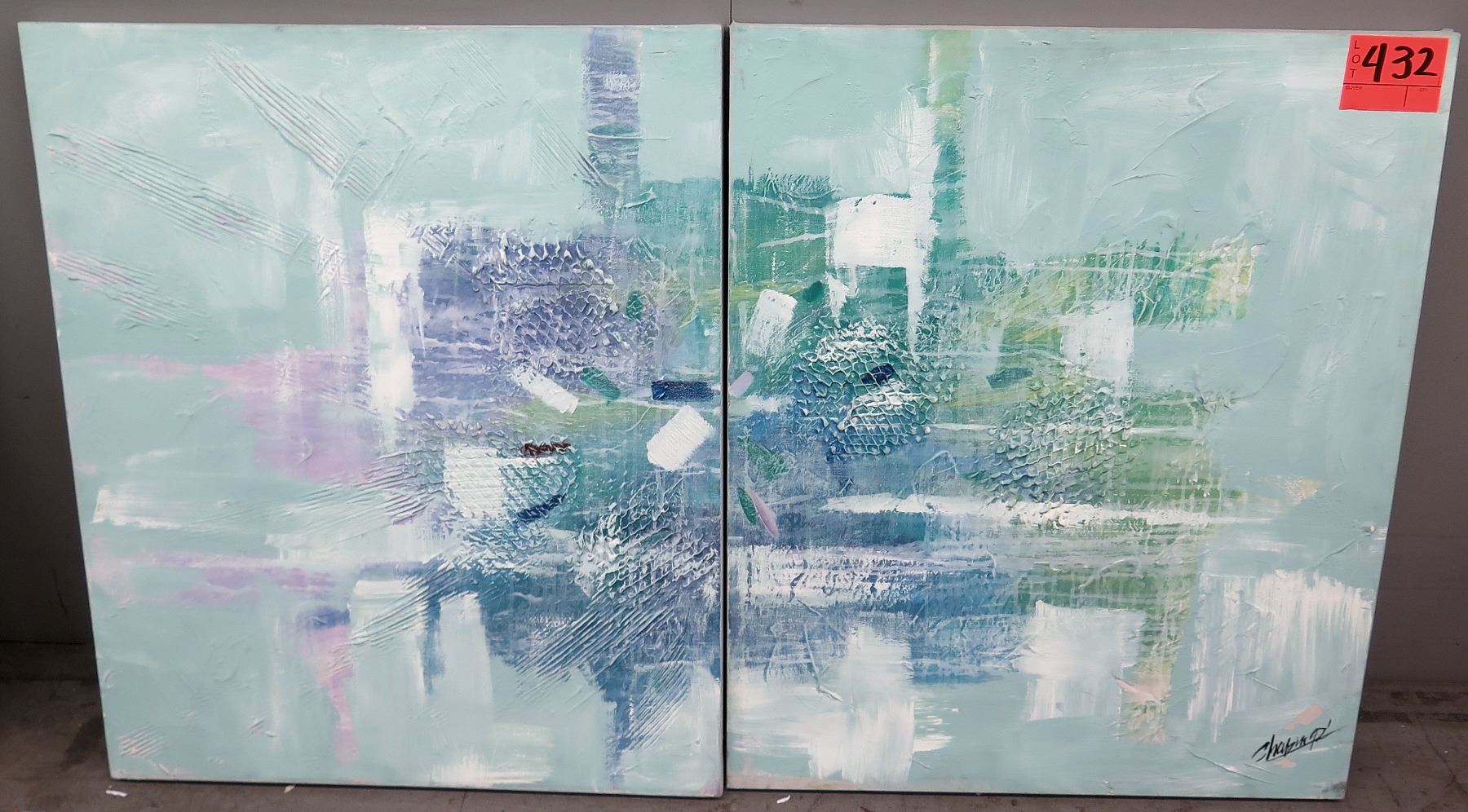 2 Piece Abstract Art Painting Signed by Artist