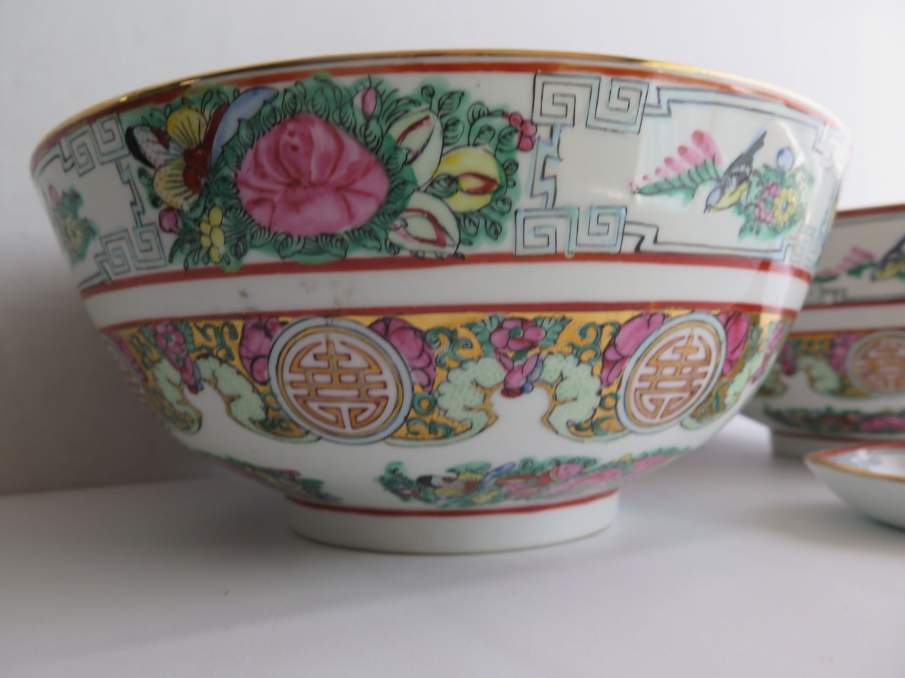 2 Rimmed Famille Rose Soup Bowl & Spoon, Hong Kong